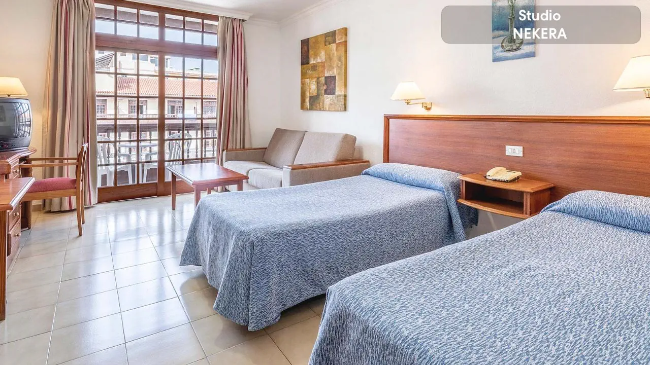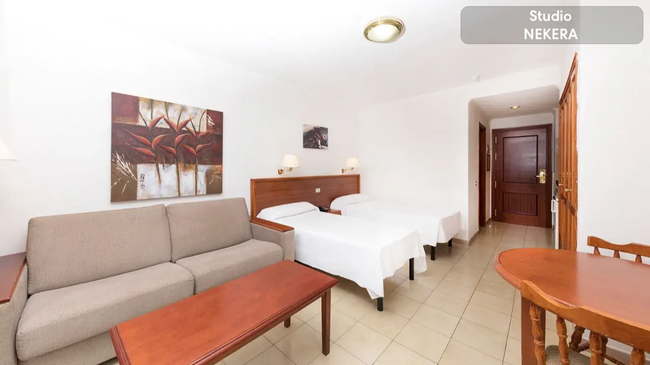 Studio - dla maksymalnie 2 osób dorosłych, maksymalnie 1 dziecko - w zależności od dostępności z balkonem lub tarasem - dwa łóżka pojedyncze - TV - wyposażona kuchnia - łazienka z wanną lub prysznicem i suszarką do włosów za dodatkową opłatą - sejf za dodatkową opłatą - sofa - bezpłatne WiFi Apartament - dla majsymalnie 3 osób dorosłych, maksymalnie 2 dzieci - dwa łóżka pojedyncze - wyposażona kuchnia - łazienka z wanną lub prysznicem i suszarką do włosów za dodatkową opłatą - rozkładana sofa - sejf za dodatkową opłatą - TV - bezpłatne WiFi