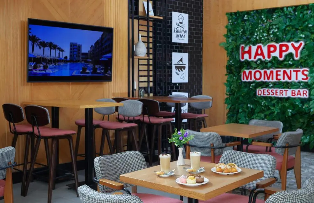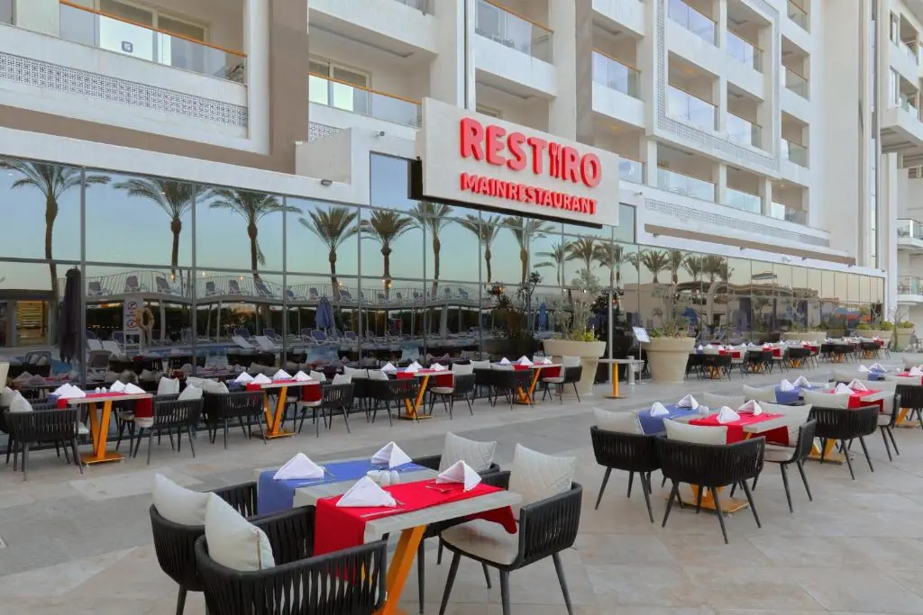 Śniadanie (07:00 - 10:30) - Restro, stół szwedzki, Obiad (12:30 - 14:30) - Restro, stół szwedzki, Przekąski (12:30 - 17:30) - Snack BAR, a la carte, Podwieczorek (10:00 - 00:00) - Lobby BAR, Nieznany, Podwieczorek (24h) - Happy Moment, Nieznany, Kolacja (18:30 - 21:30) - Restro, stół szwedzki, (18:30 - 22:00) (18:30 - 22:00), raz podczas pobytu, Kuchnia: Libańska, Wymagana rezerwacja: Tak ¹⁾, Lobby Bar (09:30 - 23:59), Napoje: alkohole lokalne, napoje bezalkoholowe (09:30 - 23:59), Pool Bar (09:30 - 17:30), Napoje: alkohole lokalne, wybrane alkohole importowane (09:30 - 17:30), Beach Bar (09:30 - 17:30), Napoje: alkohole lokalne, napoje bezalkoholowe (09:30 - 17:30), Snack Bar (12:30 - 17:30), Napoje: alkohole lokalne, napoje bezalkoholowe (12:30 - 17:30), Chill Bar (12:30 - 18:00), Napoje: alkohole lokalne, napoje bezalkoholowe (12:30 - 18:00), napoje bezalkoholowe, alkohole lokalne, lody, room service ¹⁾ ¹⁾ - dodatkowo płatne