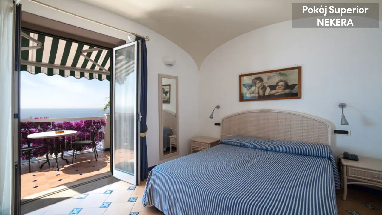 Pokój Standard, ok. 16–18 m², dla max 2 osób dorosłych, łóżko podwójne lub 2 pojedyncze, klimatyzacja, sejf, TV-Sat., telefon, minibar, prywatna łazienka (prysznic/wanna, toaleta, suszarka do włosów, zestaw kosmetyków), balkon lub taras. Pokój Superior: ok. 17 m², dla max 2 osób dorosłych, wyposażenie jak w pokoju Standard, dodatkowo balkon z widokiem na morze.