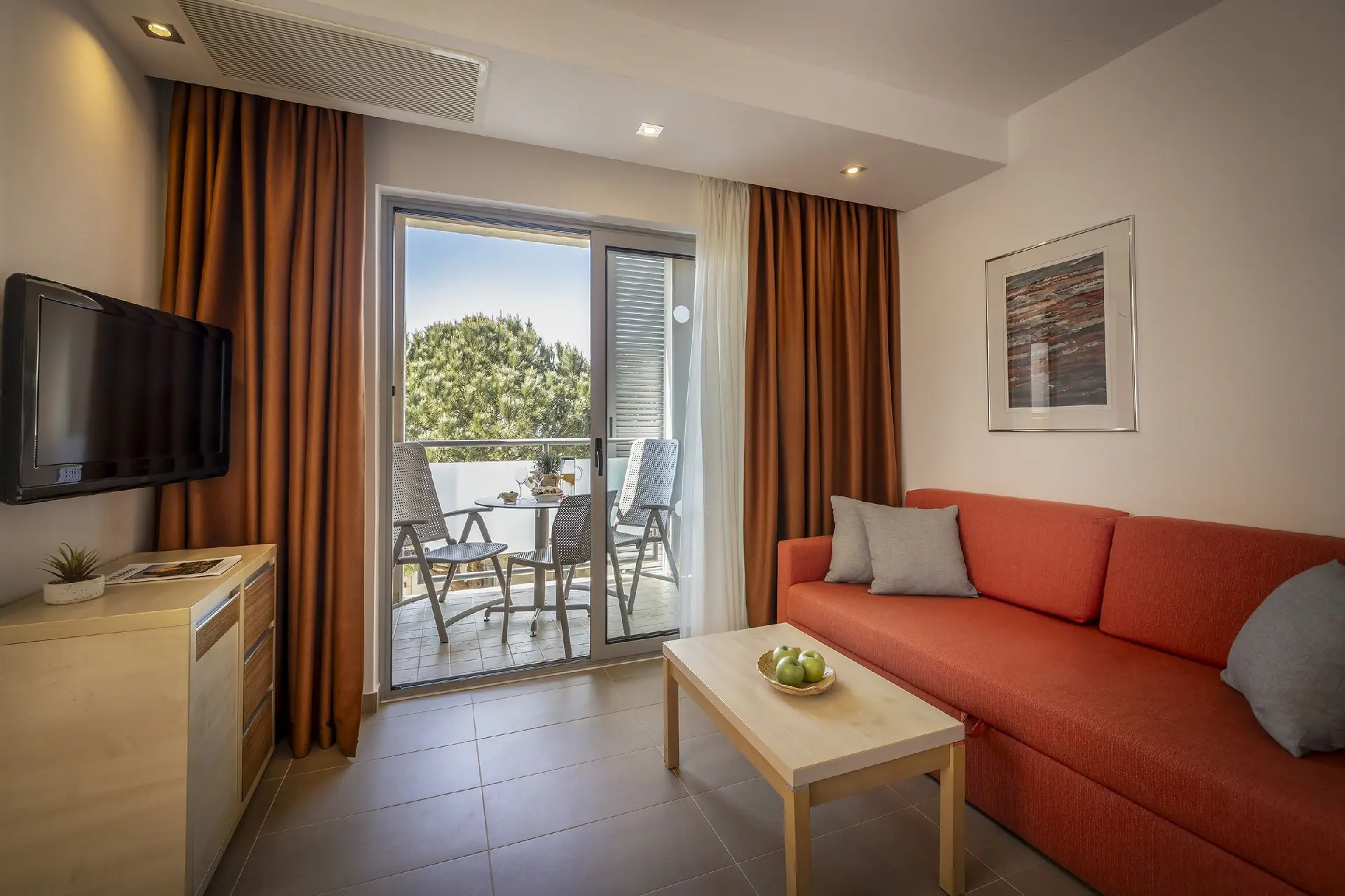 ok. 30-38 m2, klimatyzacja, internet WiFi (w cenie), sypialnia dla 2 osób, pokój dzienny z kanapą dla 2 osób, sejf (w cenie), aneks kuchenny (kuchenka mikrofalowa, ekspres do kawy, lodówka), sejf (w cenie), SAT-TV, telefon (odpłatnie), suszarka do włosów, łazienka/WC, balkon.