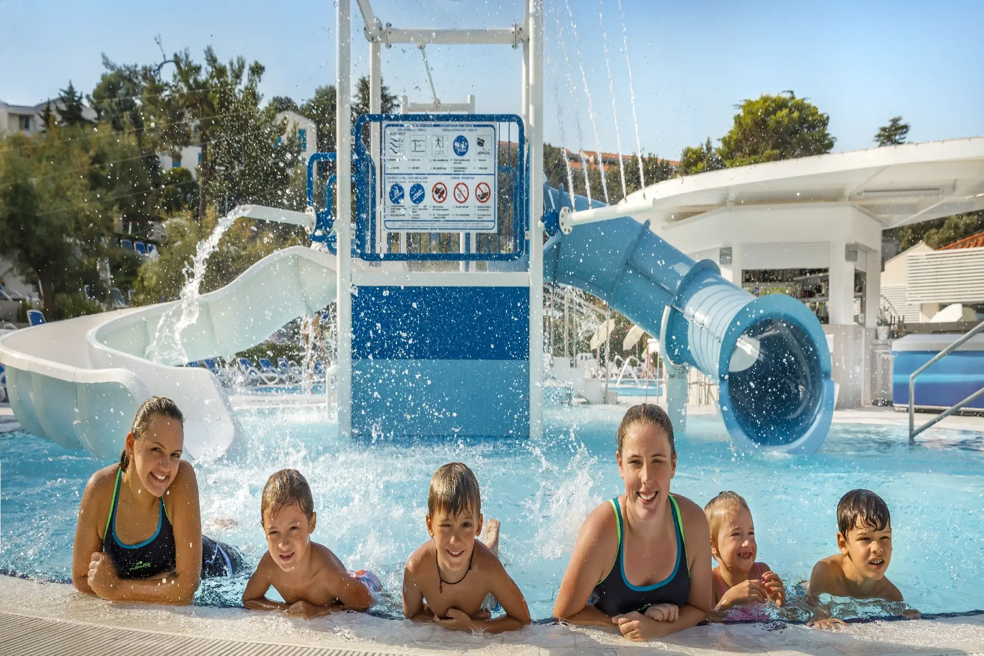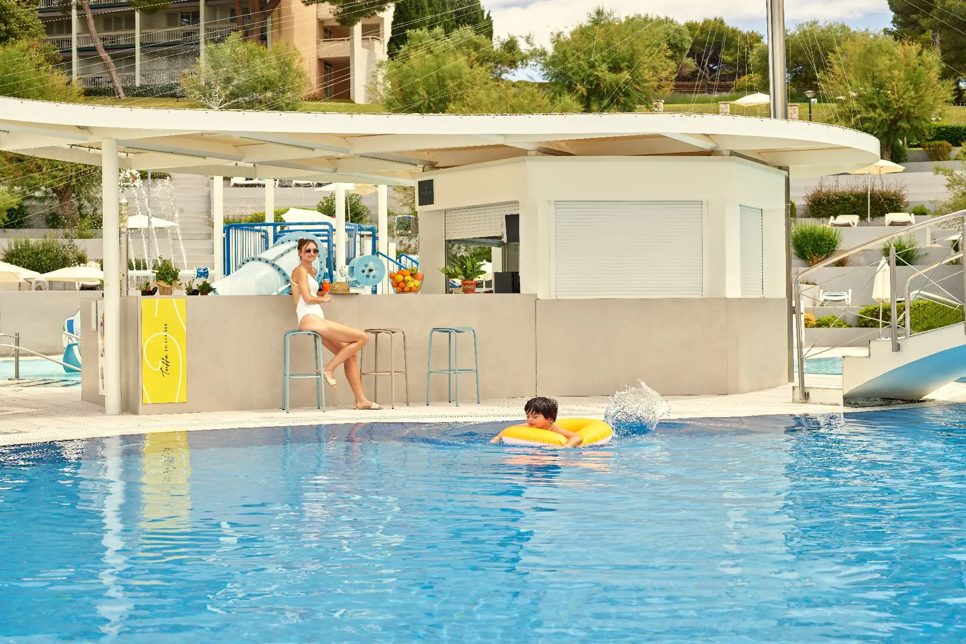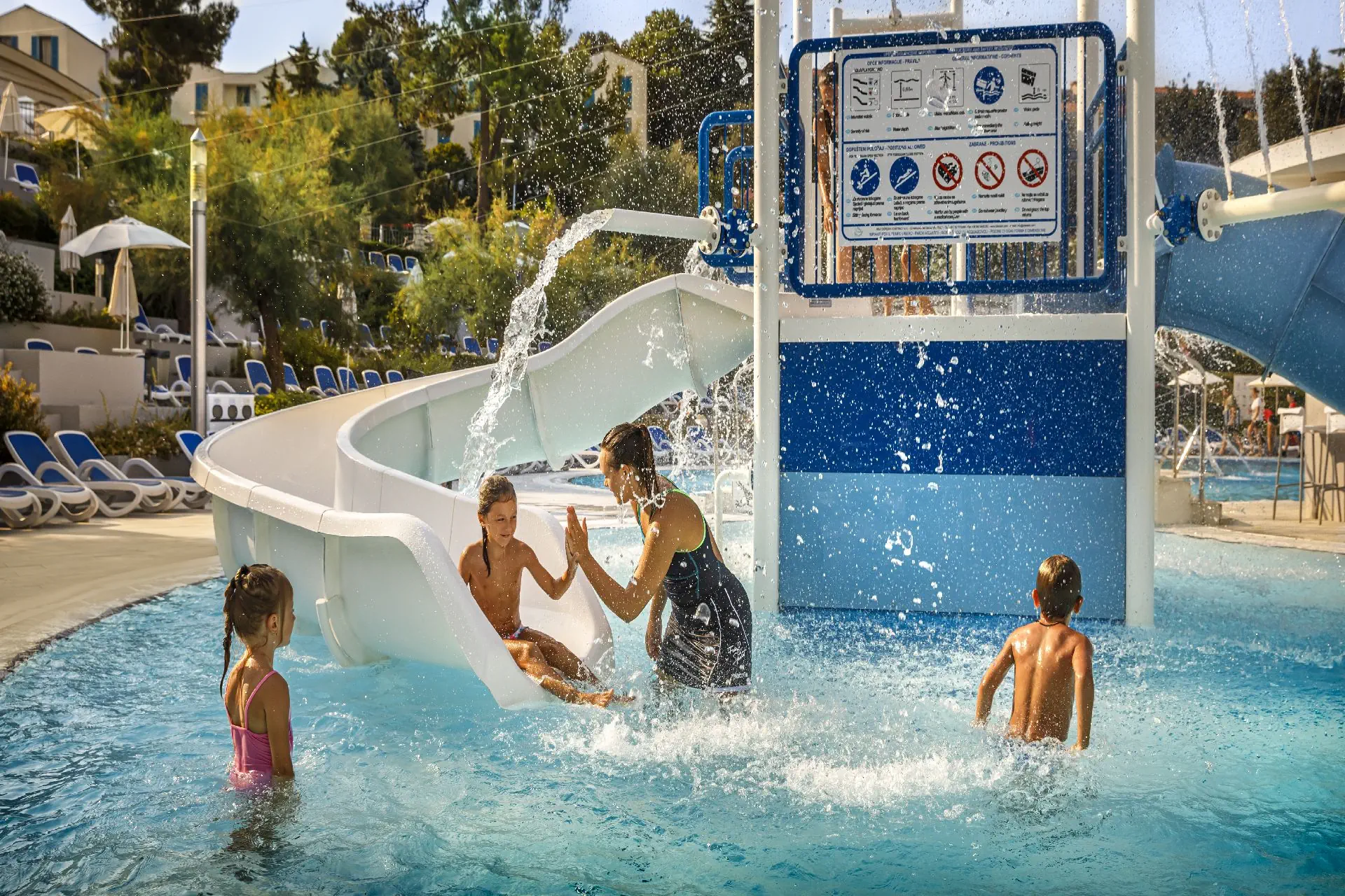 odkryty ze słodką wodą (434 m2, głębokość 1,35 m), basen dla dzieci (43 m2, głębokość 0,65 m). Leżaki i parasole (odpłatnie / ograniczona liczba). Zjeżdzalnia dla gości ośrodka (w cenie).