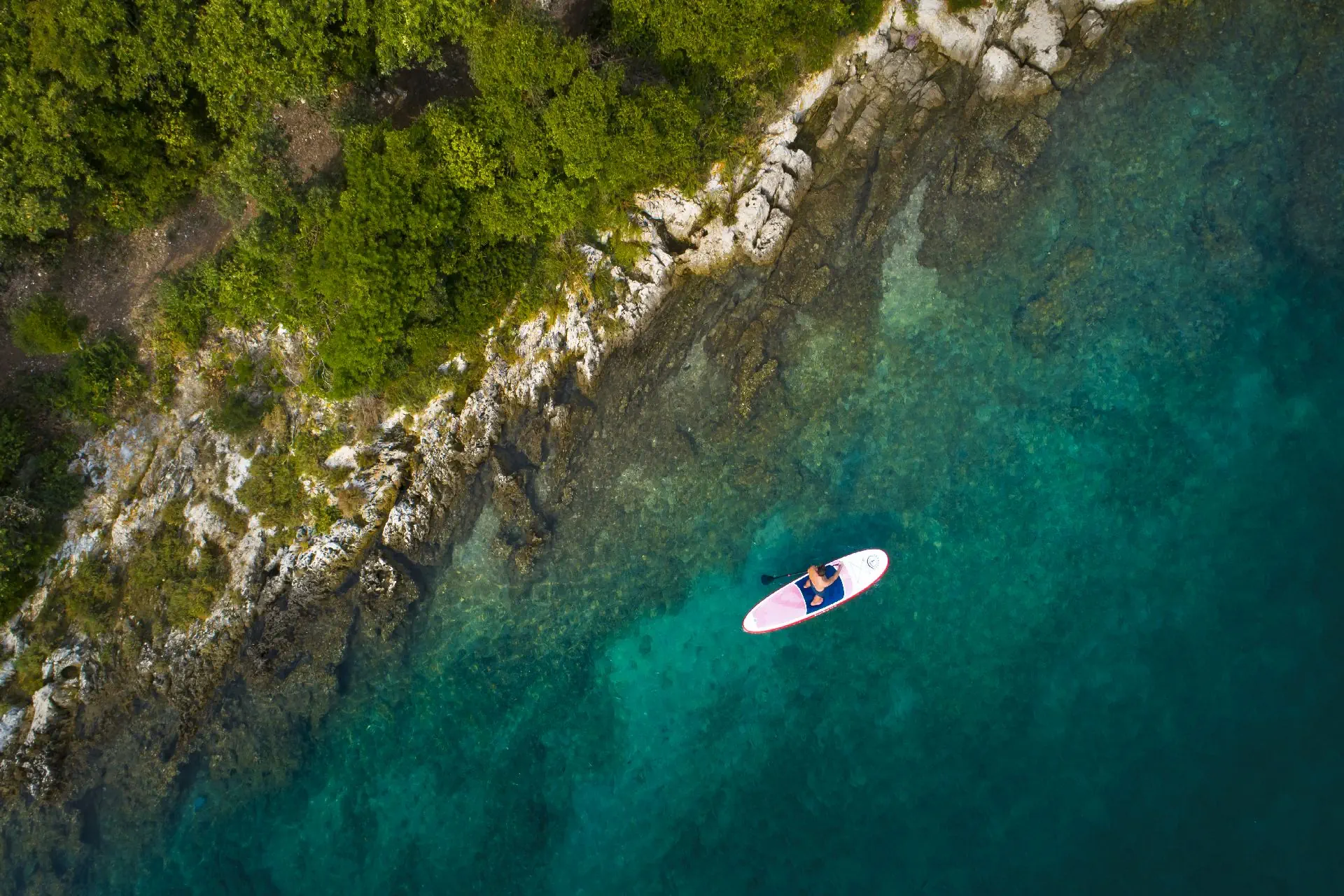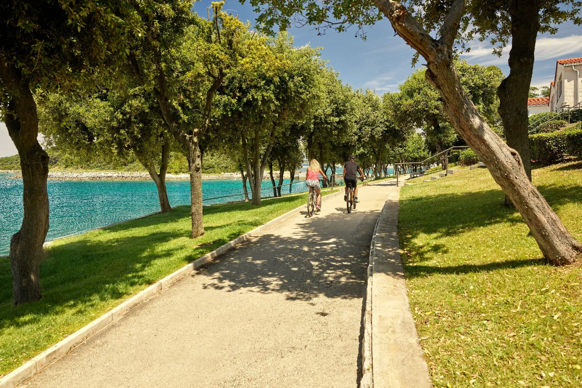 ok. 300 m od centrum miejscowości Vrsar (kilka minut spacerem nadmorską promenadą), położony na łagodnym zboczu, z którego roztacza się piękny widok na 18 wysepek archipelagu Vrsar.