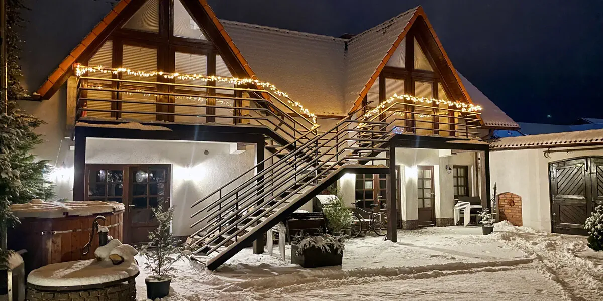 - Nocleg - Codzienne śniadania - Bezpłatne korzystanie z rowerów i mini siłowni - Bezpłatne wypożyczanie sanek i kijów nordic walking - Bezpłatne korzystanie z sali bilardowej i kominkowej - 50% zniżki na korzystanie z sauny fińskiej - 50% zniżki na kąpiele w drewnianej balii z hydromasażem - 20% zniżki na masaże i zabiegi odnowy biologicznej - Bezpłatny parking - Internet Wi-Fi - Podatek VAT