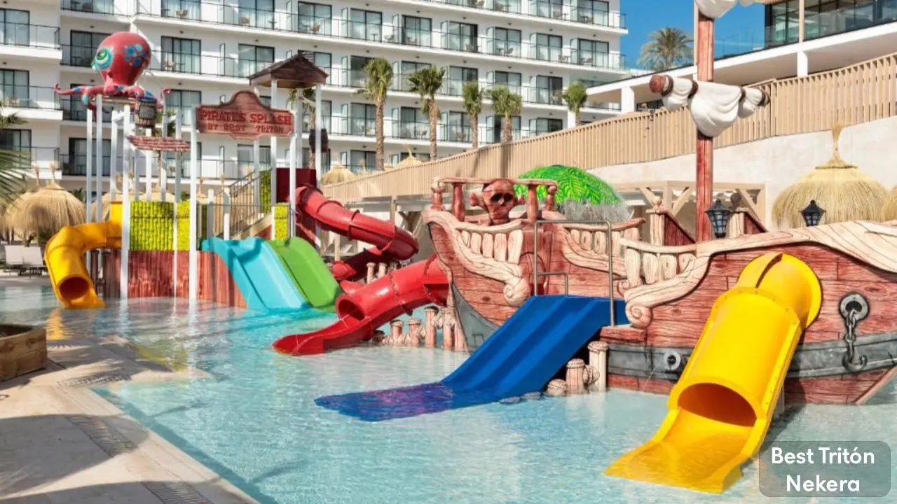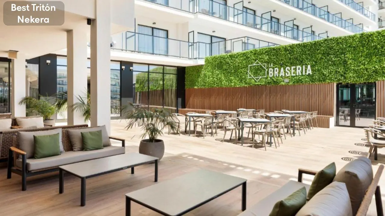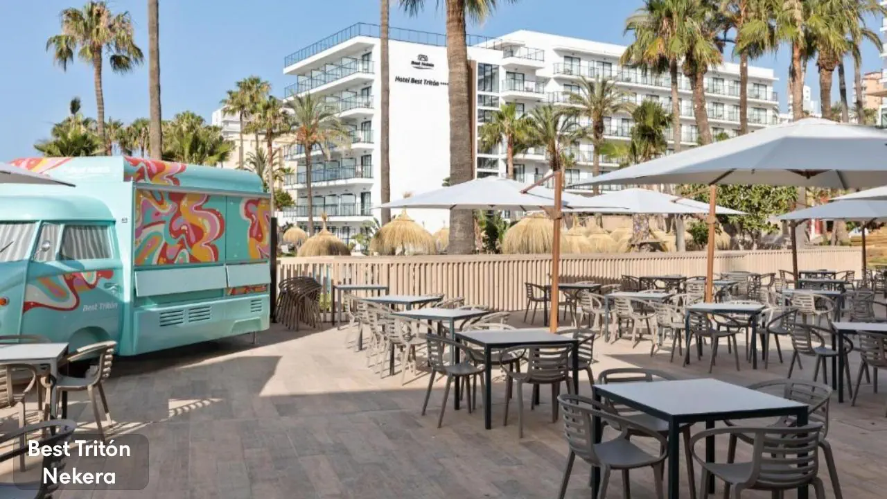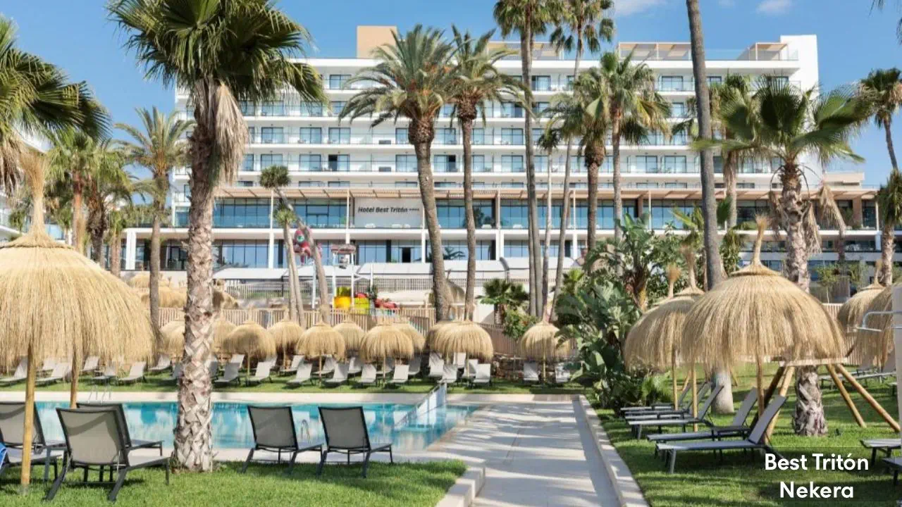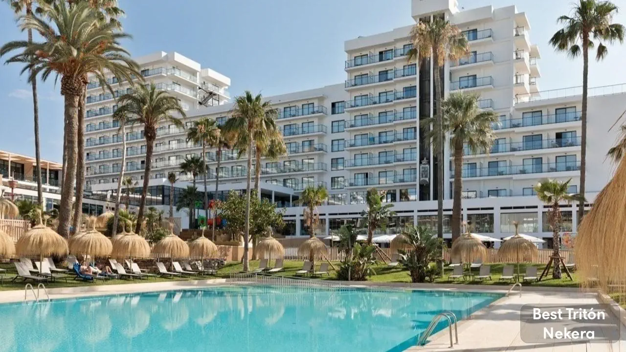 Hotel Best Tritón to odświeżony, czterogwiazdkowy hotel usytuowany tuż przy plaży i nadmorskiej promenadzie w urokliwej Benalmadenie - idealny wybór dla miłośników relaksu z widokiem na Morze Śródziemne i klimatu Costa del Sol. Otoczony pięknymi ogrodami i palmami, oferuje trzy baseny zewnętrzne (w tym osobny dla dzieci), olbrzymi taras z leżakami oraz bogaty program animacyjny na dzień i wieczór - gwarantując różnorodność wypoczynku dla całej rodziny. Goście mogą skorzystać z pełnego relaksu w centrum spa wyposażonym w siłownię, saunę, łaźnię turecką i wannę z hydromasażem, a także odprężyć się na Sky Terrace z panoramicznym widokiem na morze. Na miejscu znajduje się także restauracja bufetowa z pokazami gotowania, bar przy basenie, brasserie oraz strefa fitness - wszystko, by pobyt był komfortowy, relaksujący i pełen uśmiechu.