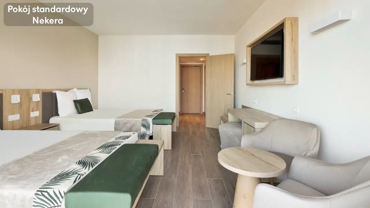 Noclegi, wyżywienie zgodnie z rezerwacją, telefoniczną opiekę rezydenta. Dodatkowo w przypadku imprez pakietowych z przelotem, oprócz ww. świadczeń w cenie zawarty jest: przelot, opłata lotniskowa, opłata za wylot z lotniska lokalnego, transfer lotnisko-hotel-lotnisko (chyba, że dana oferta stanowi inaczej), ubezpieczenie dla imprez turystycznych, bezpośrednia opieka polskojęzycznego rezydenta - w sezonie letnim (wakacyjnym): Kreta, Rodos, Turcja (Riwiera), Majorka, Bułgaria, całorocznie: Malta, na pozostałych kierunkach opieka telefoniczna lub przez czat w serwisie moja.nekera.pl. W przypadku imprez turystycznych opartych o przeloty przewóz bagażu może być nieuwzględniony w cenie. Cena uzależniona jest m.in. od przewoźnika oraz terminu wyjazdu, należy ją zweryfikować podczas zakupu. Linie lotnicze, w których bagaż jest w cenie (20 kg bagaż główny oraz bagaż podręczny) - przeloty czarterowe: Enter Air, LOT (dla wylotów na Rodos), Sky Express, Holiday Europe, European Air Charter, Ryan Sun (dla wylotów na Rodos) oraz przeloty rejsowe: Sun Express, Corendon, Pegasus Airlines, Emirates, Fly Dubai, Quatar Airlines, Air France, Austrian Airlines.Przykładowe linie lotnicze, gdzie bagaż jest dodatkowo płatny to: FR (Ryanair), W6 (WizzAir), Easy Jet. Podane godziny serwowania posiłków oraz funkcjonowania poszczególnych elementów infrastruktury hotelowej mogą ulec nieznacznym zmianom, ze względu na sezonowość, siły wyższe i inne okoliczności. TELEFONICZNA OPIEKA W JEZYKU POLSKIM