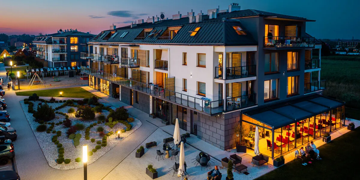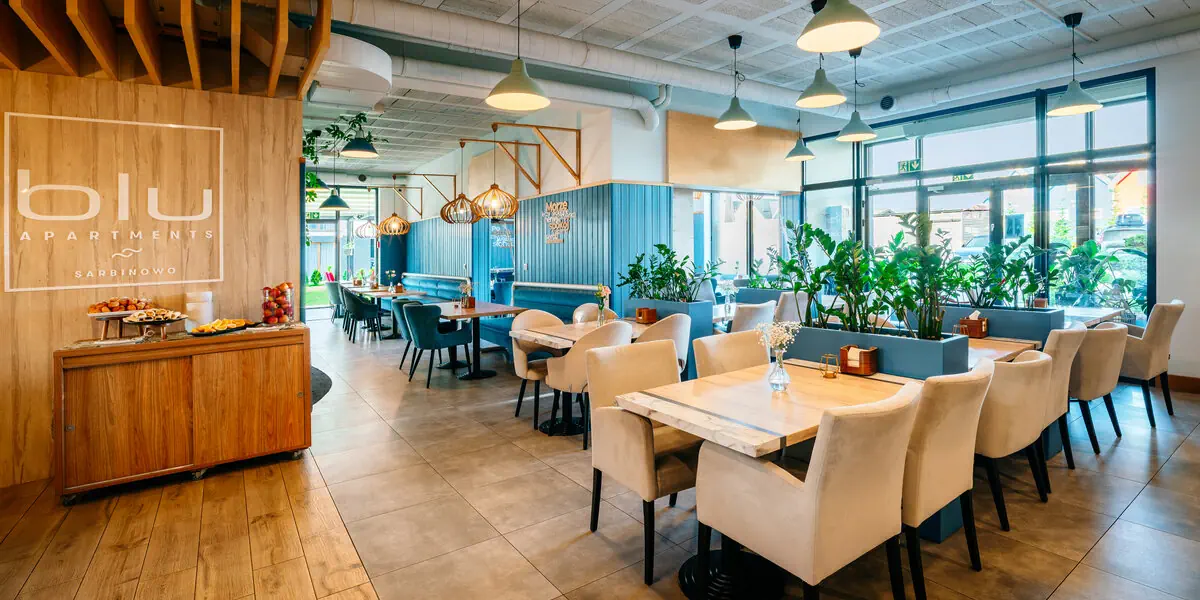 Blu Apartments położony jest w Sarbinowie, zaledwie 500 metrów od morza. Otoczenie obiektu sprzyja wypoczynkowi z dala od miejskiego zgiełku i codziennego biegu. Udogodnienia: Basen kryty, Basen zewnętrzny, Basen dla dzieci, Jacuzzi, Sauna, Bar / restauracja, Sala zabaw dla dzieci, Kącik zabaw dla dzieci, Animacje dla dzieci, Plac zabaw dla dzieci, Boisko sportowe, Salka fitness, Pobyt z pupilem, Winda, Parking strzeżony / monitorowany, Parking, Płatność kartą