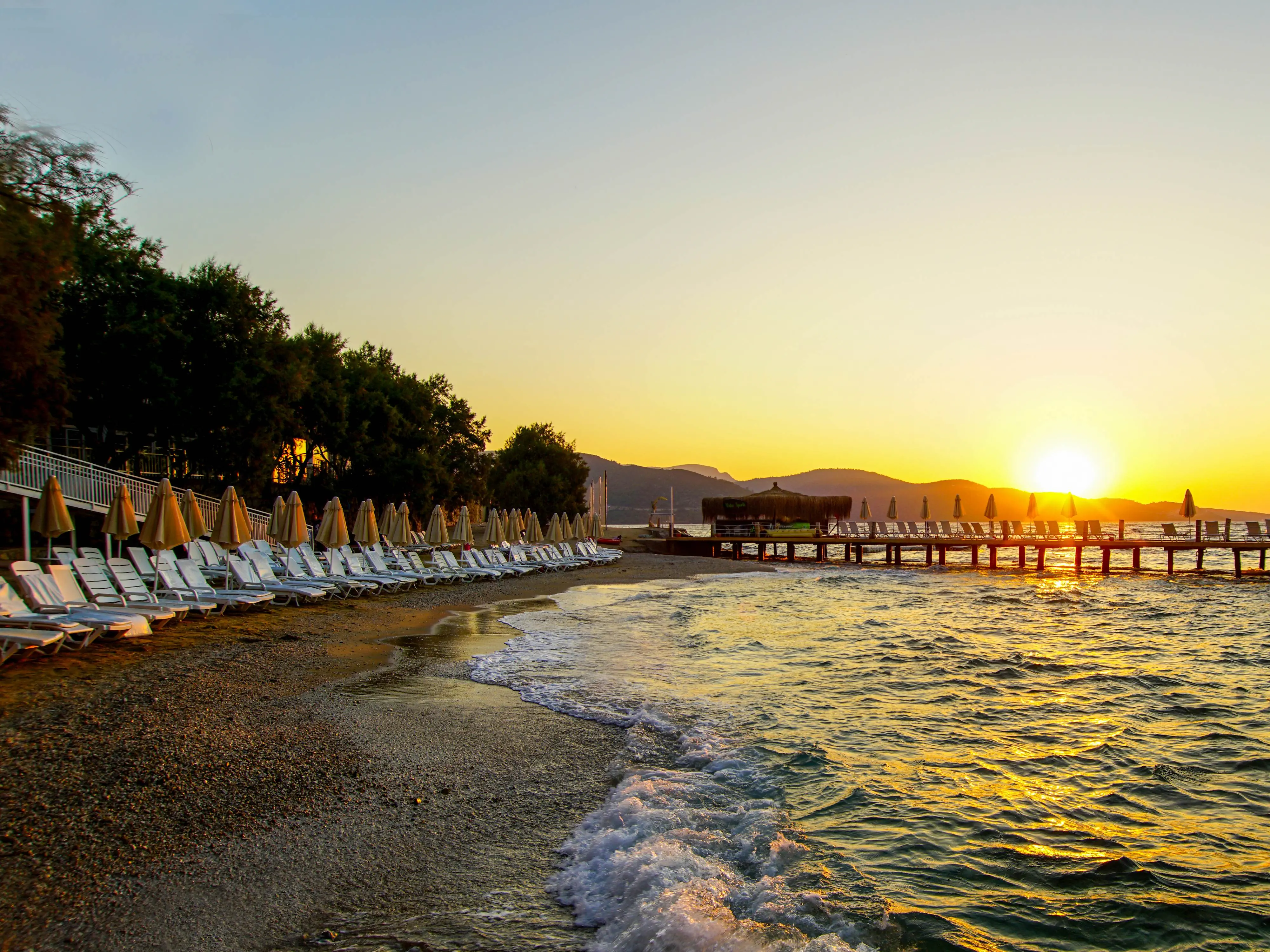 Prywatna, Piaszczysto-żwirowa, Kamieniste zejście do morza, odleglość do plaży: 0 km, długość plaży: 700 m, pomost na plaży, Parasole - bezpłatnie, Leżaki - bezpłatnie, Ręczniki - bezpłatnie, Pawilony na plaży - płatne, Beach Bar - bezpłatnie, Prysznic