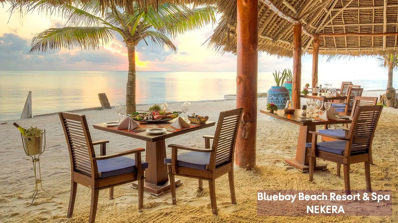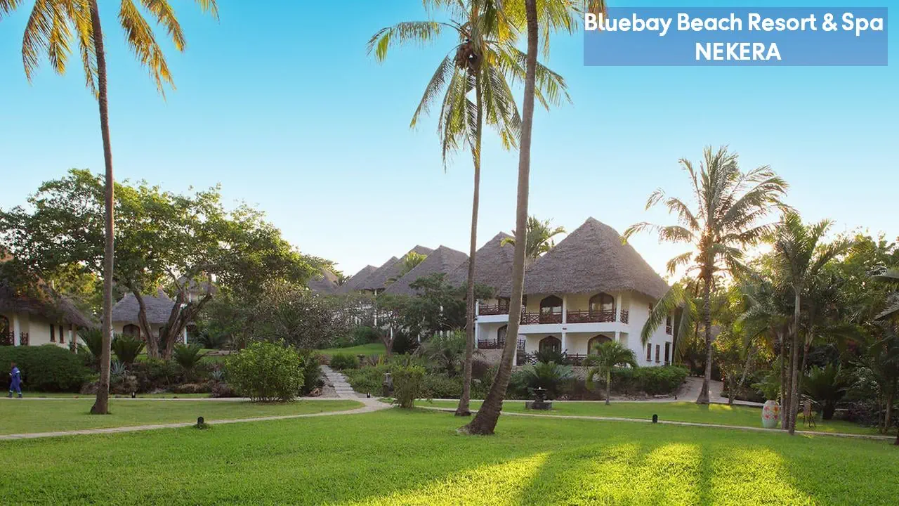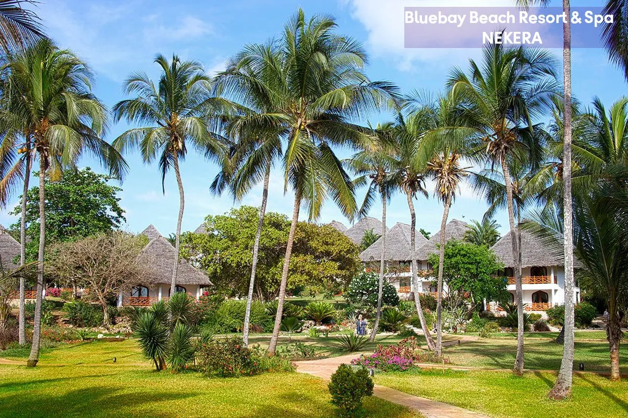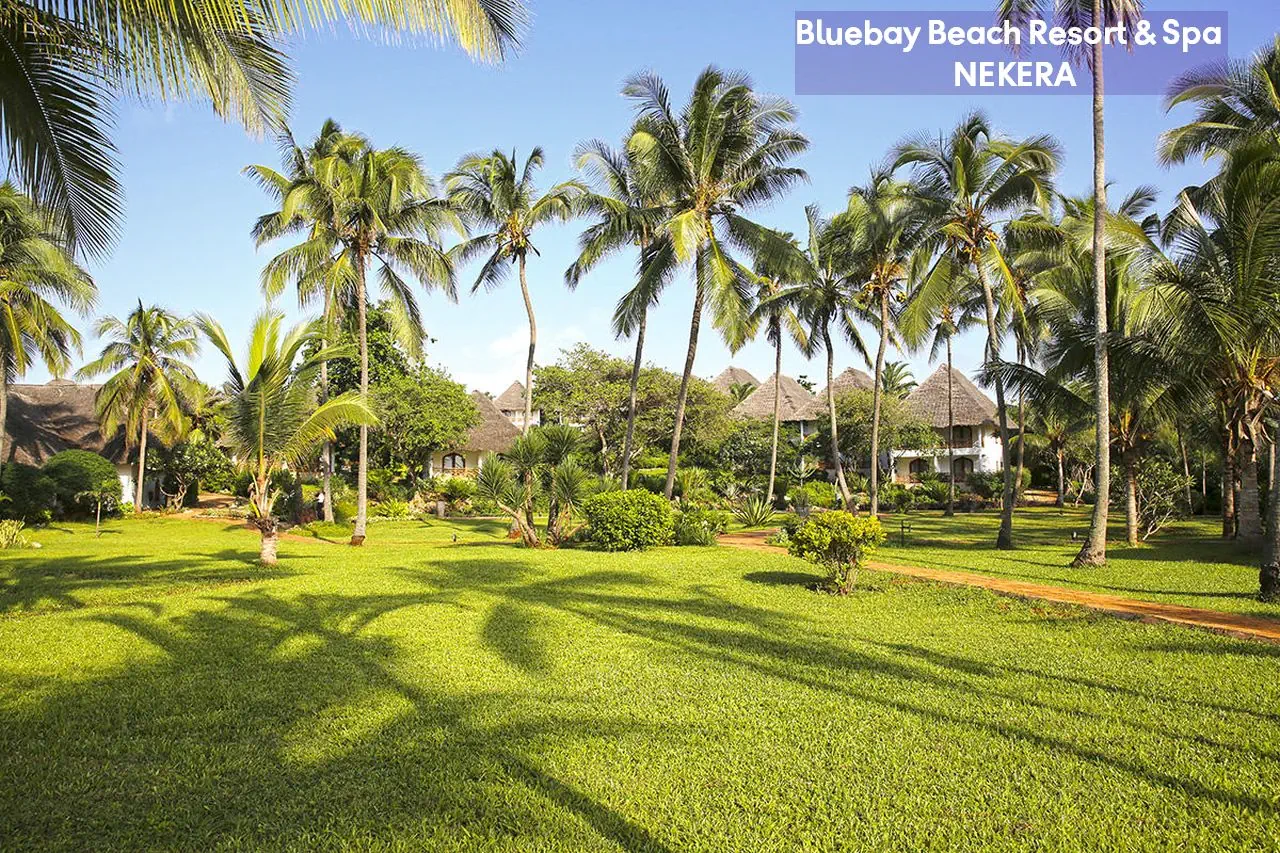 Luksusowy, pięciogwiazdkowy resort położony na wschodnim wybrzeżu Zanzibaru, w malowniczej miejscowości Kiwengwa, bezpośrednio przy jednej z najpiękniejszych, szerokich plaż wyspy. Bluebay Beach Resort & Spa otoczony jest bujnym, tropikalnym ogrodem i łączy elegancki styl kolonialny z lokalnymi akcentami suahili. Wysoki standard usług, rozbudowana infrastruktura rekreacyjna oraz bogata oferta kulinarna czynią hotel idealnym wyborem zarówno dla par, rodzin, jak i klientów poszukujących komfortowego wypoczynku w egzotycznej scenerii.