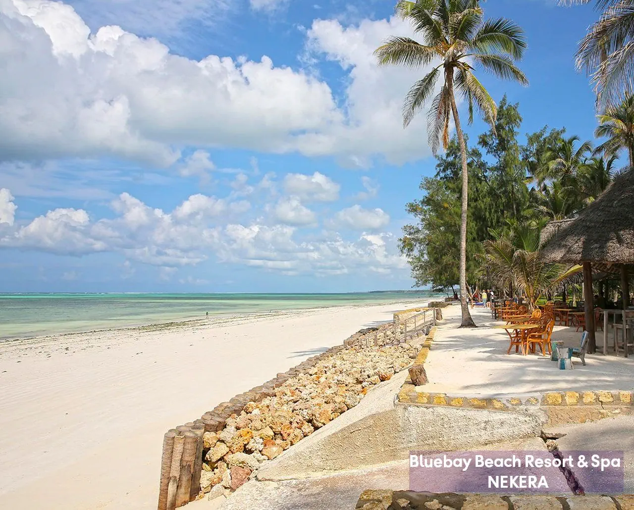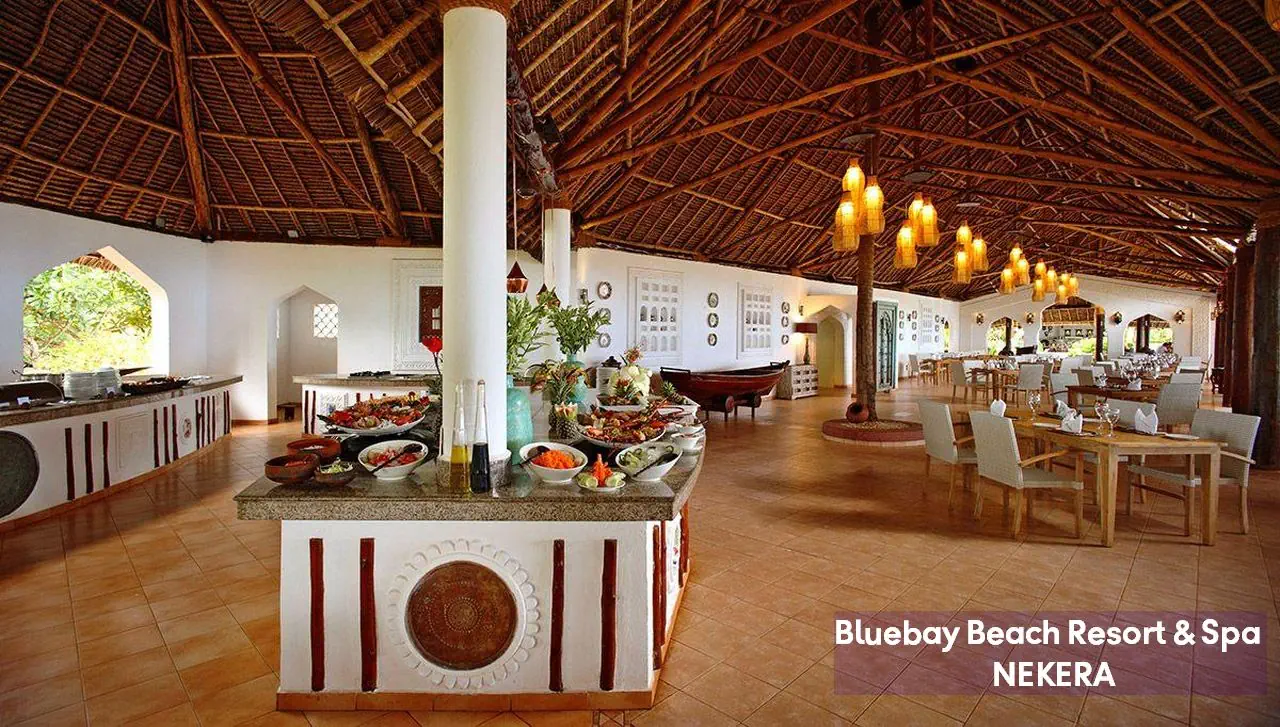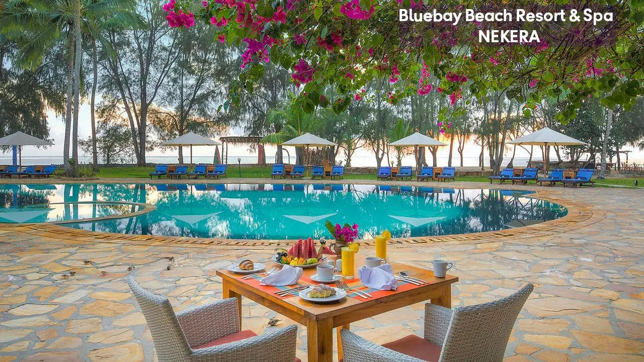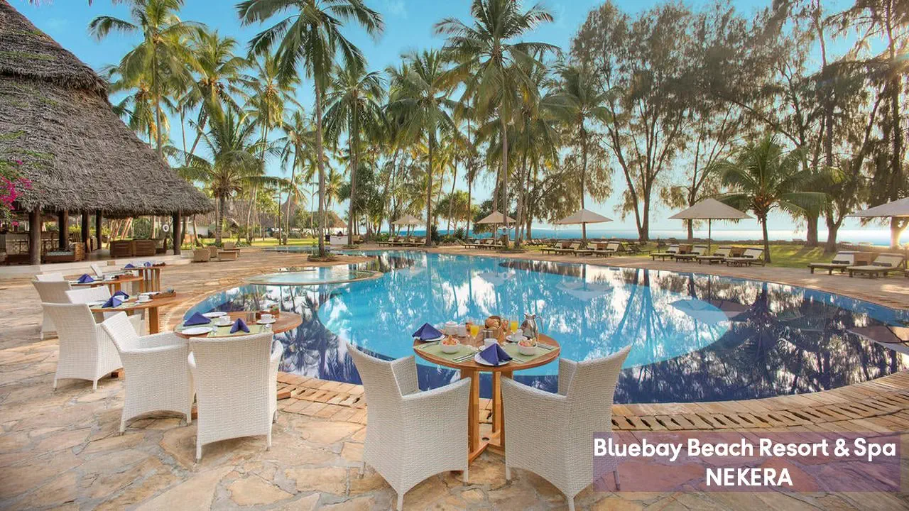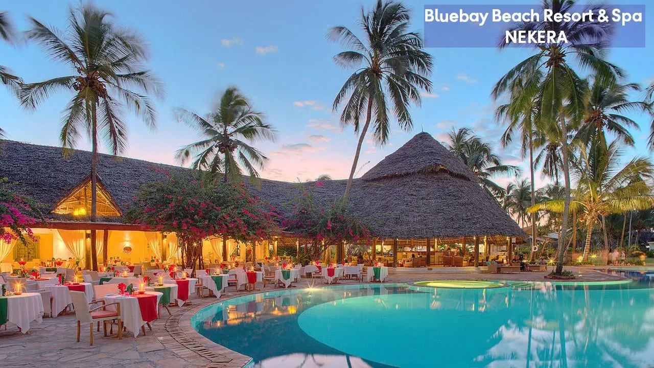 Luksusowy, pięciogwiazdkowy resort położony na wschodnim wybrzeżu Zanzibaru, w malowniczej miejscowości Kiwengwa, bezpośrednio przy jednej z najpiękniejszych, szerokich plaż wyspy. Bluebay Beach Resort & Spa otoczony jest bujnym, tropikalnym ogrodem i łączy elegancki styl kolonialny z lokalnymi akcentami suahili. Wysoki standard usług, rozbudowana infrastruktura rekreacyjna oraz bogata oferta kulinarna czynią hotel idealnym wyborem zarówno dla par, rodzin, jak i klientów poszukujących komfortowego wypoczynku w egzotycznej scenerii.