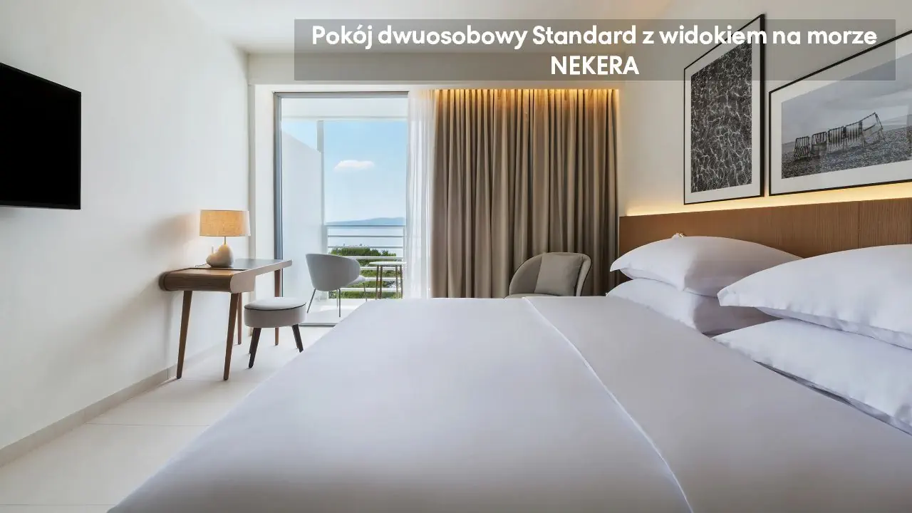 Pokój dwuosobowy Standard z balkonem: ok. 19 m2, mogący zakwaterować do dwóch osób, klimatyzacja, biurko, prywatna łazienka (prysznic, toaleta, umywalka), balkon z widokiem na górę Biokovo. Pokój dwuosobowy Standard z widokiem na morze: ok. 22 m2, mogący zakwaterować do dwóch osób, jedno łóżko podwójne lub dwa łóżka pojedyncze, balkon z widokiem na morze; poza tym wyposażony jak pokój dwuosobowy Standard z balkonem.