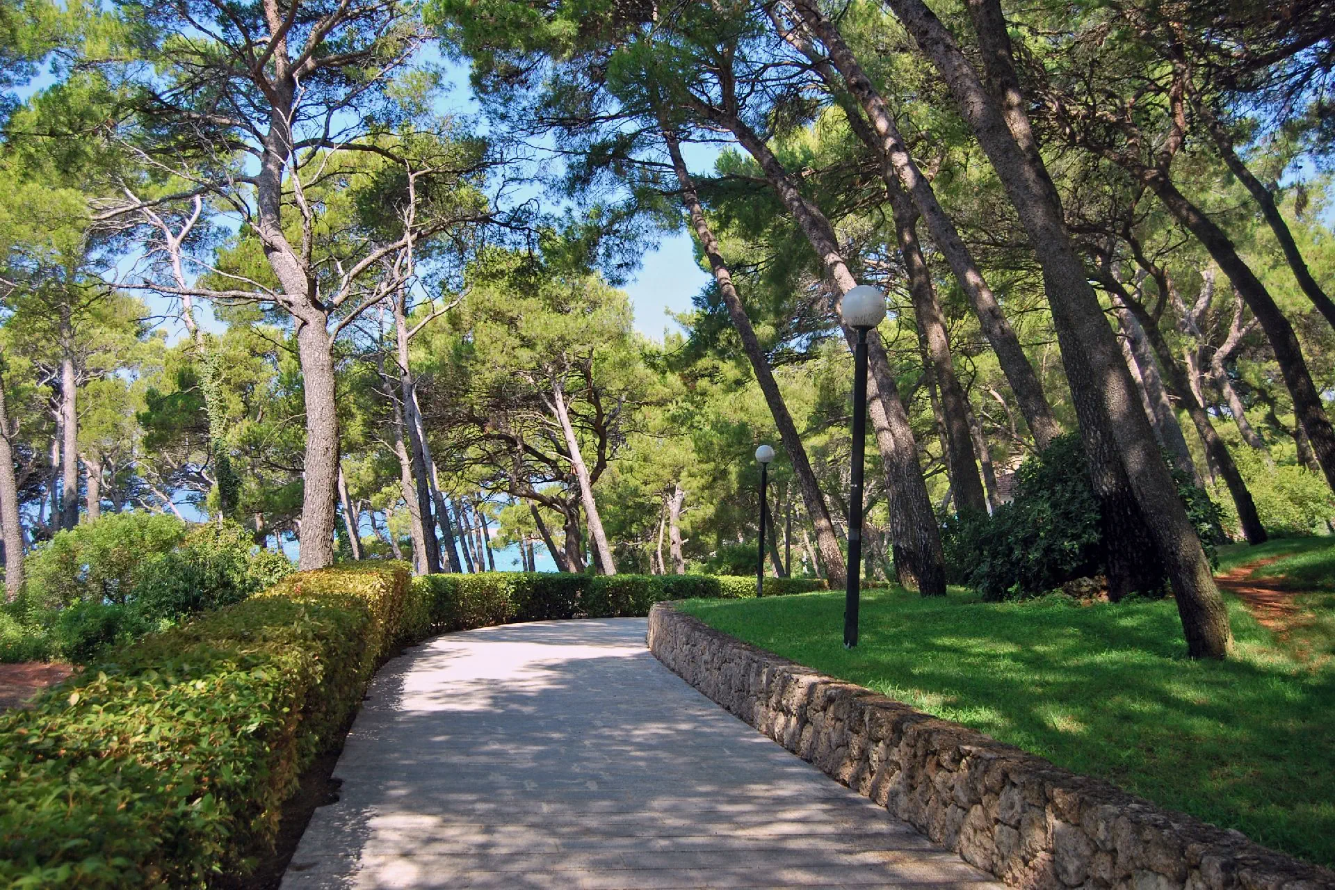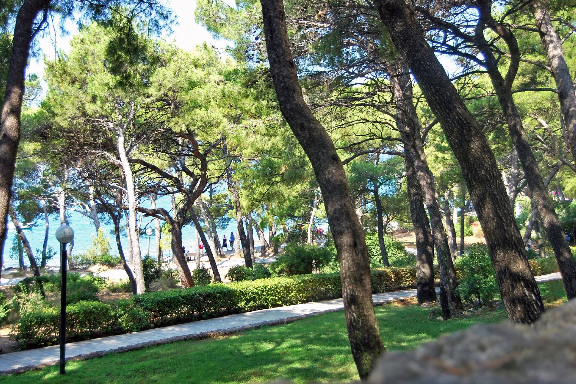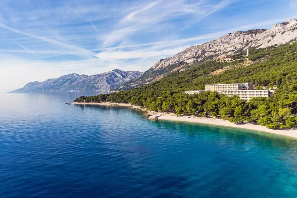 przy hotelu, żwirowo-kamienista. Leżaki i parasole (odpłatnie / ograniczona liczba). Jedna z najbardziej znanych plaż na wybrzeżu Adriatyku "Punta Rata" oddalona o ok. 2 min. pieszo; plaża "Podrace" oddalona o ok. 7 min pieszo.