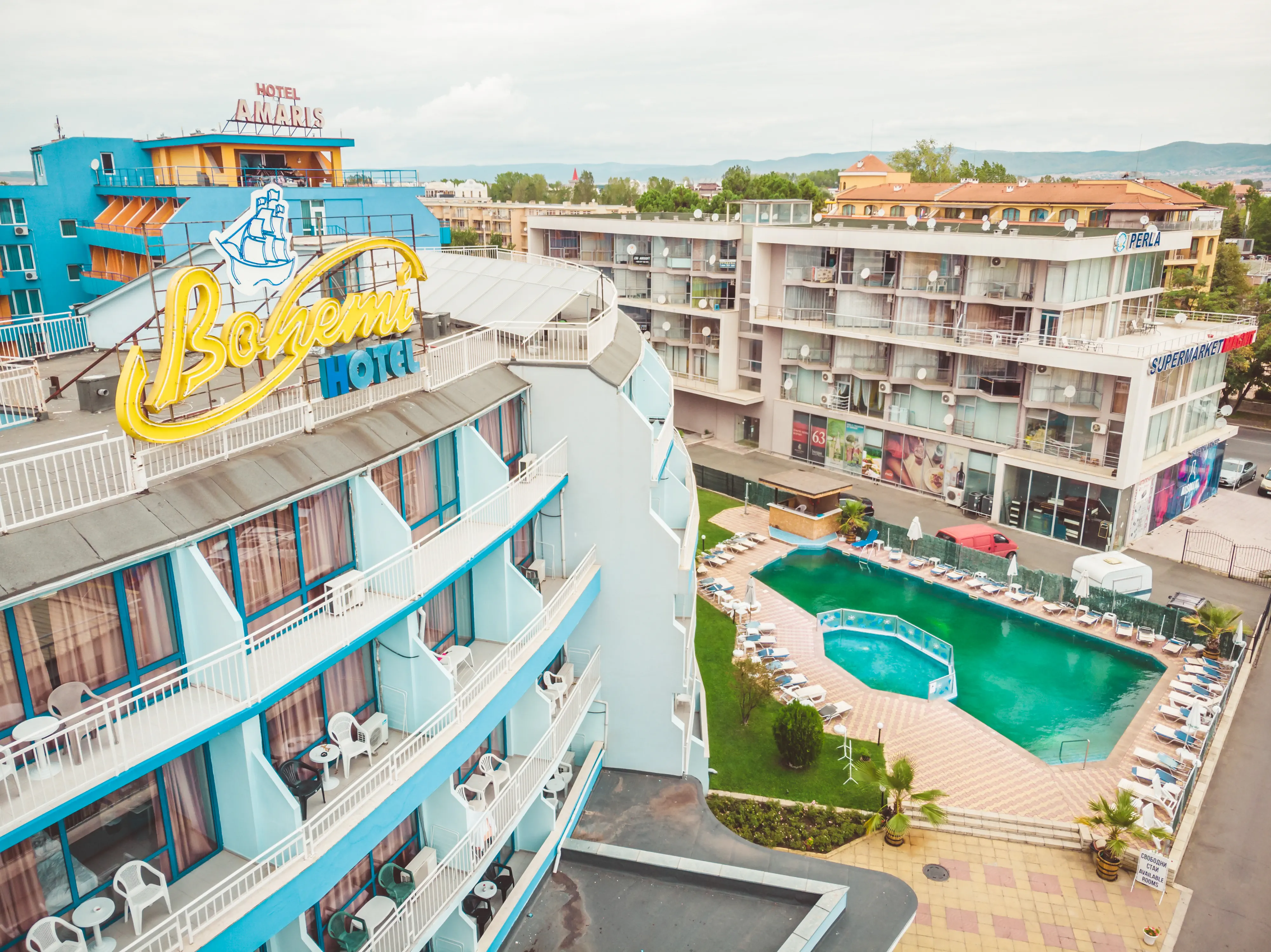 Trzygwiazdkowy hotel Bohemi położony jest z dala od tętniącego życiem Słonecznego Brzegu. Jest to skromny ale wygodny obiekt. Przyjazna obsługa, wyżywienie All Inclusive, niewielka odległość od plaży oraz parku wodnego Action Park to jedne z wielu zalet tego hotelu.