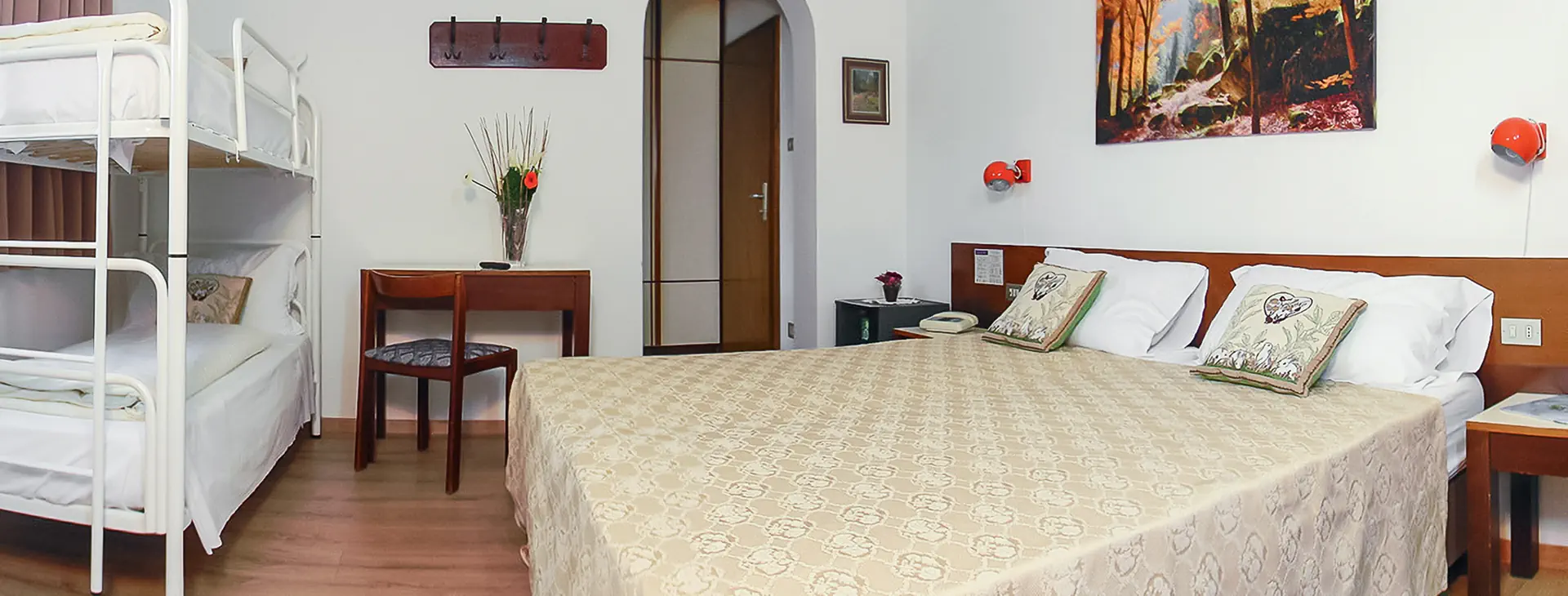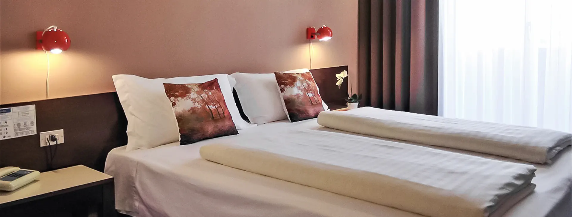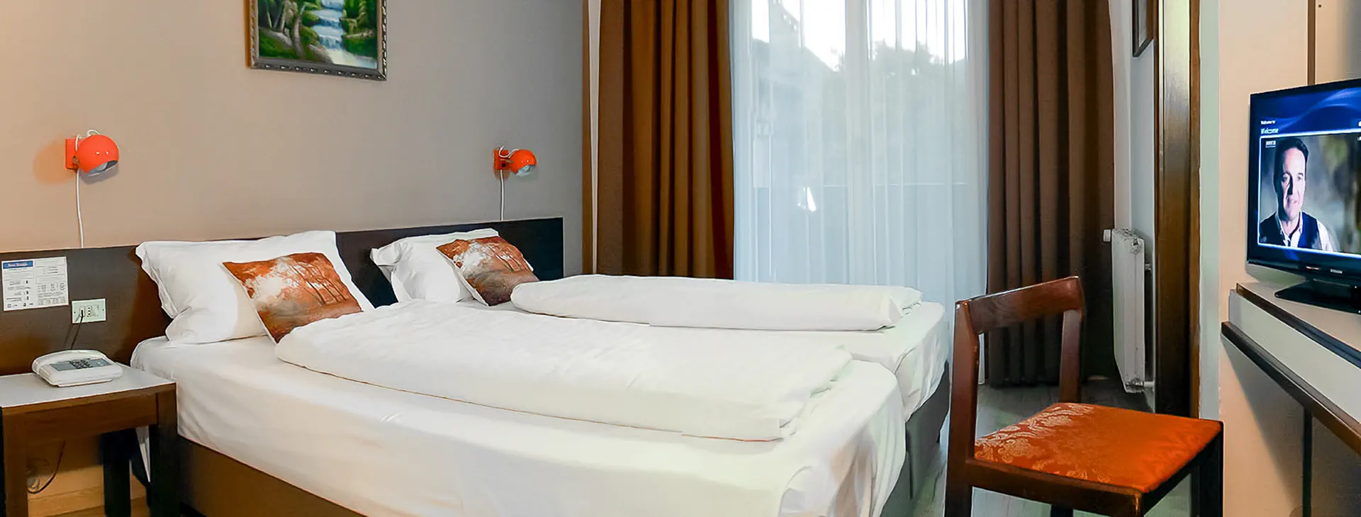 Hotel posiada 25 pokoi, w których można zakwaterować od 1 do 4 osób. Wszystkie dysponują prywatną łazienką. Dodatkowo każdy z pokoizostał wyposażony w suszarkę do włosów, bezpłatny zestaw kosmetyków, telefon, TV oraz minibar (mogą obowiązywać dodatkowe opłaty). Każdy z pokoi jest ogrzewany w sezonie zimowym i jesiennym. Niektóre dysponują balkonem. Łóżeczko dla dziecka dostępne na zapytanie.