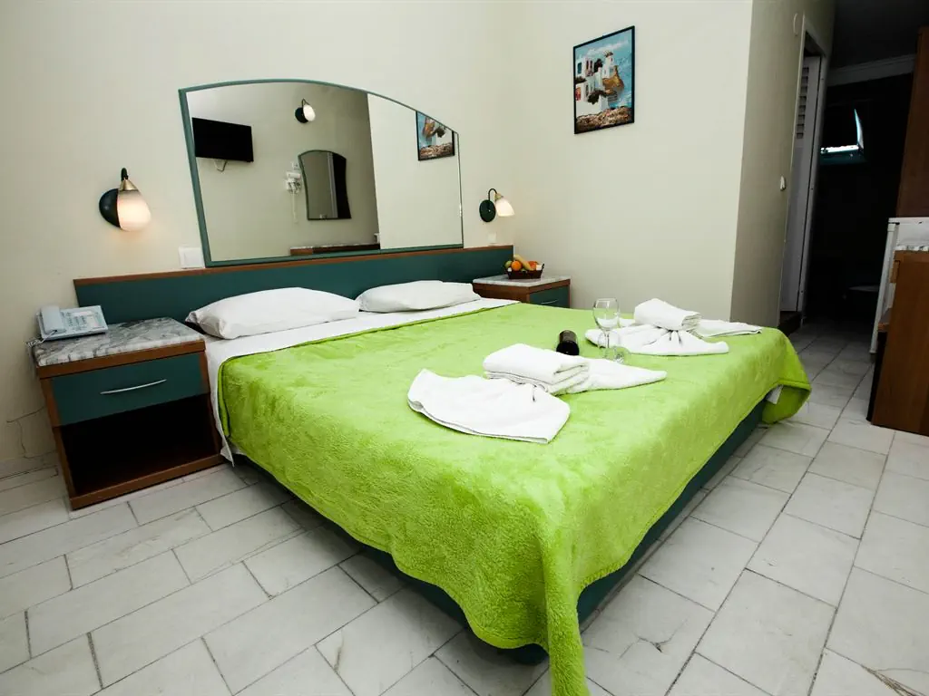 trzy posiłki: śniadanie, obiad i kolacja w formie bufetu. Lokalne napoje alkoholowe (ouzo, piwo, wino) w godz. 12-22:00 oraz bezalkoholowe dostępne w godz. 10-22:00.