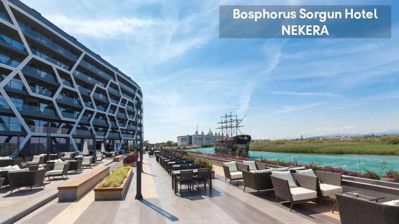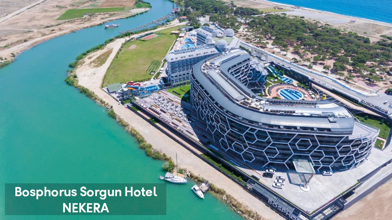 Bosphorus Sorgun Hotel to nowoczesny pięciogwiazdkowy obiekt zlokalizowany w malowniczej okolicy Side, tuż nad brzegiem Morza Śródziemnego. Otoczony naturalnym pięknem i położony w pobliżu rzeki Manavgat, hotel oferuje idealne warunki do wypoczynku dla rodzin, par i osób aktywnych. Dzięki rozbudowanej infrastrukturze, eleganckim wnętrzom i atrakcyjnej lokalizacji, stanowi doskonałą bazę do odkrywania Riwiery Tureckiej.