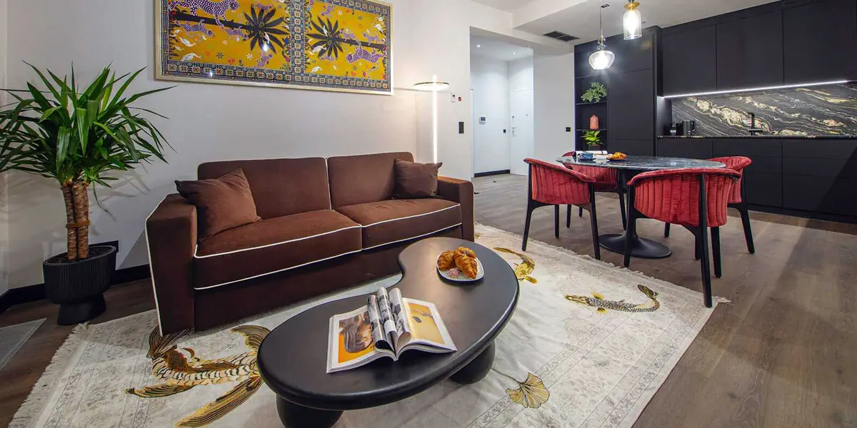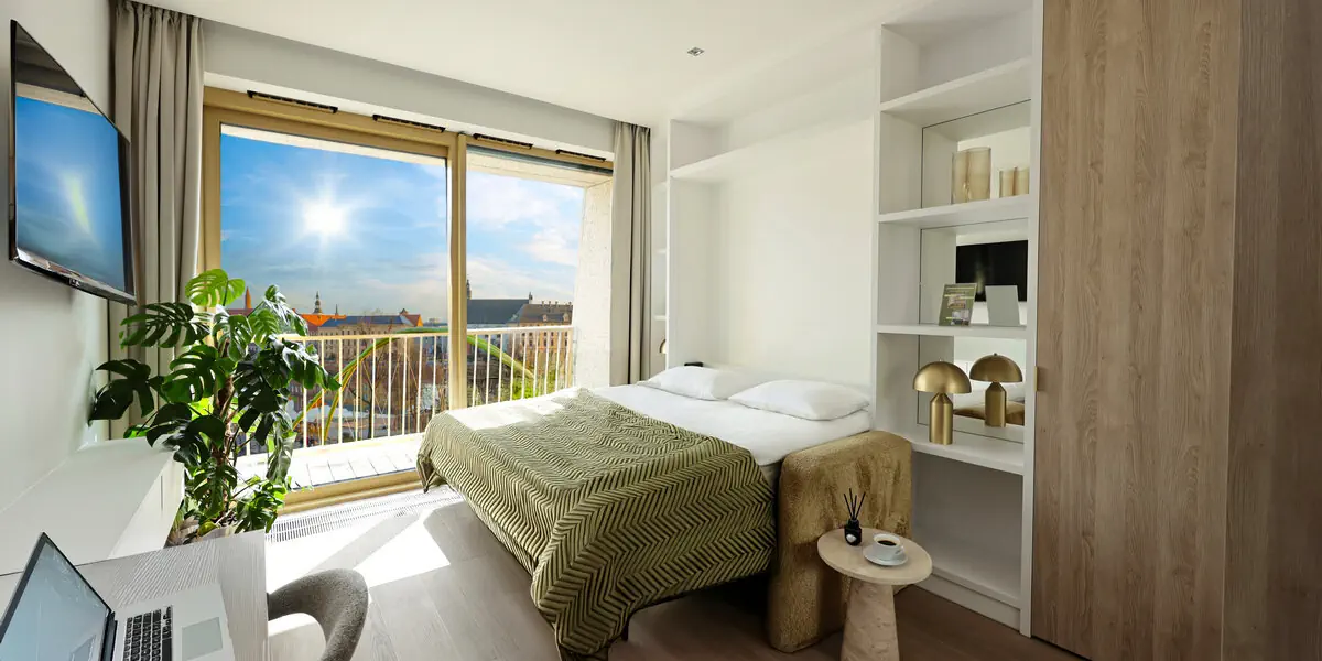 Przestronny, 3-pokojowy apartament w stylu ponadczasowym, oferujący nowoczesny design i wysoką jakość. W apartamencie znajdują się dwie sypialnie z wygodnymi łóżkami oraz salon z elegancką, nierozkładaną sofą. Duże okna zapewniają dostęp naturalnego światła oraz widok na miasto, a wnętrza zostały zaprojektowane z myślą o komforcie i elegancji. W łazience pralka, prysznic, kosmetyki, w kuchni lodówka, zmywarka do naczyń, ekspres do kawy, płyta indukcyjna, czajnik, naczynia i sztućce