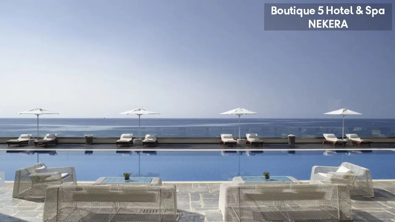 Boutique 5 Hotel & Spa to luksusowy hotel w Kiotari na wyspie Rodos, przeznaczony wyłącznie dla dorosłych. Położony w pobliżu plaży, oferuje stylowe pokoje i apartamenty, wiele z prywatnymi basenami. Na terenie hotelu znajdują się nowoczesne spa, restauracja serwująca dania kuchni śródziemnomorskiej oraz bar. Idealne miejsce na romantyczny wypoczynek w spokojnej atmosferze.