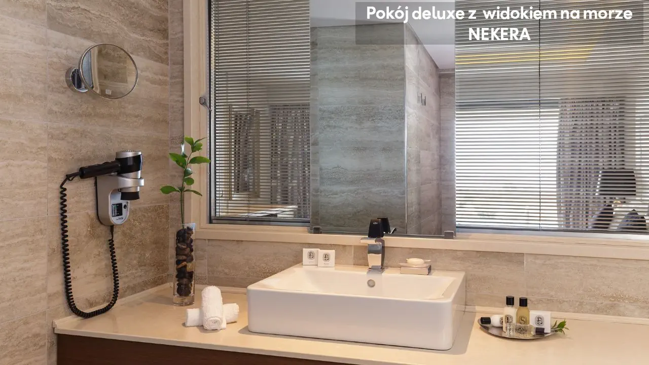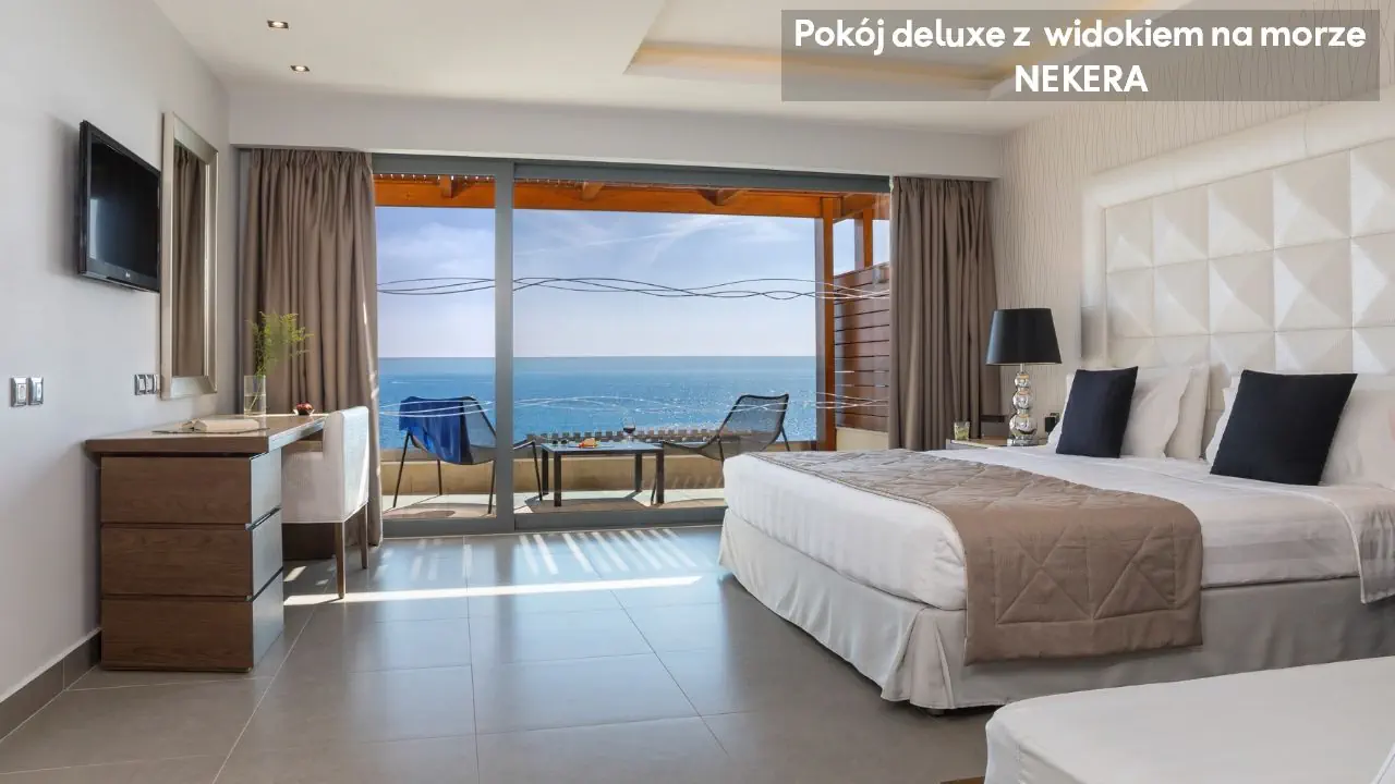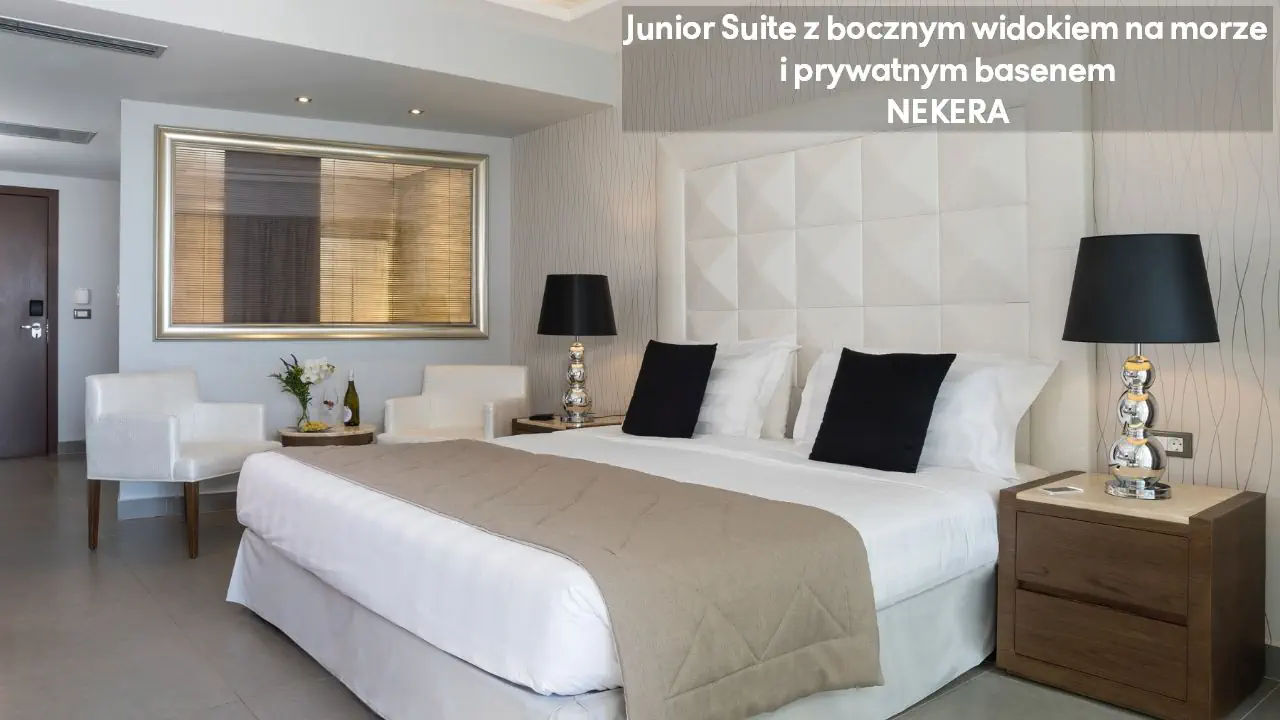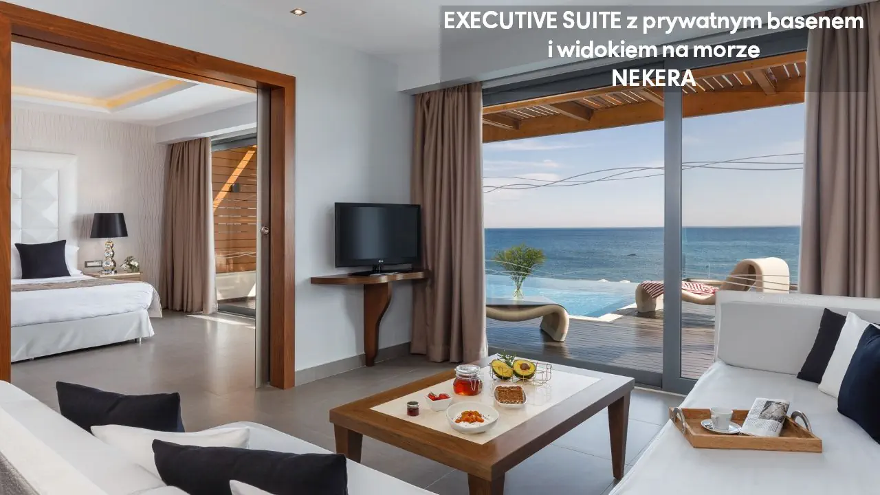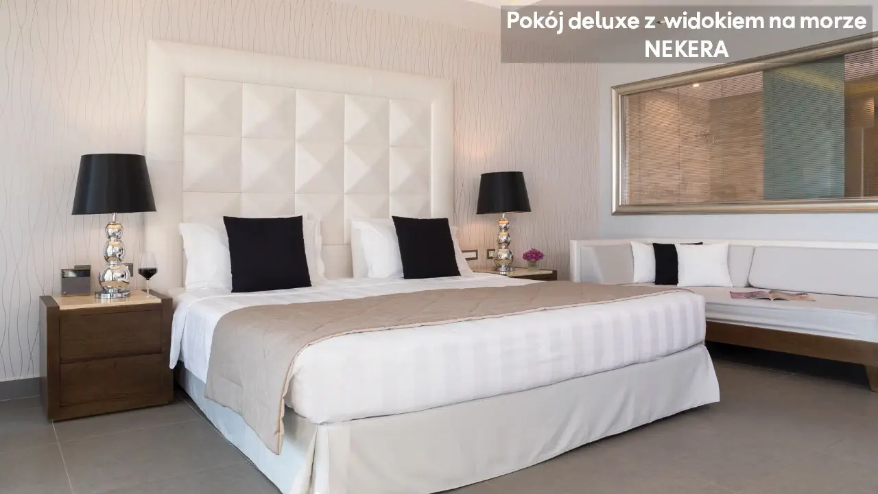 Pokój dwuosobowy Superior Deluxe z widokiem na morze - powierzchnia 31 m² - max 3-os. - łóżko podwójne - sofa lub łóżko rozkładane - klimatyzacja - bezpłatne Wi-Fi - telewizor z płaskim ekranem - telefon - mini bar (płatny) - zestaw do parzenia kawy/herbaty - ekspres do kawy Nespresso - sejf - żelazko i deska do prasowania - łazienka z prysznicem i wanną - suszarka do włosów - zestaw mini kosmetyków - kapcie, szlafrok - balkon lub taras z widokiem na morze Junior Suite z prywatnym basenem i częściowym widokiem na morze - powierzchnia 30 m² - max 2-os. - łóżko podwójne - sofa lub łóżko rozkładane - klimatyzacja - bezpłatne Wi-Fi - telewizor z płaskim ekranem - telefon - mini bar (płatny) - zestaw do parzenia kawy/herbaty - ekspres do kawy Nespresso - sejf - żelazko i deska do prasowania - łazienka z prysznicem i wanną - suszarka do włosów - zestaw mini kosmetyków - kapcie, szlafrok - taras prywatnym basenem Superior Junior Suite z prywatnym basenem i częściowym widokiem na morze - powierzchnia 37 m² - max 3-os. - łóżko podwójne - sofa - klimatyzacja - bezpłatne Wi-Fi - telewizor z płaskim ekranem - telefon - mini bar (płatny) - zestaw do parzenia kawy/herbaty - ekspres do kawy Nespresso - sejf - żelazko i deska do prasowania - łazienka z prysznicem i wanną - suszarka do włosów - zestaw mini kosmetyków - kapcie, szlafrok - taras prywatnym basenem Superior Junior Suite z prywatnym basenem i widokiem na morze - powierzchnia 37 m² - max 3-os. - łóżko podwójne - sofa - klimatyzacja - bezpłatne Wi-Fi - telewizor z płaskim ekranem - telefon - mini bar (płatny) - zestaw do parzenia kawy/herbaty - ekspres do kawy Nespresso - sejf - żelazko i deska do prasowania - łazienka z prysznicem i wanną - suszarka do włosów - zestaw mini kosmetyków - kapcie, szlafrok - taras prywatnym basenem Mediterranean Suite z prywatnym basenem i widokiem na morze - powierzchnia 44 m² - max 2-os. - łóżko podwójne - klimatyzacja - bezpłatne Wi-Fi - telewizor z płaskim ekranem - telefon - mini bar (płatny) - zestaw do parzenia kawy/herbaty - ekspres do kawy Nespresso - sejf - żelazko i deska do prasowania - łazienka z prysznicem i wanną z jacuzzi - suszarka do włosów - zestaw mini kosmetyków - kapcie, szlafrok - taras prywatnym basenem Executive Suite z prywatnym basenem i widokiem na morze - powierzchnia 60 m² - max 4-os. - salon i sypialnia - drzwi przesuwne - łóżko podwójne - podwójna sofa - klimatyzacja - bezpłatne Wi-Fi - 2 telewizory z płaskim ekranem - telefon - mini bar (płatny) - zestaw do parzenia kawy/herbaty - ekspres do kawy Nespresso - sejf - żelazko i deska do prasowania - łazienka z prysznicem i wanną z jacuzzi - suszarka do włosów - zestaw mini kosmetyków - kapcie, szlafrok - taras prywatnym basenem