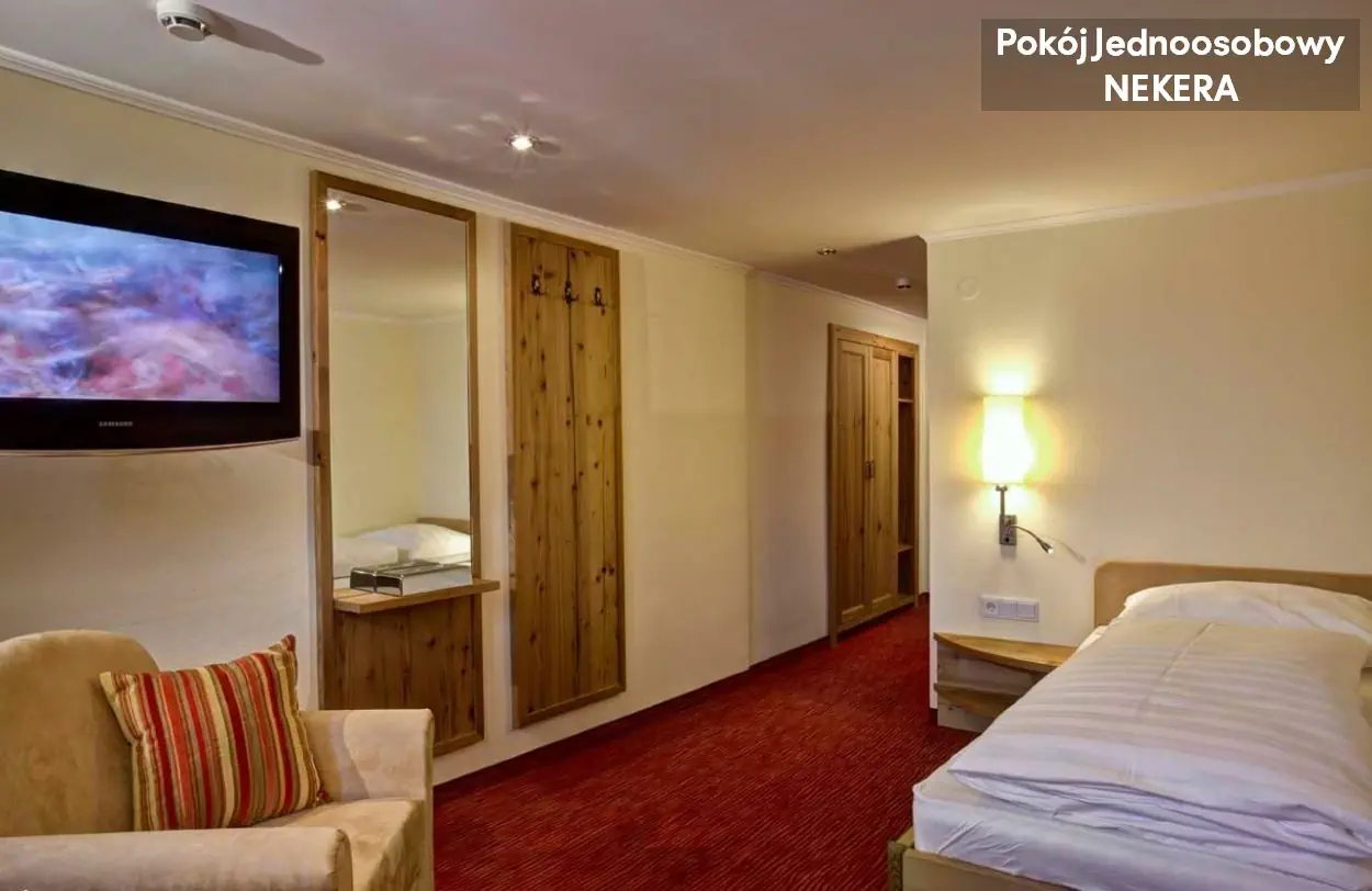 z dwoma posiłkami, śniadanie w formie bufetu, kolacja w formie 3-daniowego menu z bufetem sałatkowym. Menu świateczne (24.12 ) w cenie. Raz na pobyt degustacja własnego piwa (osoby dorosłe).