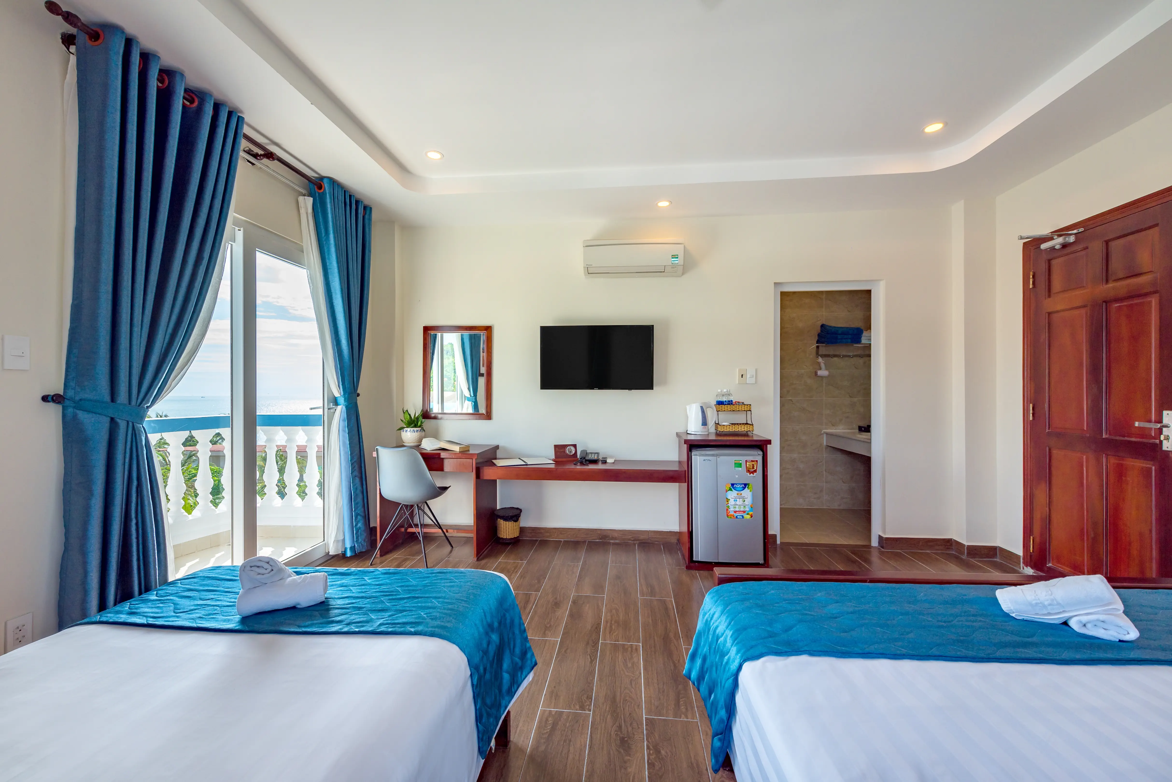Dla max. 4 osób, Przestrzeń zewnętrzna: Balkon, Kanały telewizji: Angielski, prysznic, Powierzchnia pokoju: ok. 35 m2, Dostawka: łóżko rozkładane, Rodzaj podłogi: płytki, Sprzątanie codziennie, 1 sypialnia, Maksymalna liczba osób dorosłych: 3, Maksymalna liczba dzieci: 3, Widok na morze, Liczba łazienek: 1, Liczba toalet: 1, Zestaw do parzenia kawy i herbaty, Klimatyzacja: Klimatyzacja indywidualna