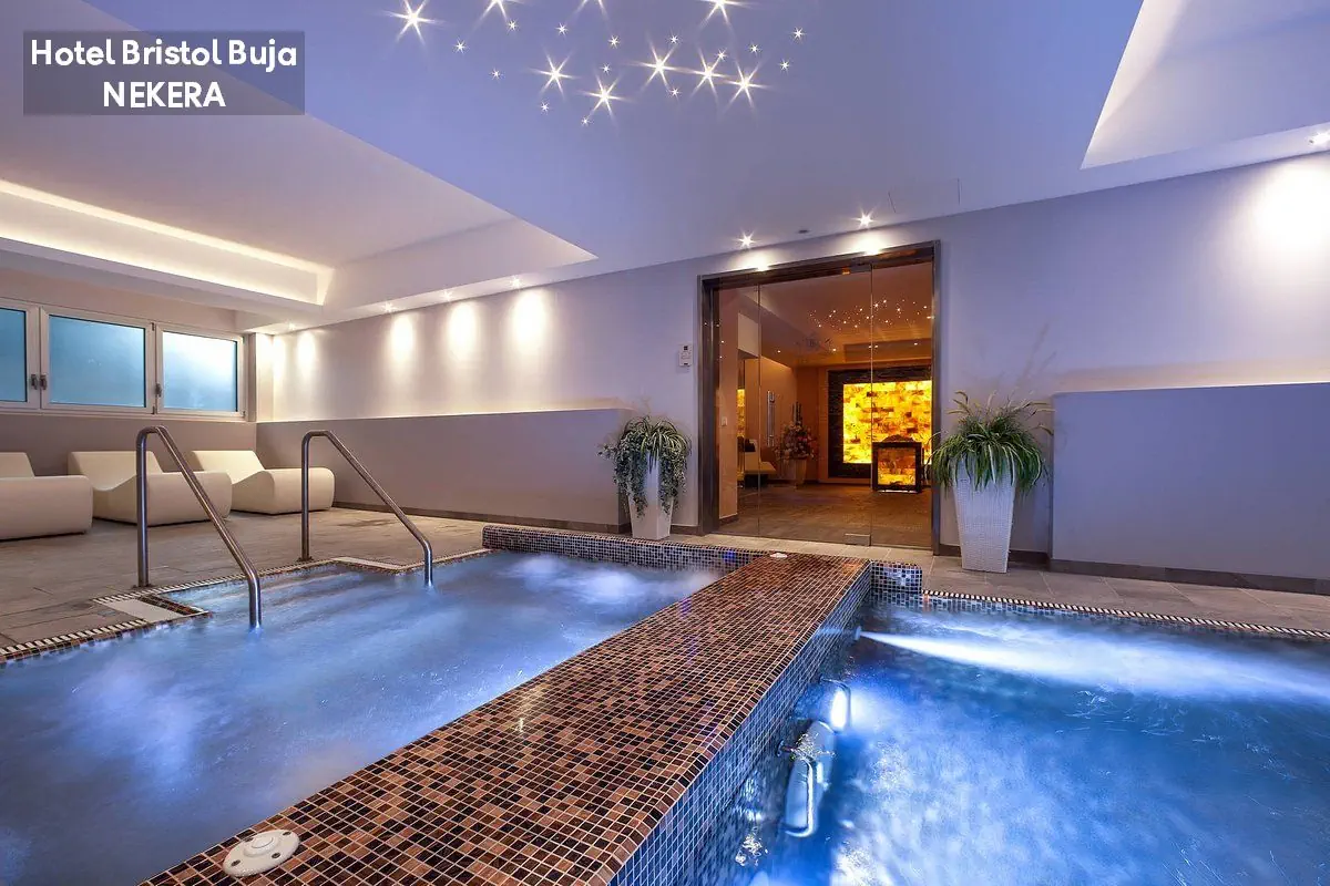 strefa wellness (ok. 2.500 m2), basen (ok. 90 m2), parasole w cenie, kryty basen (ok. 120 m2), łaźnia parowa, sauna fińska, snarium, sauna, whirlpool, pokój relaksacyjny. Za opłatą: masaże, centrum urody.