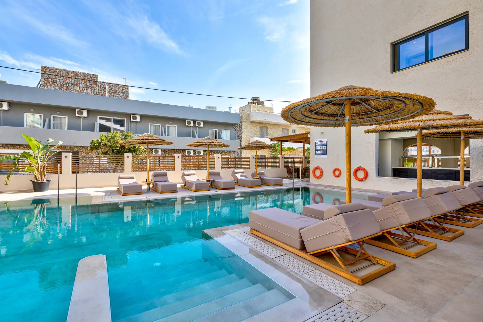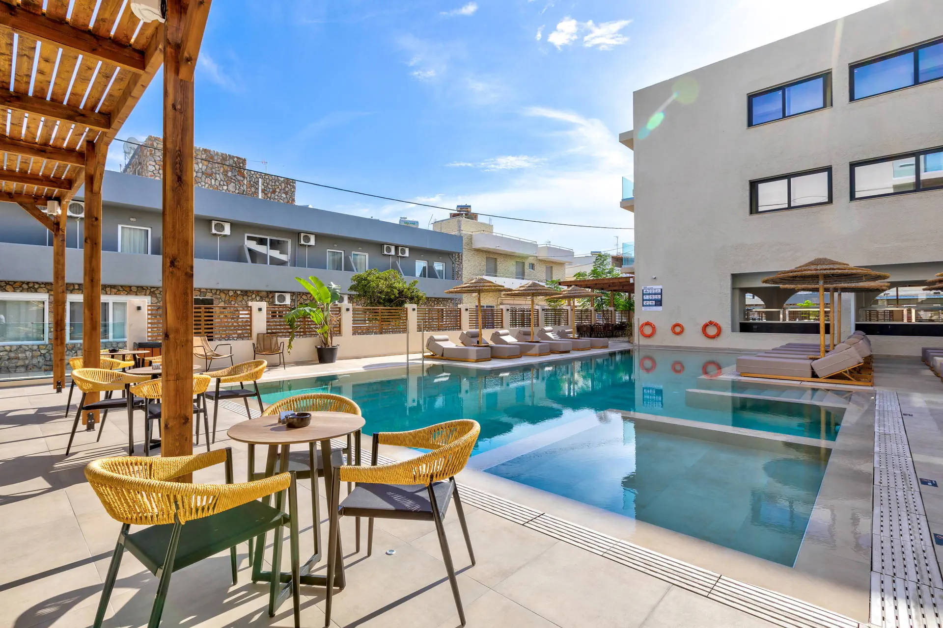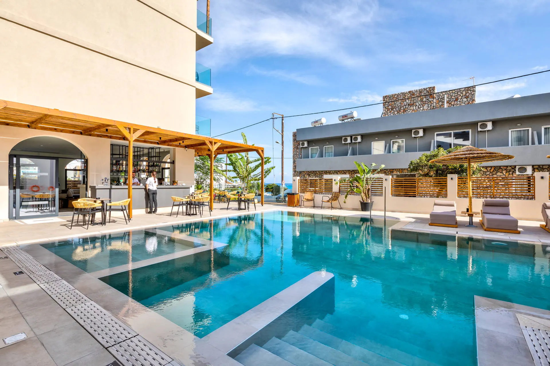 Położenie Hotel położony jest w urokliwej i lubianej przez turystów miejscowości Kardamena. Odległość od lotniska wynosi około 7 km. Obiekt znajduje się około 30 km od starówki w Kos. W najbliższej okolicy dostępne są sklepy, kawiarnie, restauracje i bary. UWAGA! Cena nie obejmuje lokalnego podatku turystycznego w wysokości ok. 15 EUR/pokój/dzień. Podatek jest obligatoryjny i płatny bezpośrednio w recepcji, przed zakwaterowaniem Klientów w hotelu. Plaża Plaża oddalona o ok. 20 m od hotelu. Piaszczysta. Leżaki i parasole bezpłatne, dostępne ręczniki plażowe (wymagany depozyt). Do dyspozycji gości Recepcja 24h z lobby, winda. 1 odkryty basen z brodzikiem. Atrakcje dla dorosłych: Centrum SPA. Restauracje: restauracja główna, 2 restauracje a la carte, bar przy basenie. Pozostałe informacje: przechowalnia bagażu, room service (płatne), usługi pralnicze (płatne). Pokoje Pokoje standard z możliwością maksymalnie 1 dostawki, pokoje typu suite oraz pokoje rodzinne. Każdy posiada balkon lub taras, część pokoi z bocznym widokiem na morze. W pokojach łazienka (WC, wanna lub prysznic, suszarka do włosów), TV-Sat, telefon, klimatyzacja indywidualnie sterowana, sejf (bezpłatnie), lodówka. Wyżywienie Rodzaje wyżywienia i posiłki: All Inclusive: Śniadania: 07:00 - 10:30. Lunche: 12:30 - 14:30. Kolacje: 19:00 - 21:30, w formie bufetu w restauracji głównej. Restauracje: Restauracja główna w formie bufetu. Restauracja a la carte azjatycka, kolacje 19:00 - 21:00, wymagana rezerwacja. Restauracja a la carte grecka, kolacje 19:00 - 21:00, wymagana rezerwacja. Bary: Bar główny: napoje bezalkoholowe, lokalne alkohole oraz wybrane koktajle w godzinach 17:30 - 23:00. Bar przy basenie: napoje bezalkoholowe, lokalne alkohole oraz wybrane koktajle w godzinach 10:00 - 23:00. Dodatkowe usługi: Przekąski i napoje przy basenie: 14:30 - 16:00. Naleśniki: 11:00 - 17:00. Program sportowy i animacyjny Dla każdego: niewielkie centrum fitness. Za dodatkową opłatą: sauna i zabiegi w centrum SPA, bilard, tenis stołowy. Internet Internet Wi-Fi w częściach ogólnodostępnych oraz w pokojach – bezpłatnie. Kategoria lokalna ***** Naszym zdaniem Kameralny hotel w malowniczej Kardamenie oferuje formułę all inclusive, zapewniając komfortowy wypoczynek. Krótki transfer z lotniska ułatwia dotarcie do tego miejsca, gdzie piaszczysta plaża i greckie słońce tworzą idealne warunki do relaksu. Swobodna atmosfera pozwala cieszyć się spokojem, co wyróżnia ten hotel na tle innych.