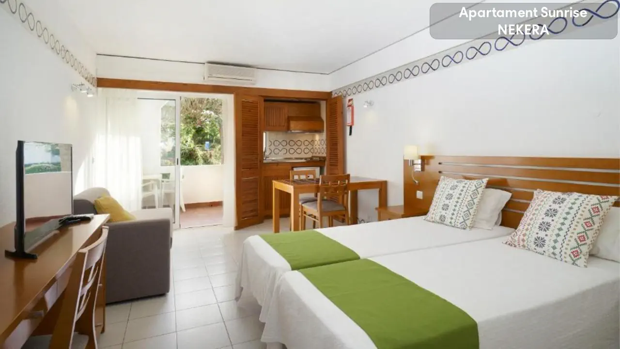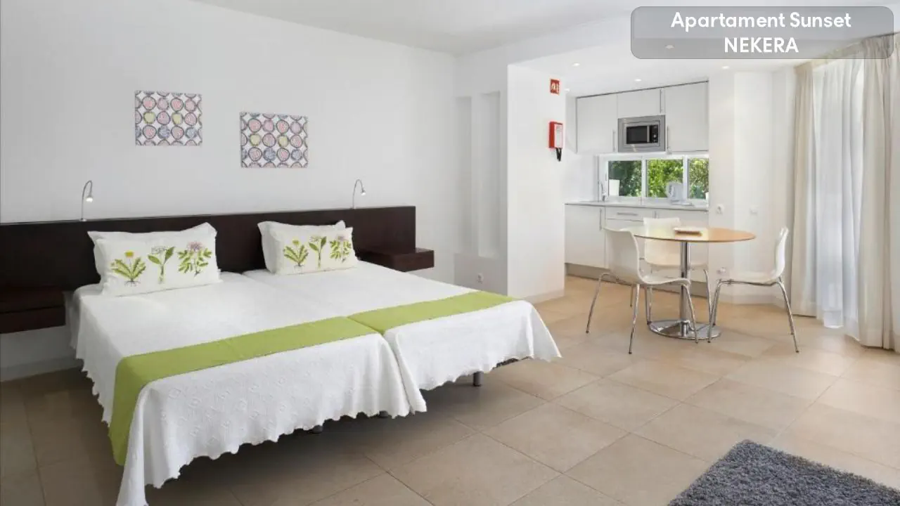 zabiegi, masaże, sauna, jacuzzi, łaźnie parowe (płatne); USŁUGI - recepcja 24h, - parking własny (bezpłatny) dla gości, - wypożyczalnia rowerów, - gabinet masażu, - gabinet kosmetyczny, - bezpłatne WiFi w lobby; DOSTĘPNE POKOJE SUNRISE STUDIOS - maksymalne obłożenie pokoju to 2 osoby dorosłe i 1 dziecko poniżej 12 lat. - dostępne 2 pojedyncze łóżka, - aneks kuchenny wyposażony w lodówkę, kuchenkę dwupalnikową, kuchenkę mikrofalową, podstawowe naczynia kuchenne, talerze, kubki i sztućce, - łazienka z wanną lub prysznicem i suszarką do włosów, - klimatyzacja, - telewizor z płaskim ekranem, - bezpłatne Wi-Fi, - balkon ze stołem, krzesłami i suszarką na ubrania; SUNRISE STUDIO PLUS - maksymalne obłożenie pokoju to 2 osoby dorosłe i 2 dzieci poniżej 12 lat lub 3 osoby dorosłe i 1 dziecko poniżej 12 lat. - dostępne 3 lub 4 pojedyncze łóżka, - aneks kuchenny wyposażony w lodówkę, kuchenkę dwupalnikową, kuchenkę mikrofalową, podstawowe naczynia kuchenne, talerze, kubki i sztućce, - łazienka z wanną lub prysznicem i suszarką do włosów, - klimatyzacja, - telewizor z płaskim ekranem, - bezpłatne Wi-Fi, - balkon ze stołem, krzesłami i suszarką na ubrania; Dostępne apartamenty na większą ilość osób WYŻYWIENIE BB - śniadania w formie bufetu, HB - śniadanie i obiadokolacja w formie bufetu, napoje do obiadokolacji płatne, All Inclusive - śniadanie, obiad, kolacja w formie bufetu; wybrane lokalne napoje alkoholowe i bezalkoholowe serwowane w wyznaczonych barach, w ciągu dnia dostępne są przekąski Restauracja „Amarelo” – kuchnia portugalska i śródziemnomorska, Ria Café - bar-lounge - czynna od połowy października do połowy maja, Pool Bar - (czynny sezonowo);