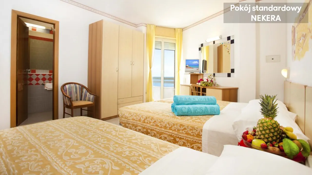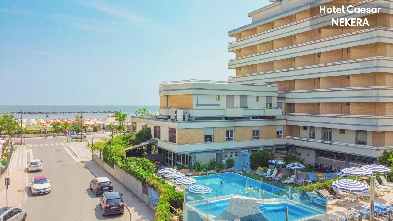 Hotel Caesar to elegancki, czterogwiazdkowy obiekt położony bezpośrednio przy plaży w dzielnicy Valverde di Cesenatico. Zarządzany przez rodzinę Manuzzi od ponad 50 lat, oferuje gościom komfortowy wypoczynek w nadmorskiej scenerii, z bogatym zapleczem rekreacyjnym i serdeczną atmosferą.