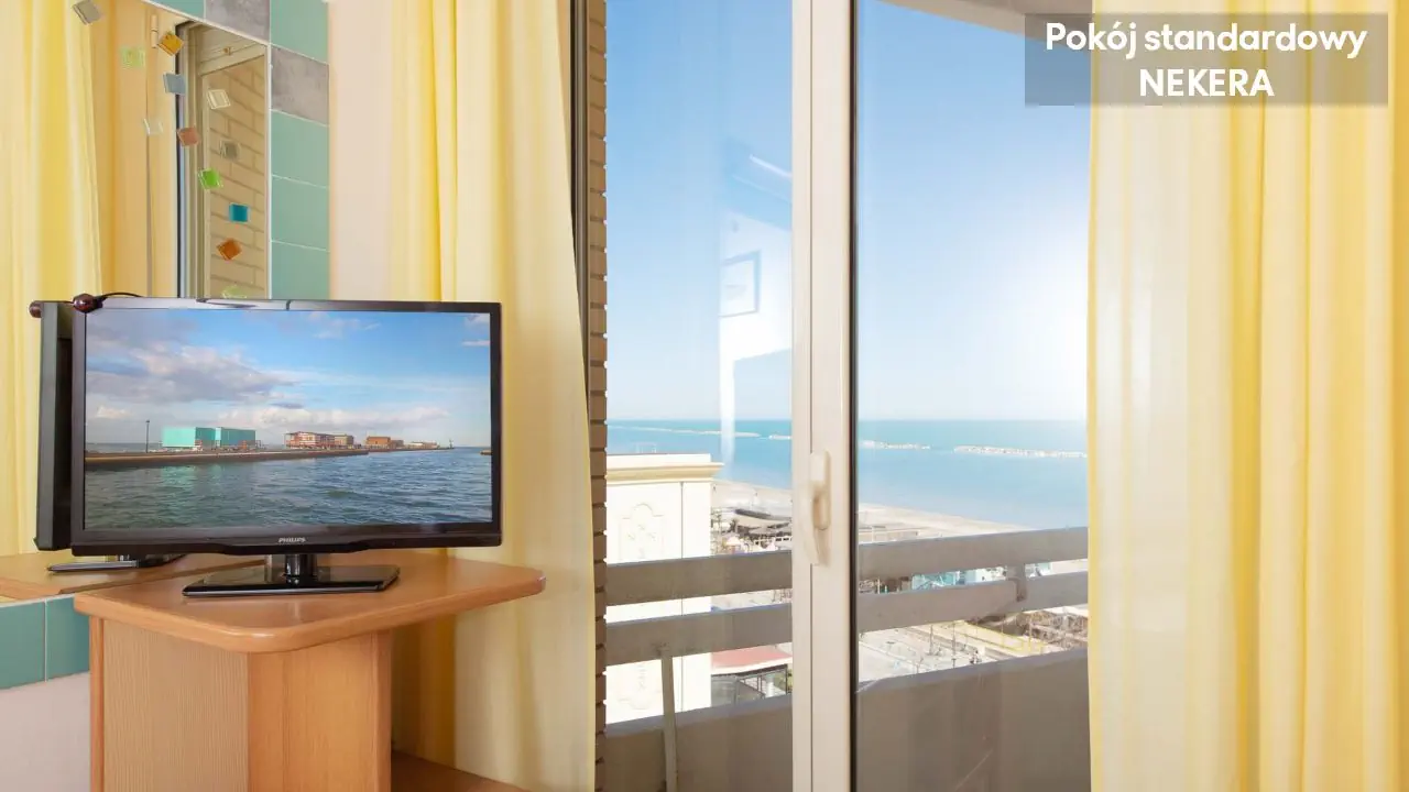 Pokój Standardowy dla maks. 4 osób dorosłych klimatyzacja, sejf, TV-SAT, telefon (płatny), mini lodówka (pusta), prywatna łazienka (prysznic, umywalka, lustro, toaleta, mini kosmetyki, suszarka do włosów), umeblowany balkon z widokiem na morze lub basen.