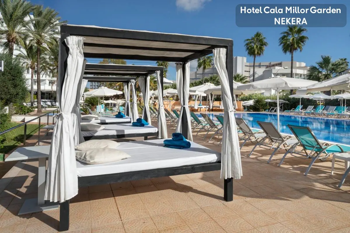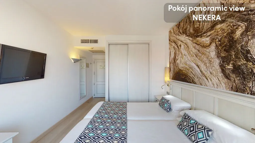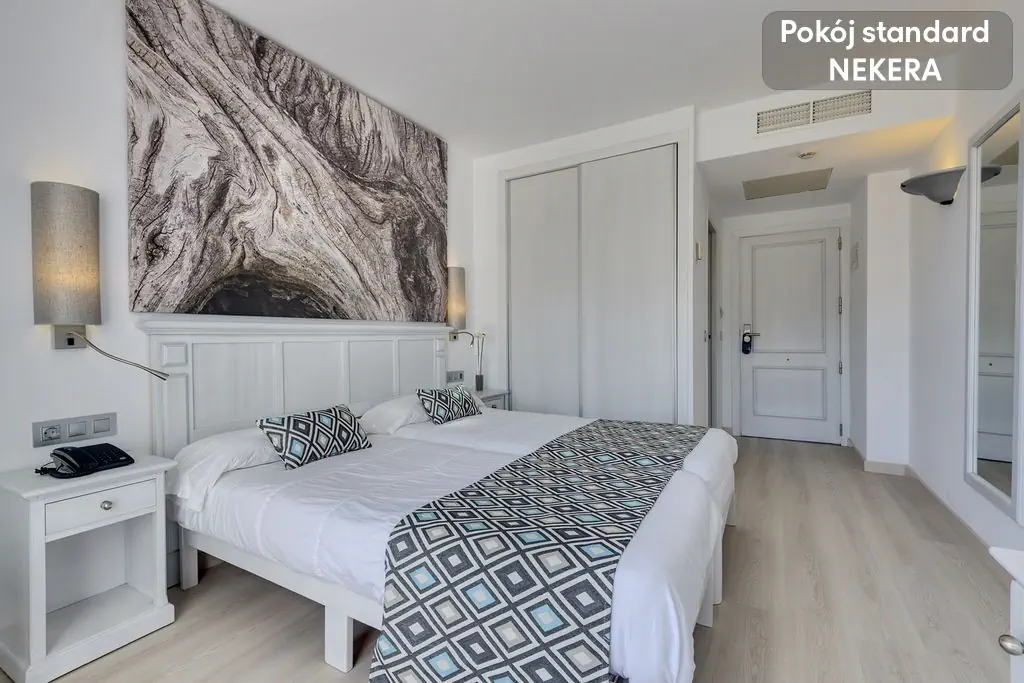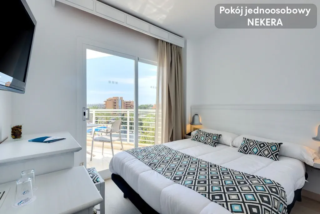 Park Narodowy S'Albufera Majorka ( ok. 43 km), Jaskinie Drach ( ok.14 km). Plaża Hotel położny jest zaledwie 200 m od jednej z najlepszych plaż na Majorce - Playa Cala Millor. Ta wyróżniona Błękitną Flagą publiczna plaża, długości ponad 2 km i szerokości 50 m, to malowniczy biały piasek i jasnobłękitna woda z łagodnym dostępem. Na plaży znajdziemy parasole i leżaki do wynajęcia (za opłatą) oraz punkty do wynajmu sprzętu sportu wodnego. Plaża jest strzeżona. Wzdłuż plaży ciągnie się promenada, na której znajdziemy liczne restauracje, bary, sklepy. Drugą godną uwagi i jedną z najpiękniejszych na Majorce plażą jest oddalona o 2,8 km od hotelu plaża Platja de sa Coma. Ta publiczna, wyróżniona Błękitną Flaga, plaża z drobnym złocistym piaskiem i łagodnym wejściem do wody, rozciąga się na 2 km. Na plaży dostępne parasole i leżaki (za opłatą), punkty wynajmu sprzętu wodnego, toalety, prysznice. Plaża jest strzeżona. Wyposażenie Hotel mieści się w jednym budynku i oferuje łącznie 172 pokoje na 6 piętrach dostępnych windą. Hotel dostosowany do potrzeb osób z niepełnosprawnością ruchową. Do dyspozycji gości są dwa baseny - jeden odkryty z bezpłatnymi parasolami i leżakami oraz łózkami balijskimi (dodatkowo płatne); drugi kryty - podgrzewany w niskim sezonie, z bezpłatnymi leżakami; dostępne są również 2 jacuzzi - zewnętrzne i wewnętrzne. W hotelu znajdują się dwie restauracje główne - jedna zlokalizowana na tarasie, bufetowa z kuchnią lokalna i międzynarodową, kilka razy w tygodniu organizowane są pokazy live cooking; oraz druga a’ la carte S’Oliva z kuchnią śródziemnomorską. Ponadto - przy basenie znajdziemy snack bar z licznymi napojami, przekąskami i daniami - wieczorami oferowane menu degustacyjne; lounge bar z wyborem koktajli i innych alkoholi. Hotel oferuje ponadto - całodobową recepcję, przechowalnie bagażu, informacje turystyczną, wypożyczalnię rowerów, wypożyczalnię samochodów. UWAGA hotel wyłącznie dla osób dorosłych. Rezerwacja możliwa dla Gości od 18 r.ż. Dostęp do Internetu Wi-Fi bezpłatne na terenie całego hotelu. Zakwaterowanie - pokój dwuosobowy standard - ok. 17 m2, dwa oddzielne łózka (złączone), klimatyzacja, TV sat, biurko, telefon, sejf (bezpłatny), WiFi (bezpłatne), łazienka z prysznicem i suszarką do włosów, łodówka z mini barem (płatny), balkon z meblami ogrodowymi i widokiem na część wspólną. - pokój dwuosobowy superior - ok. 24 m2, łóżko podwójne, sofa - reszta wyposażenia jak w pokoju standard. - pokój jednoosobowy - ok. 13 m2, jedno łóżko podwójne - reszta wyposażenia jak w pokoju standard. - pokój suite - ok. 37 m2, część sypialna z dwoma łóżkami (złączone) oraz część wypoczynkowa z sofą i stolikiem, kapsułkowy ekspres do kawy, w łazience lusterko od makijażu i szlafrok kąpielowy; reszta wyposażenia jak w pokoju standard. - pokój dwuosobowy z widokiem panoramicznym (panoramic view) - ok. 17 m2, z balkonu widok na część wspólną, góry i morze (częściowo); kapsułkowy ekspres do kawy, w łazience lusterko od makijażu i szlafrok kąpielowy; reszta wyposażenia jak w pokoju standatrd. - pokój dwuosobowy superior z widokiem panoramicznym - ok. 24 m2, dwa oddzielne łózka (złączone), sofa wypoczynkowa, reszta wyposażenia jak w pokoju dwuosobowym z widokiem panoramicznym. Sport Hotel przyjazny rowerzystom - dostępna jest nie tylko wypożyczalnia rowerów (płatna dodatkowo) ale i schowek/garaż dla rowerów gości (zamykany, z monitoringiem) oraz warsztat rowerowy z podstawowymi narzędziami. Bezpłatny dostęp do siłowni, dwa baseny w tym jeden kryty i podgrzewany (poza sezonem), dwa jazuzzi, codzienne animacje w basenie, rzutki, ping pong, bogaty program zajęć grupowych - m.in. joga, aerobik (wg dostępnego rozkładu zajęć). Dostępna oferta specjalna (płatna dodatkowo) dla gości hotelu na polu golfowym Club de Golf Son Servera - 12 km od hotelu. Rozrywka Liczne animacje z muzyką - wg rozkładu, przedstawienia, karaoke, wieczory taneczne, gotowanie na żywo i wieczory kuchni międzynarodowej. Wellness Basen i jacuzzi zewnętrzne, basen wewnętrzny z jacuzzi i biczami wodnymi, sauna fińska, salon kosmetyczny / SPA z masażami - odpłatny. Wyżywienie All inclusive 3x posiłki dziennie w formie bufetu. Do tego w ciągu dnia przekąski,bar z wybranymi napojami i alkoholami lokalnymi i międzynarodowymi. Kategoria Nekera - 4 gwiazdki, kategoria lokalna - 4 gwiazdki. Opis imprezy Cena nie zawiera obowiązkowego podatku turystycznego w wysokości 2,2 EUR/osoba/noc w przypadku obiektów trzygwiazdkowych i 3,30 EUR/osoba/noc w przypadku obiektów czterogwiazdkowych. Podatek płatny w recepcji podczas zakwaterowania. Parkowanie Bezpłatny parking dla gości - wg dostępności miejsc. Zwierzęta domowe Zwierzęta domowe nie są akceptowane. Ważne informacje Kotel wyłącznie dla osób dorosłych. Rezerwacja możliwa dla Gości od 18 r.ż. TELEFONICZNA OPIEKA W JĘZYKU POLSKIM.