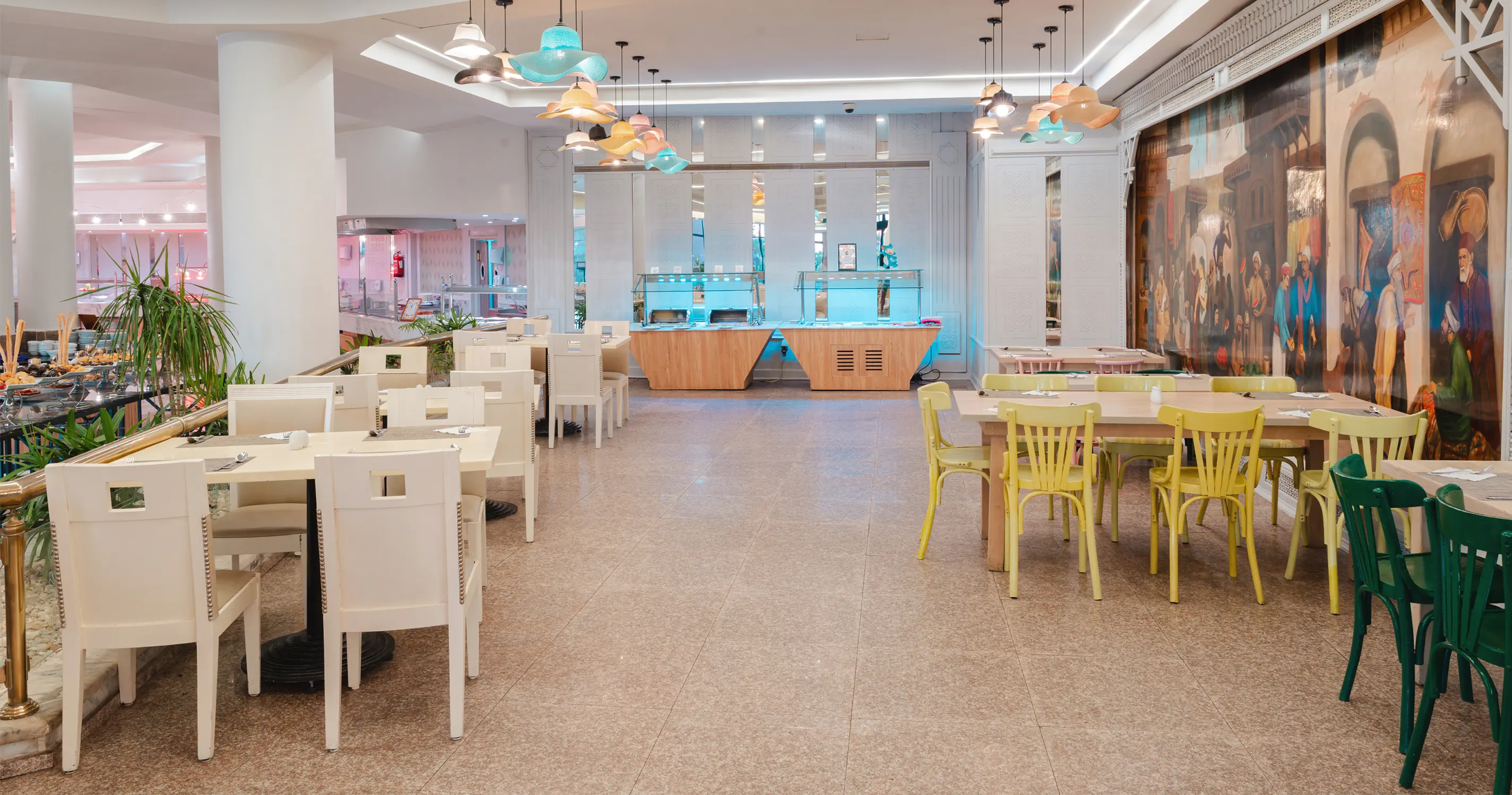 - restauracja główna - 2 restauracje a la carte - lobby bar - bar przy basenie - bar przy aquaparku - bar na plaży - szisza (dodatkowo płatne)