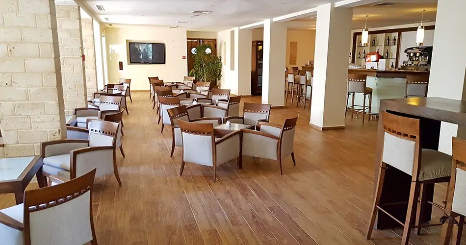 - Recepcja - 3 restauracje ( w tym a'la carte płatna), 4 bary, niektóre bary i restauracje są otwarte od 01.06 do 30.09 - Kawiareńka mauretańska - shisha, kawa i herbata z orzechami płatne - 2 baseny, z których jeden ma wydzieloną część dla dzieci - Basen wewnętrzny - Plac zabaw - Miniklub - sala konferencyjna - Kantor - Centrum wellness (wszystkie zabiegi płatne) - Sklepy - Oficjalna kategoria hotelu 4*