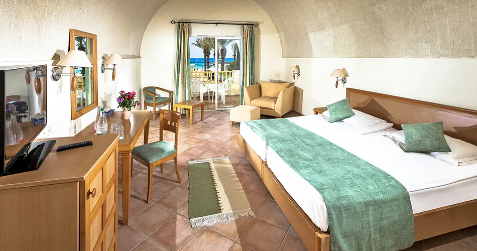 Opis imprezy turystycznej uwzględnia usługi świadczone w szczycie sezonu, który przypada na lipiec i sierpień. Zakres niektórych usług dostępnych w obiektach zakwaterowania (hotelach), świadczonych poza szczytem sezonu może nieznacznie różnić się od zakresu usług świadczonych w szczycie sezonu. Szczegółowe informacje na temat usług z określeniem różnic zostały wskazane w Informatorze ogólnym. Pokoje Pokój Standard ok. 28 m² Klimatyzacja (15.06 - 15.09) Łazienka z wanną lub prysznicem, suszarka do włosów, toaleta Telefon, TV-Sat Sejf - bezpłatny Minilodówka - bezpłatna Zeztaw do parzenia herbaty Balkon lub taras Pokoj z widokiem na basen - Standard PV Pokój Family ok 48 m² Wyposażenie jak w pokoju Standard 1 większy pokój Ubytování - odkládací pole Położenie Centrum Hammametu ok. 6 km Centrum Nabeul ok. 6 km Najbliższe sklepy restauracje oraz kawiarnie ok. 1 km Autobusy kursują w stronie Hammamet i Nabeul Port lotniczy Monastir ok. 117 km Plaża Piaszczysta, prywatna, bezpośrednio przy hotelu Leżaki, materace i parasole - bezpłatne Ręczniki są dostępne po wpłaceniu depozytu