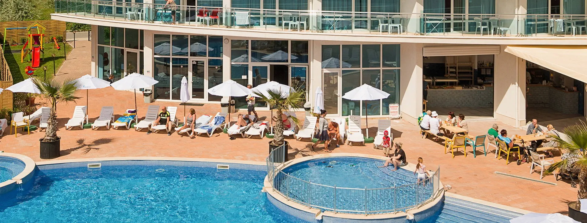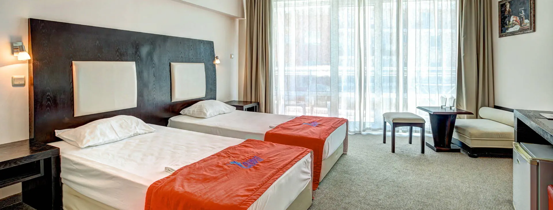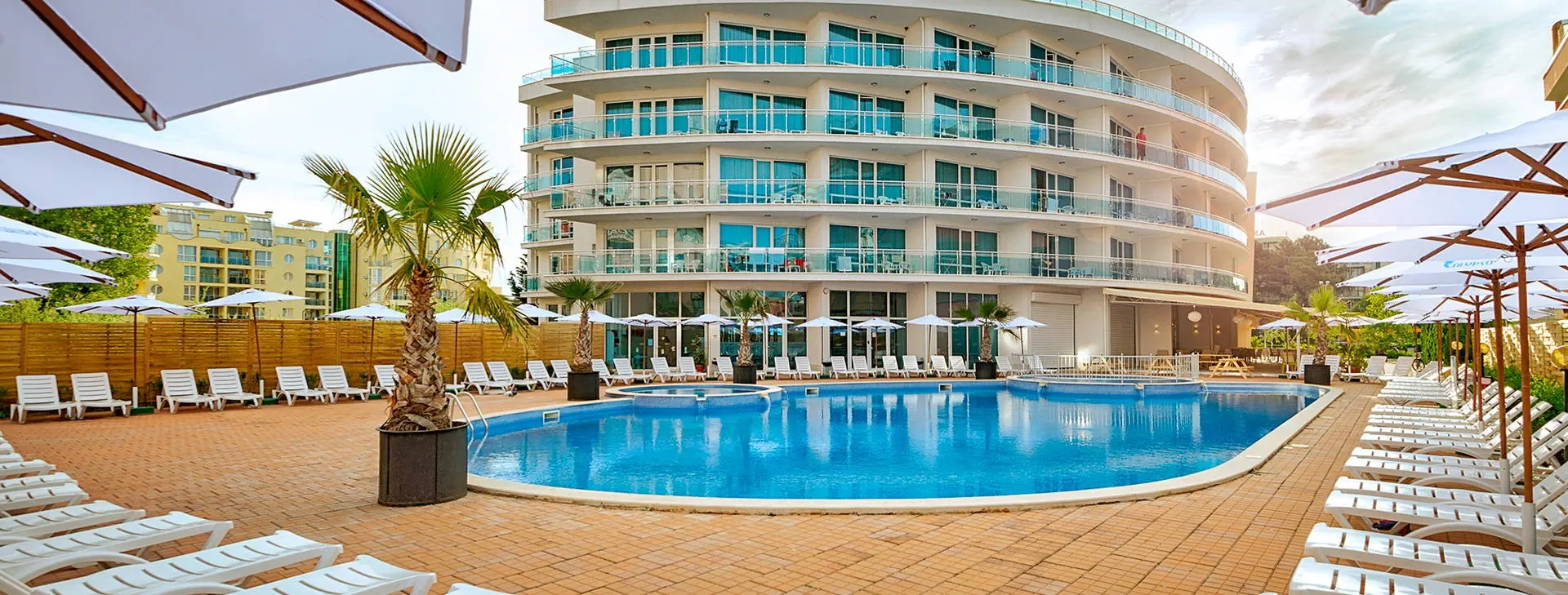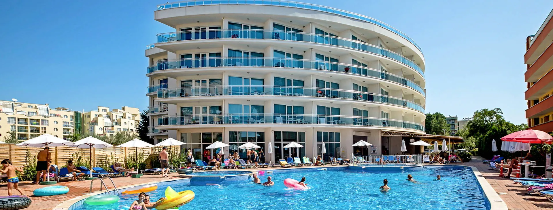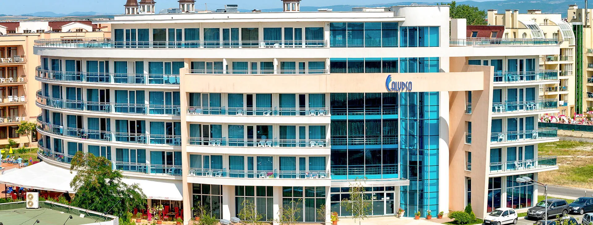 Położenie: Otwarty w 2009r. hotel Calypso położony jest w południowej części Słonecznego Brzegu, skąd niedaleko (ok. 3 km) do uroczego miasteczka Nesebar (UNESCO) z jego niepowtarzalną atmosferą, wąskimi kamiennymi uliczkami i mariną. Nieopodal hotelu znajdują się liczne kawiarnie, bary, supermarkety a nieco dalej (w centrum Słonecznego Brzegu ok. 3 km od hotelu) kluby nocne i dyskoteki (łatwy dojazd komunikacją miejską). Do lotniska w Burgas ok. 35km, do lotniska w Warnie ok 105 km. Plaża: Hotel znajduje się ok. 500 m. od pięknej, długiej, piaszczystej publicznej plaży. Przejście do plaży przez główną ulicę. Parasole i leżaki dodatkowo płatne. Do dyspozycji gości: 24 godz. recepcja, lobby bar, bar przy basenie, restauracja główna w przyjemnym, prostym skandynawskim stylu z niewielkim tarasem, basen zewnętrzny, nieduża przestrzeń przy basenie z parasolami i leżakami (bezpłatne). Wyżywienie: All inclusive: śniadanie (7:30-10:00), obiad (12:30-14:30), kolacja (18:30-21:00) w formie bufetu w restauracji głównej. Przekąski (15:00-17:00), lody (10:00-23:00), lokalne napoje alkoholowe i bezalkoholowe serwowane w barze przy basenie (10:00-23:00). Raz w tygodniu wieczór bułgarski. Program sportowy i animacyjny: Razw tygodniu wieczory z animacjami dla dorosłych. Goście mogą korzystać z bezpłatnej siłowni. Internet: Internet na terenie hotelu bezpłatny. Kategoria lokalna: ***+ Strona www: