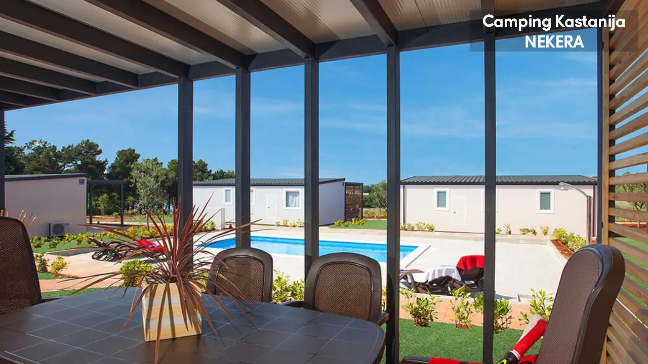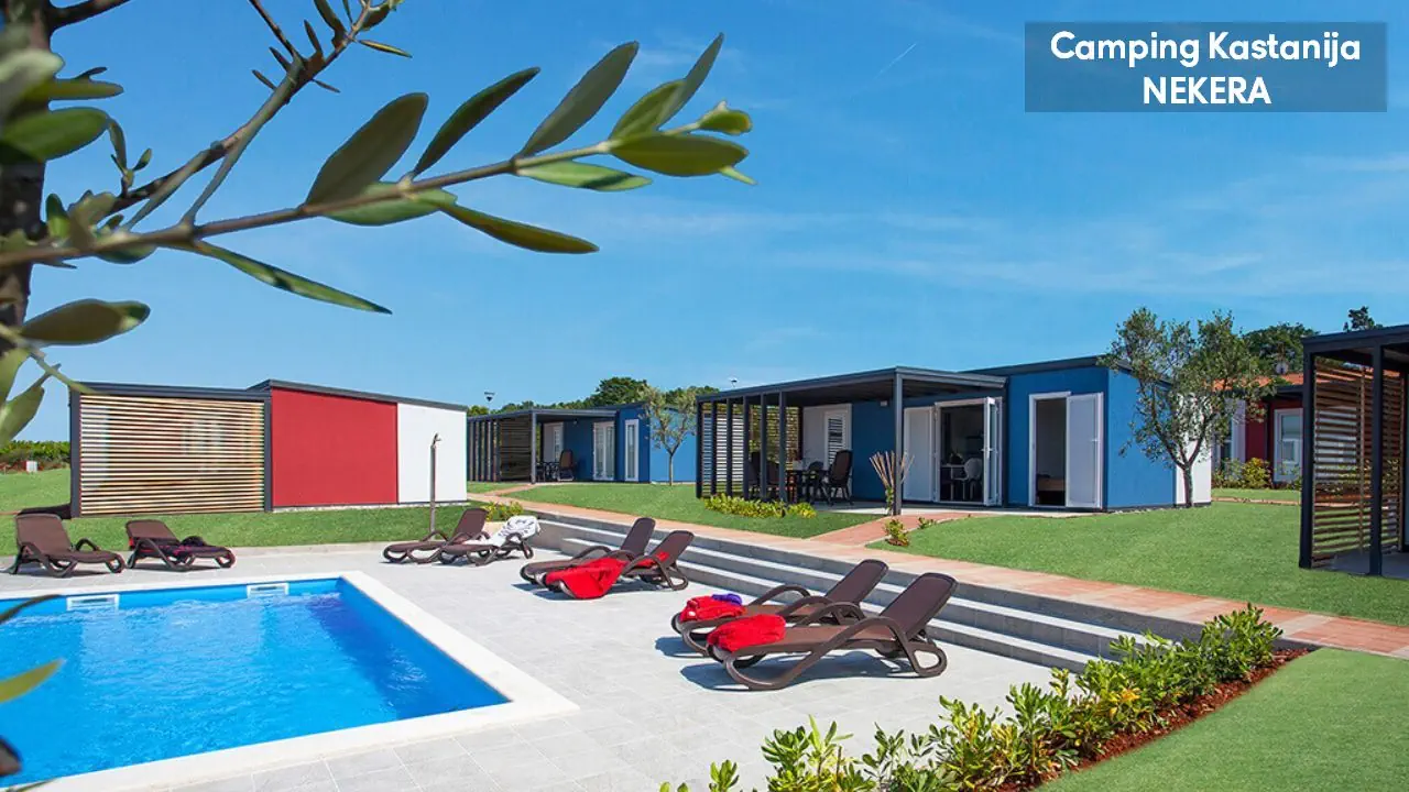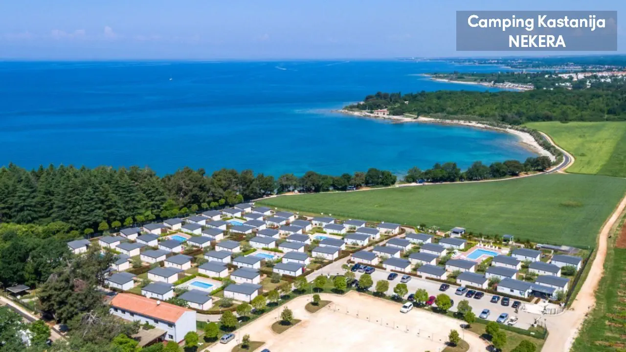 ośrodek wakacyjny „Kastanija” PINETA znajduje się zaledwie 3 km kilometry na północ od Novigradu i zajmuje 20 000 m² gaju piniowego. Lubiany przez miłośników przyrody ośrodek może pomieścić do 500 gości. Każde 8 nowych domków mobilnych „OLIVA” ma swój dedykowane basen. W odległości od 100 do 300 m, ośrodek posiada 300 m kamienną plażę z platformami kąpielowymi i doskonałymi miejscami do opalania (niektóre w półcieniu). Serwis plażowy za opłatą. Najbliżej sklepy spożywcze of 100 – 400 m, do centrum Novigrad 3 km, lotnisko Puli 75 km. Bez wyżywienia.