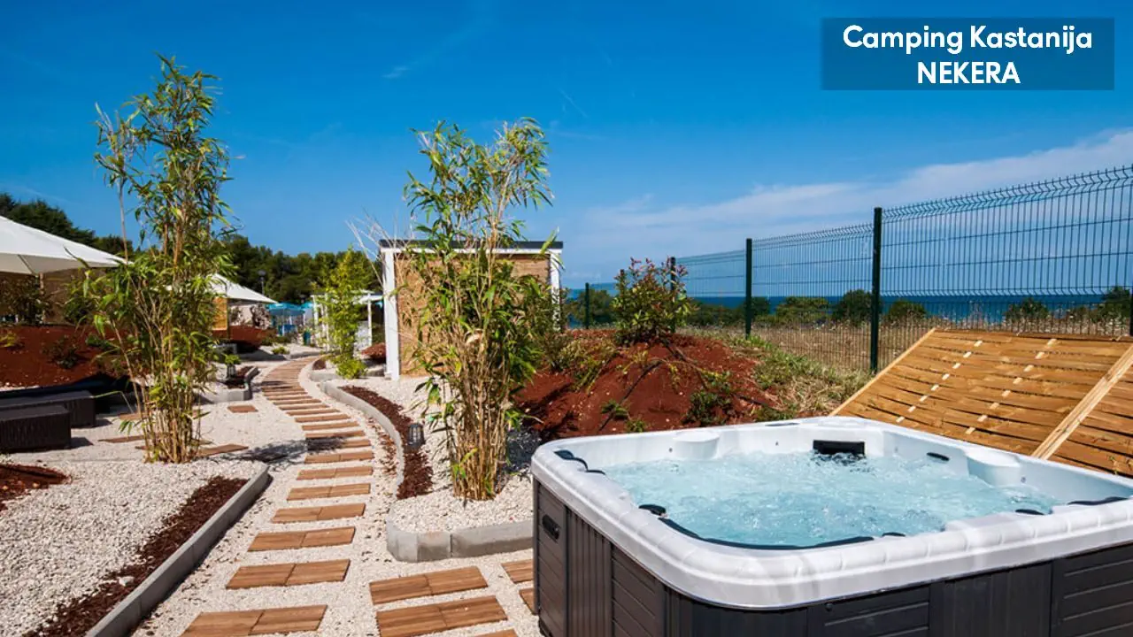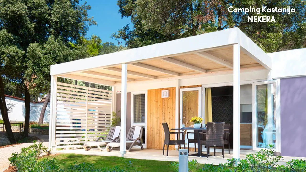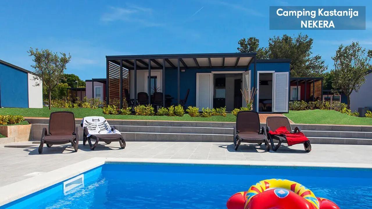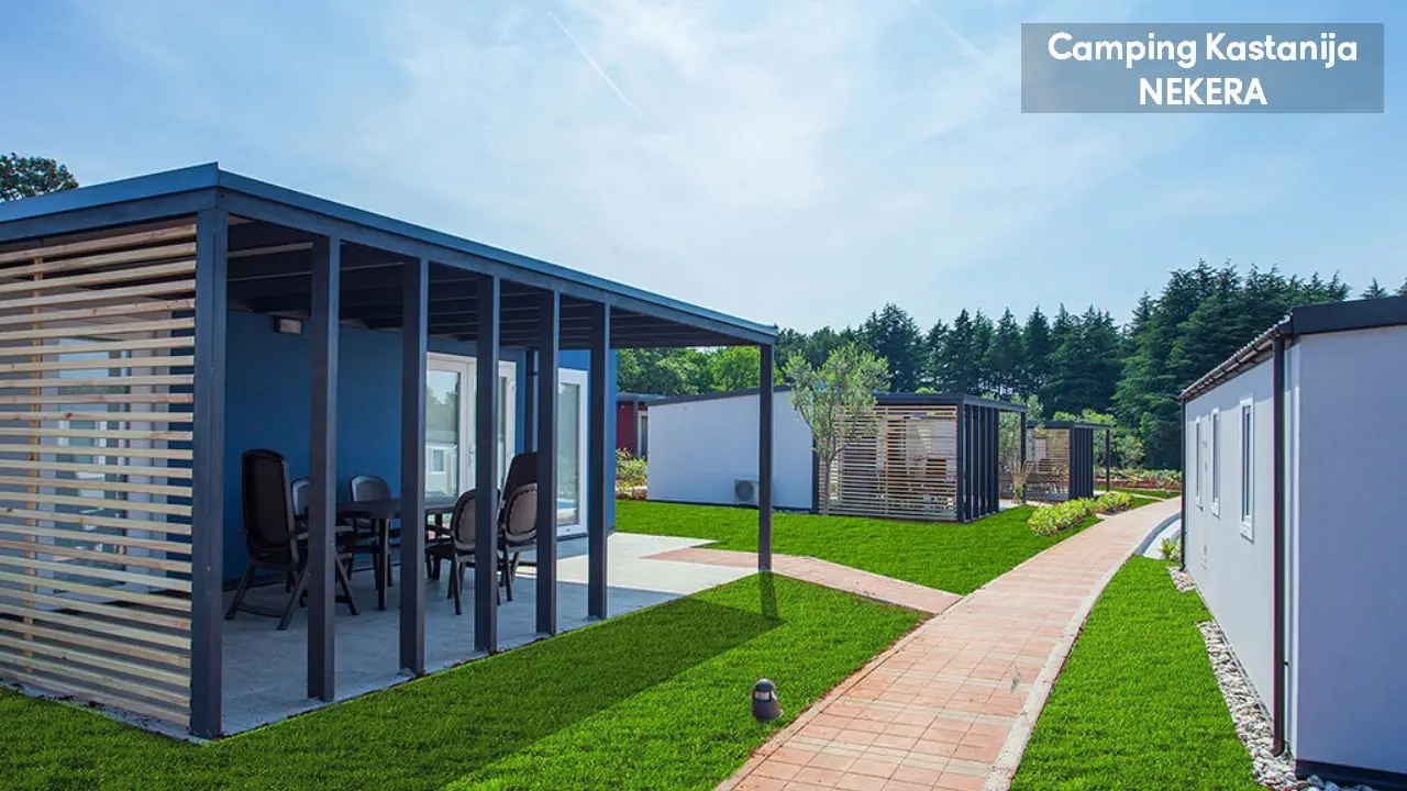 ośrodek wakacyjny „Kastanija” PINETA znajduje się zaledwie 3 km kilometry na północ od Novigradu i zajmuje 20 000 m² gaju piniowego. Lubiany przez miłośników przyrody ośrodek może pomieścić do 500 gości. Każde 8 nowych domków mobilnych „OLIVA” ma swój dedykowane basen. W odległości od 100 do 300 m, ośrodek posiada 300 m kamienną plażę z platformami kąpielowymi i doskonałymi miejscami do opalania (niektóre w półcieniu). Serwis plażowy za opłatą. Najbliżej sklepy spożywcze of 100 – 400 m, do centrum Novigrad 3 km, lotnisko Puli 75 km. Bez wyżywienia.