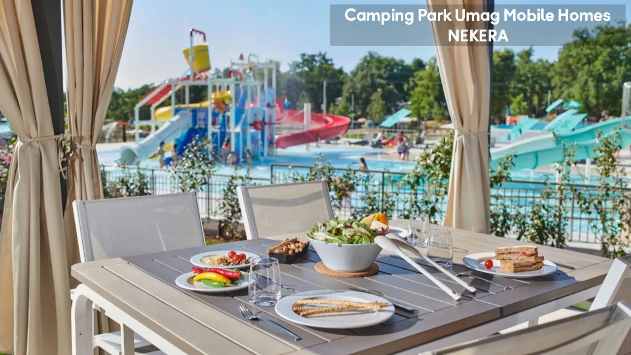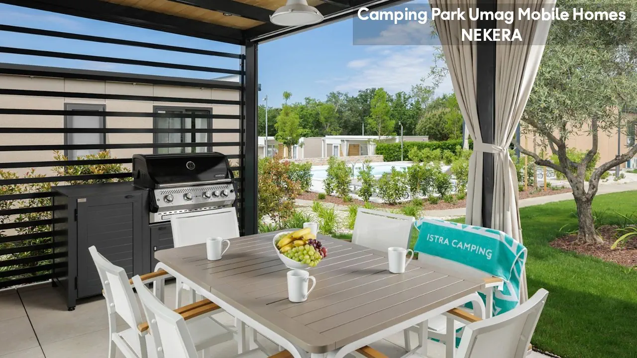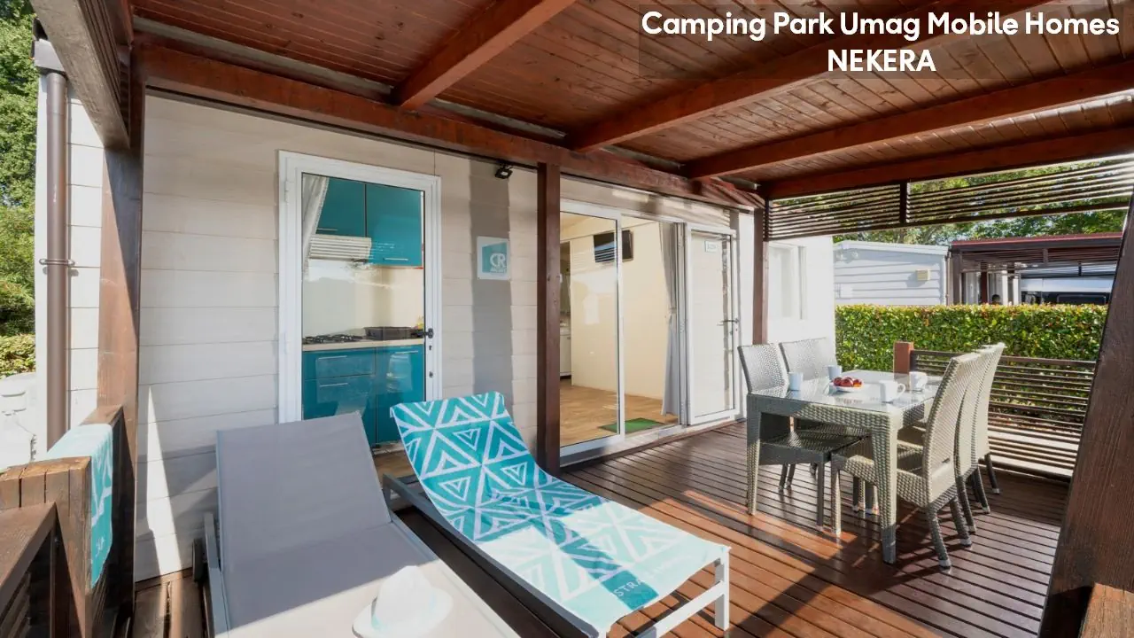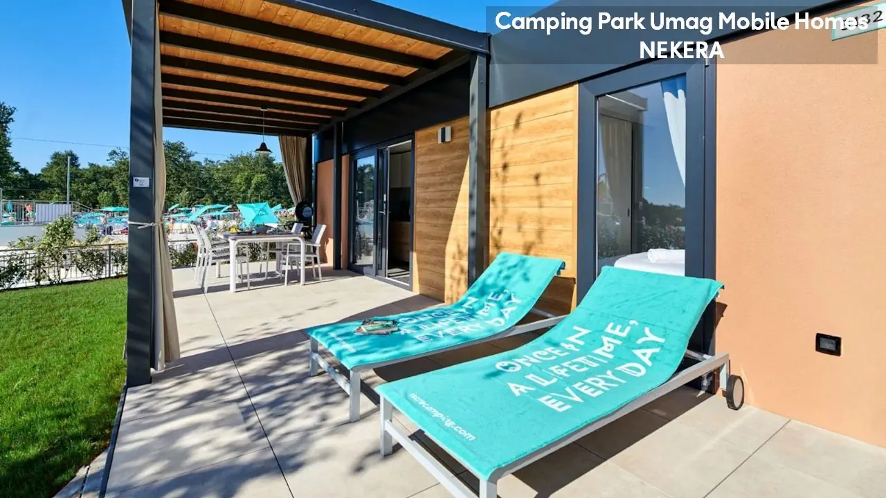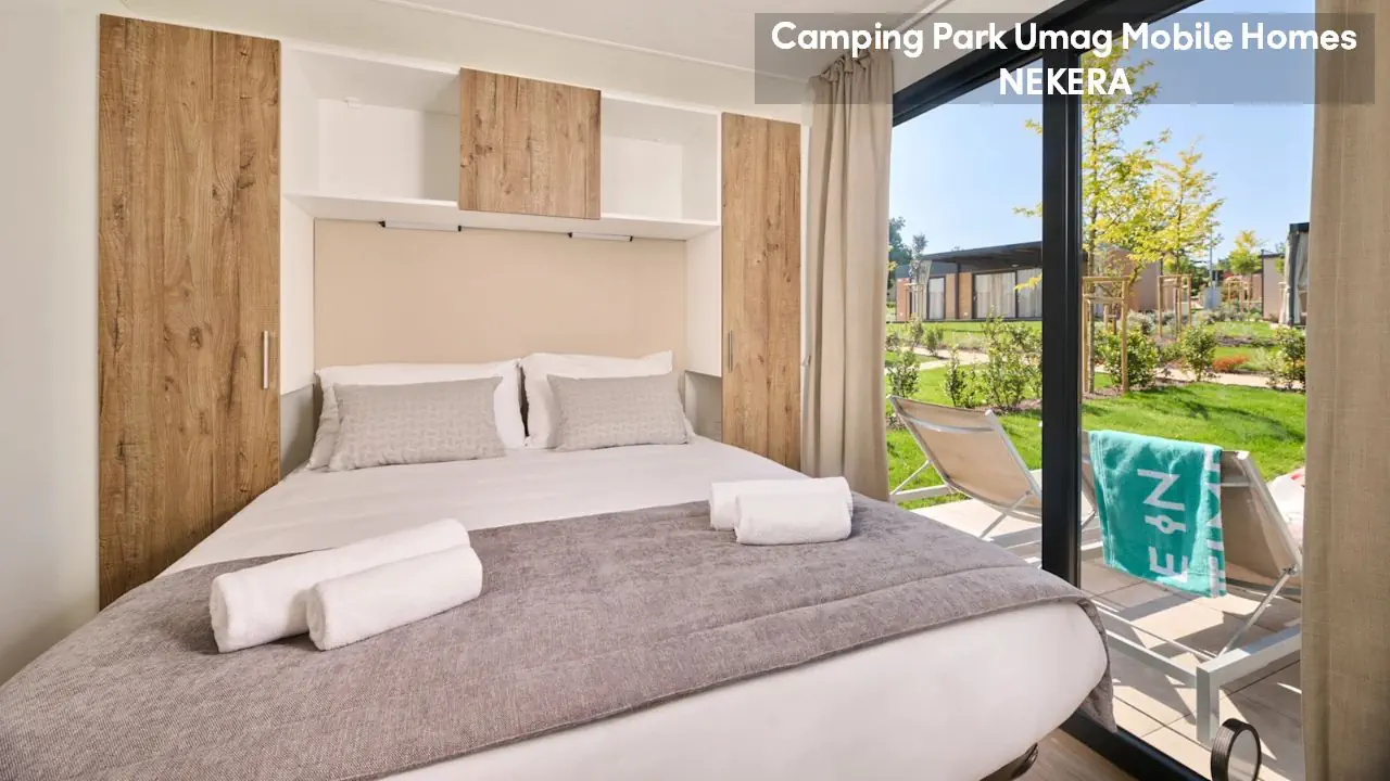 Classic Mobile Home: ok. 24 m², dla max 4 osób dorosłych, sypialnia z łóżkiem podwójnym, sypialnia dziecięcej z 2 łóżkami pojedynczymi, łazienki (prysznic, WC) oraz części dziennej z w pełni wyposażonym aneksem kuchennym (zestaw naczyń dla 6 osób, duża lodówka z zamrażalnikiem), klimatyzacja, TV-Sat., zadaszony, drewniany taras z meblami ogrodowymi (stół, krzesła, leżaki), niewielki ogródek oraz miejsce parkingowe w pobliżu. Pościel i ręczniki w cenie, wymiana pościeli i ręczników raz w tygodniu (dodatkowe wymiany dodatkowo płatne). Premium Plus Mobile Home: ok. 34 m² części mieszkalnej + ok. 25 m² zadaszonego tarasu, dla max 4 osób dorosłych, położony w nowej, odnowionej części domków mobilnych, w pobliżu odnowionych basenów współdzielonych (ok. 24 m², wspólne dla 5–7 domków). Składa się z sypialni z łóżkiem podwójnym, drugiej sypialni z 2 łóżkami pojedynczymi, salonu z rozkładaną sofą, 2 łazienek (każda z prysznicem i WC) oraz w pełni wyposażonej kuchni (komplet naczyń, duża lodówka z zamrażalnikiem, czajnik, kuchenka mikrofalowa). Na wyposażeniu: klimatyzacja, TV-Sat., część jadalna, szafa/garderoba, zadaszony taras z zestawem mebli ogrodowych (stół, krzesła), strefa Chill & Grill z grillem gazowym i blatem roboczym, miejsce parkingowe w pobliżu. Pościel w cenie (wymiana raz w tygodniu), ręczniki zmieniane co 3 dni (częstsza wymiana za opłatą).