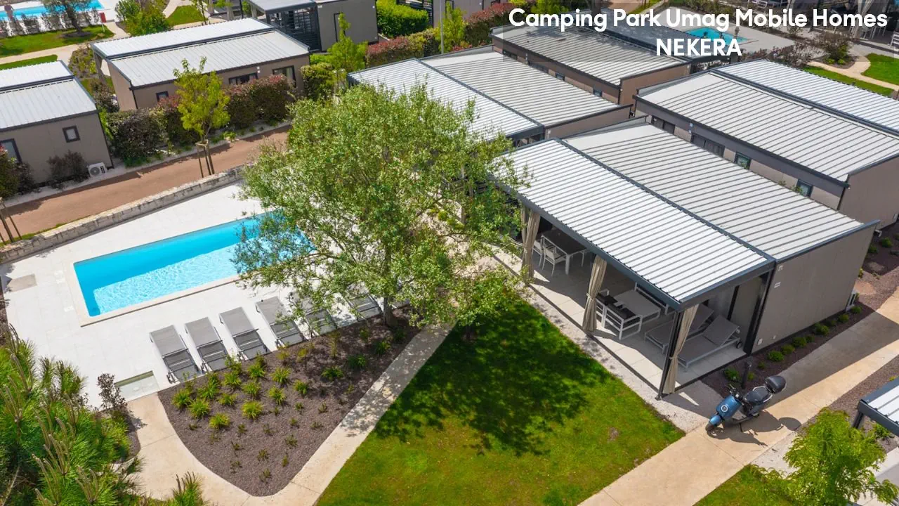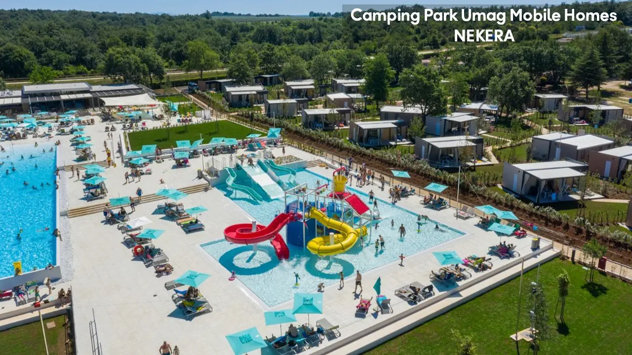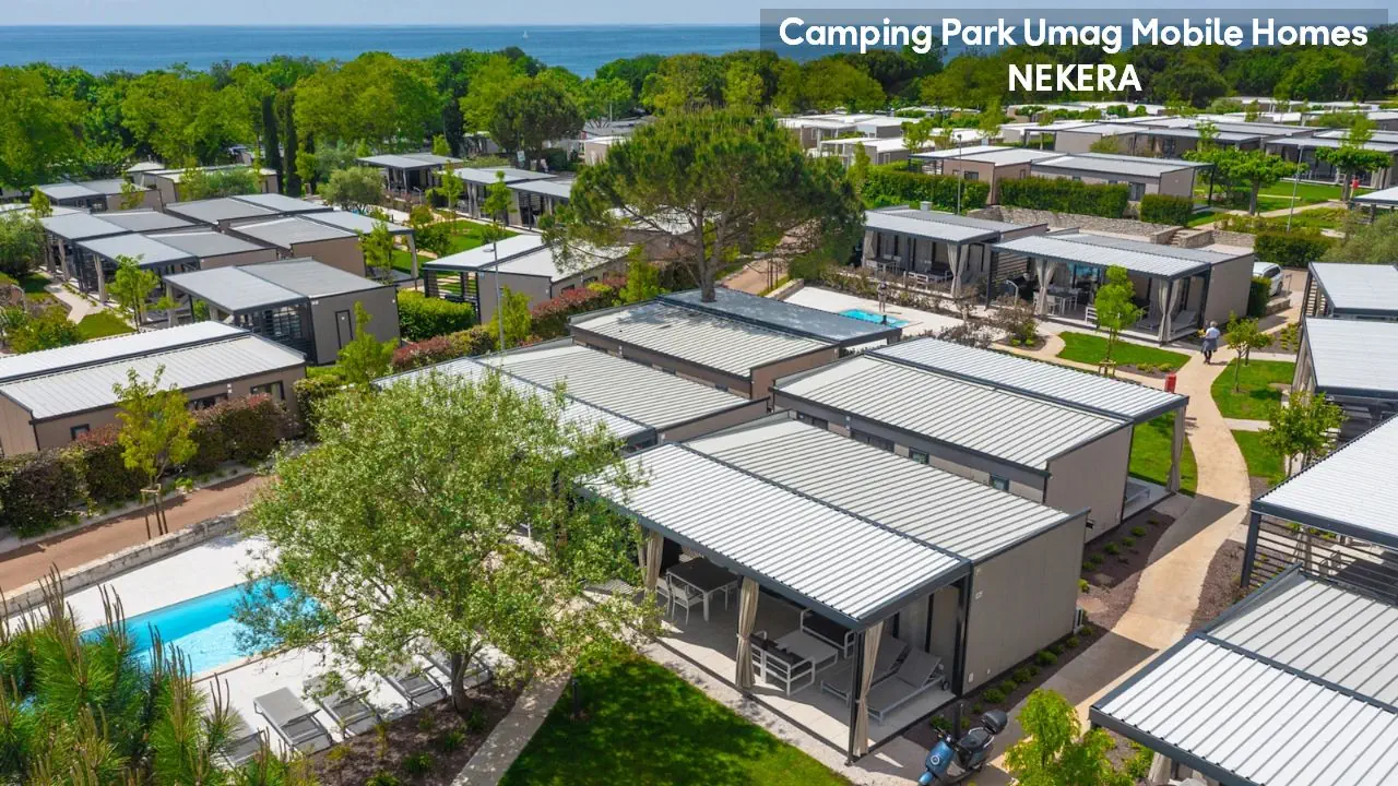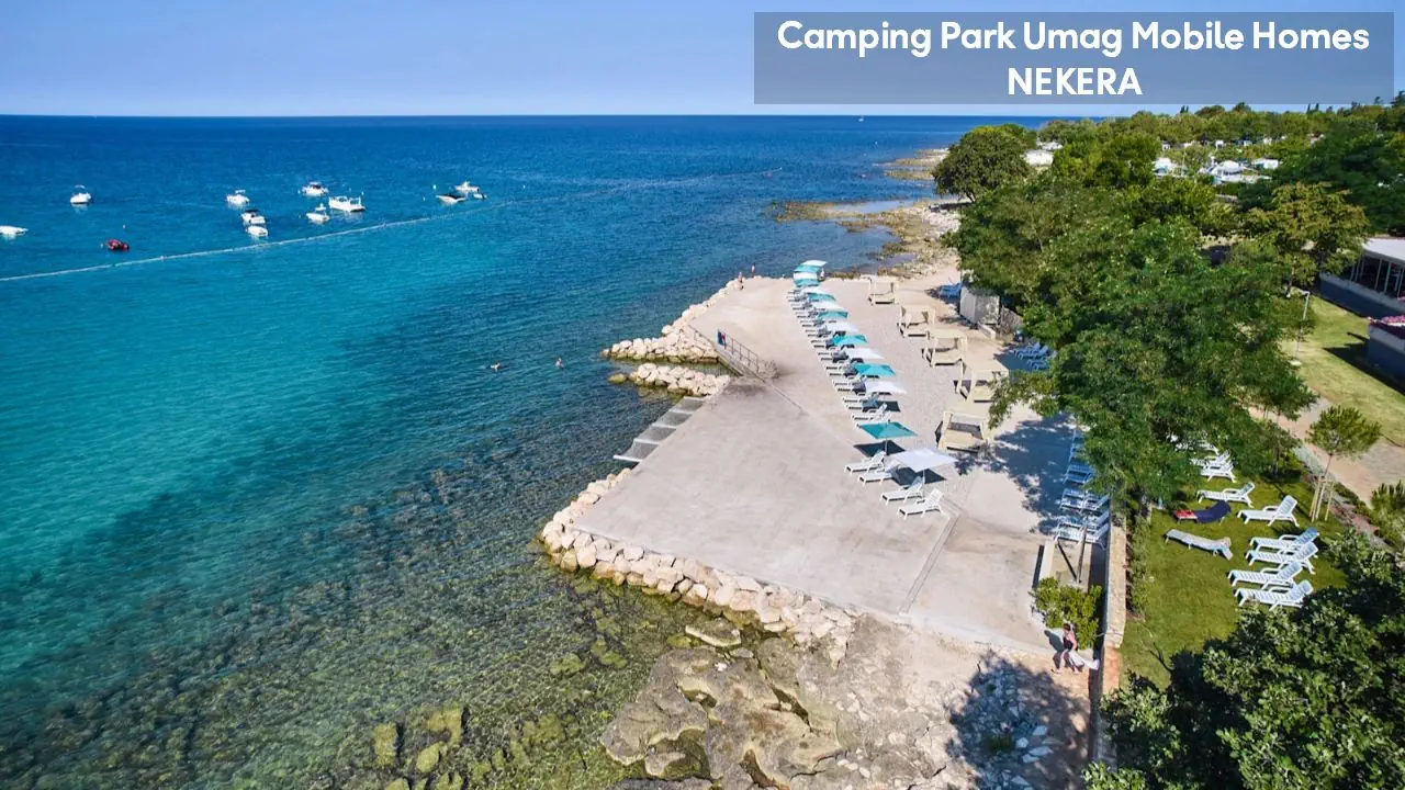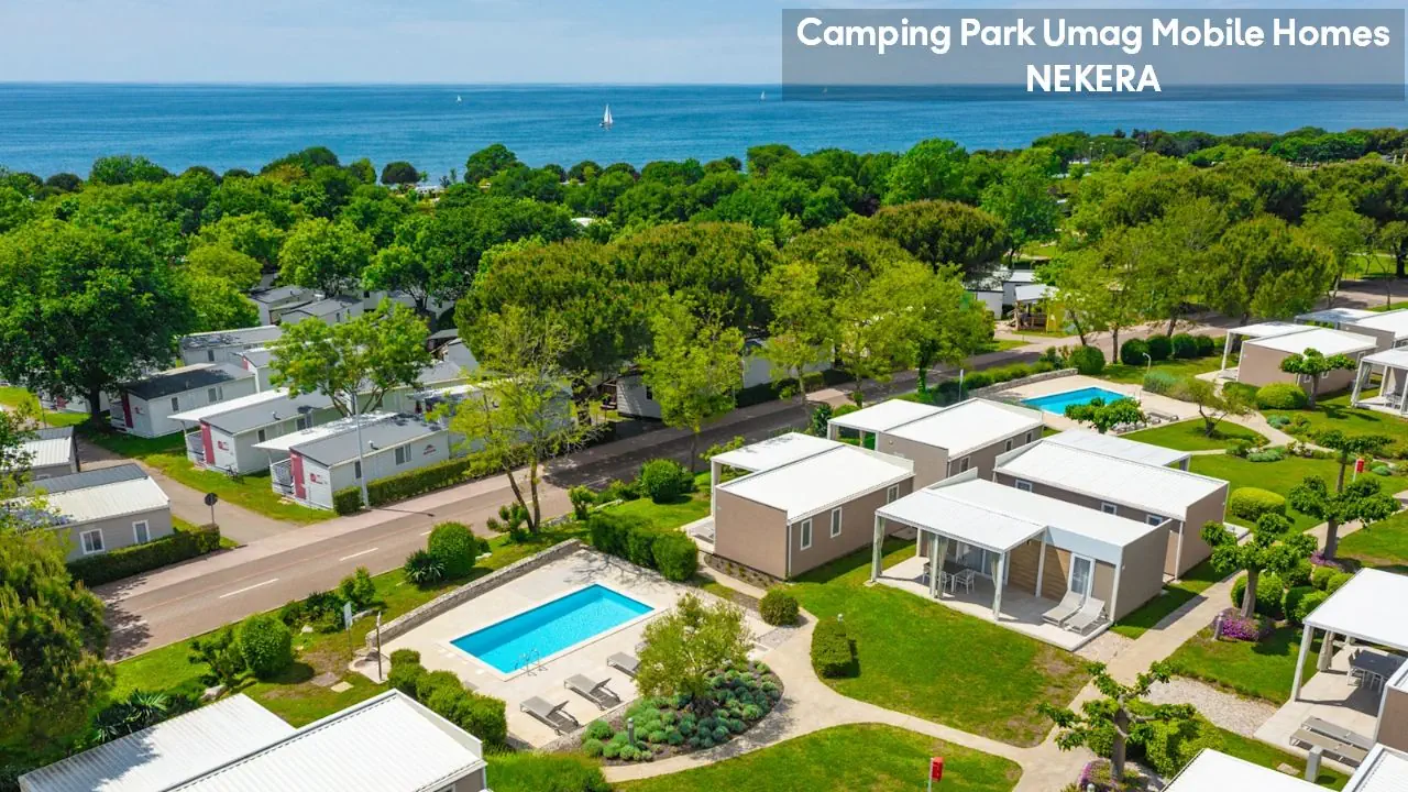 w północnej części zachodniego wybrzeża półwyspu Istria, w spokojnej okolicy Karigador, ok. 6–7 km od turystycznego centrum miejscowości Umag i ok. 5 km od Novigradu. Rozległy, czterogwiazdkowy kompleks domków, położony jest bezpośrednio przy wybrzeżu, w zadbanym, śródziemnomorskim parku z licznymi alejkami spacerowymi i ścieżkami do biegania. Do najbliższego supermarketu ok. 100 m, w pobliżu znajdują się bary, restauracje i sklepy. Lotnisko w Puli oddalone jest o ok. 85 km.