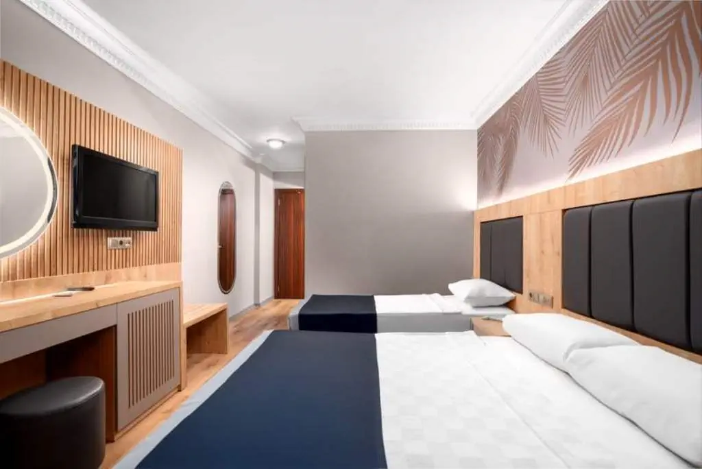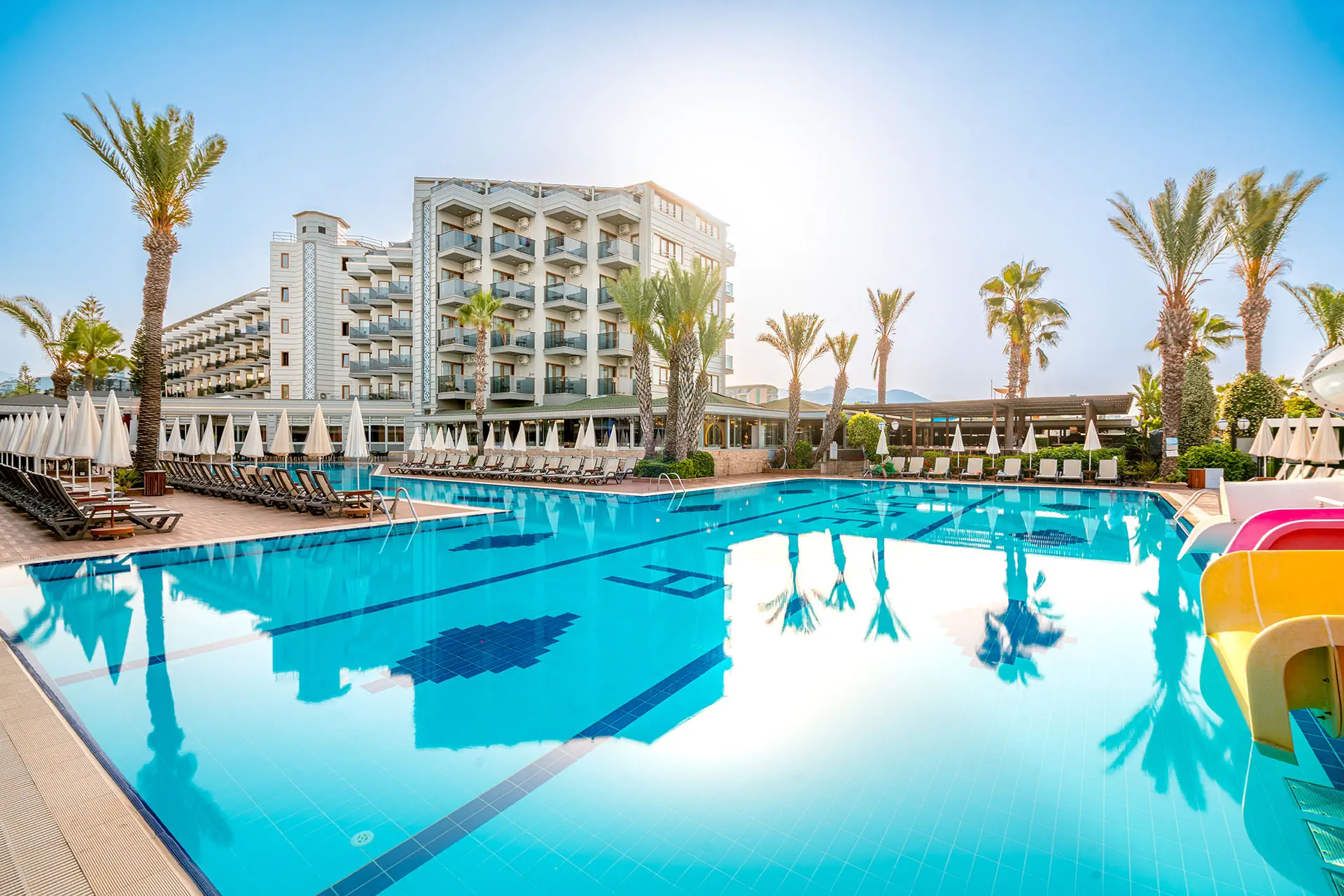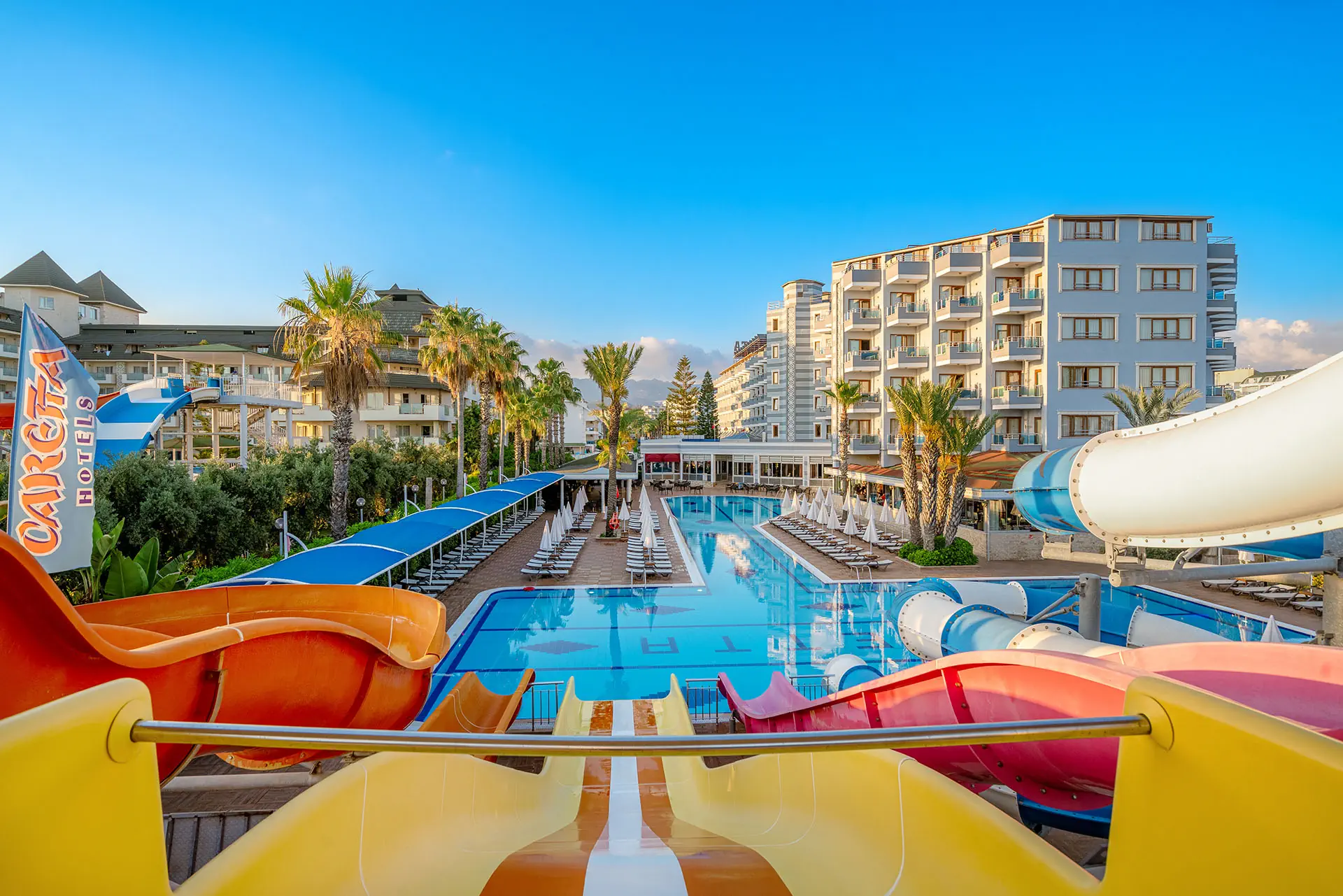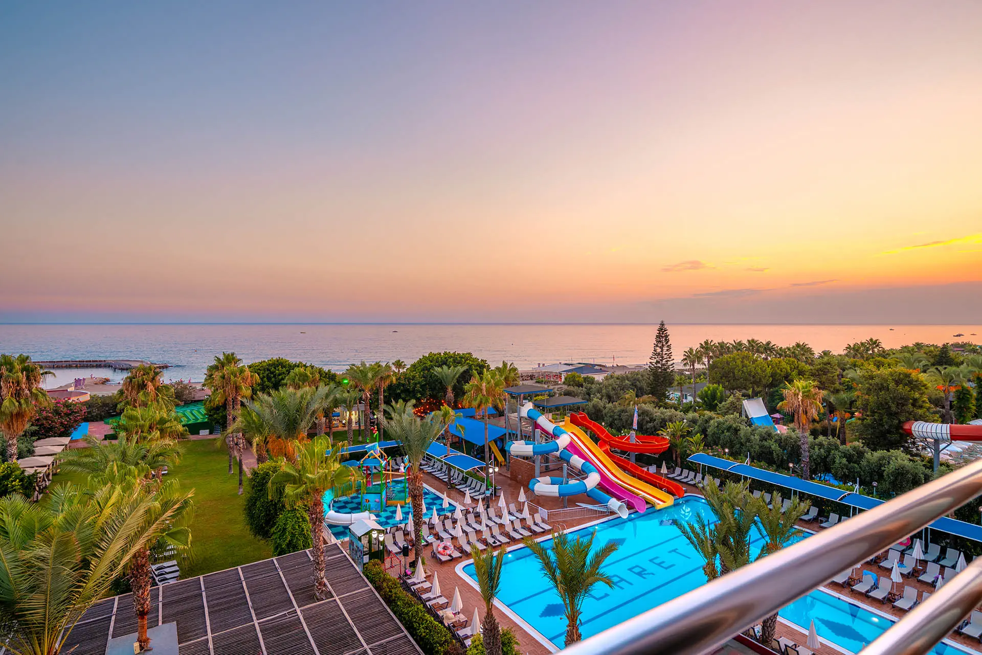 Spokojny hotel położony tuż przy piaszczystej plaży z certyfikatem Błękitnej Flagi. Doskonała oferta dla rodzin z dziećmi. Do dyspozycji Gości są tu między innymi zjeżdżalnie wodne, place zabaw i animacje w miniklubie.