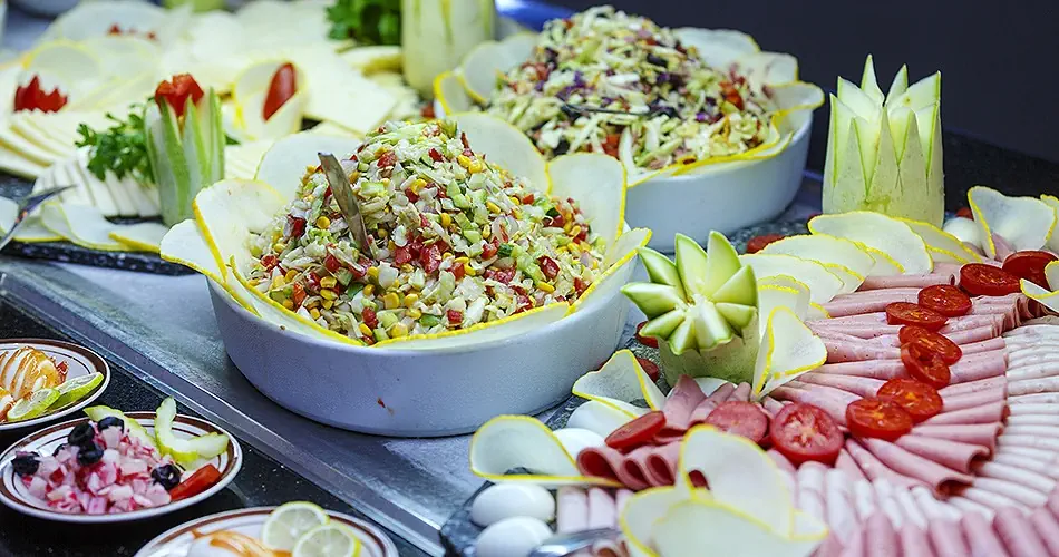 All Inclusive: Śniadania w formie bufetu, późne śniadania kontynentalne, lunche i kolacje w formie bufetu Przekąski w godzinach popołudniowych, Kolacja w restauracji a'la carte włoskiej lub tunezyjskiej (bezpłatnie raz na pobyt po dokonaniu wcześniejszej rezerwacji) Napoje bezalkoholowe i wybrane alkohole lokalnej produkcji serwowane w barach i restauracjach wskazanych przez hotel w godzinach ich otwarcia od 10:00 do 24:00 Alkohole importowane są dodatkowo płatne