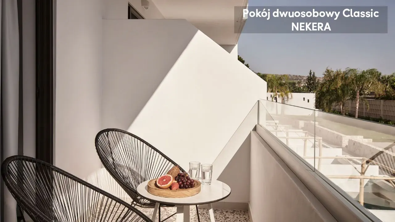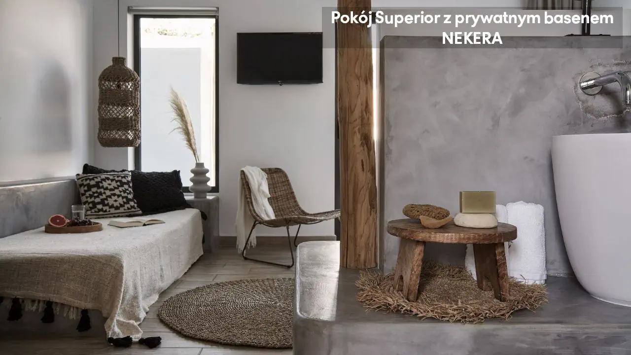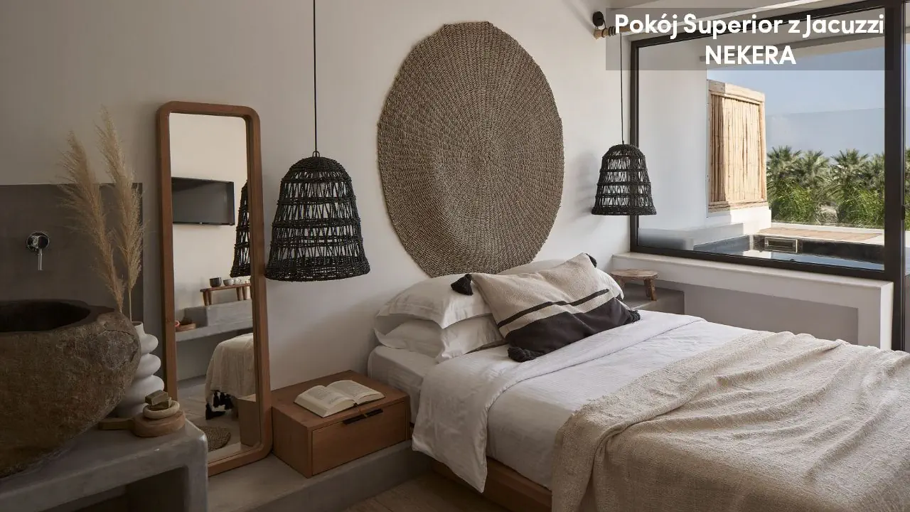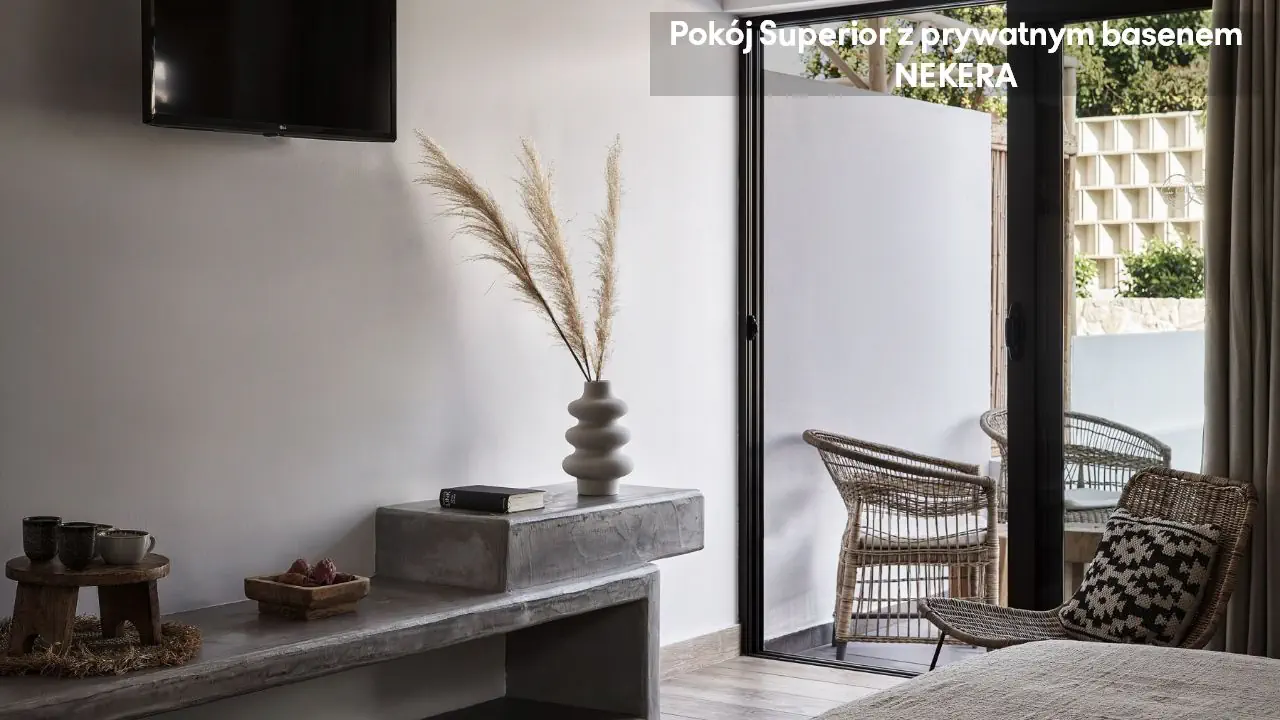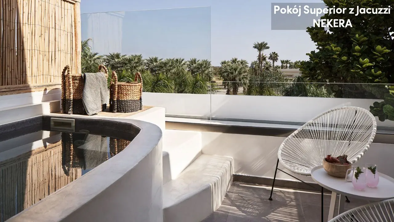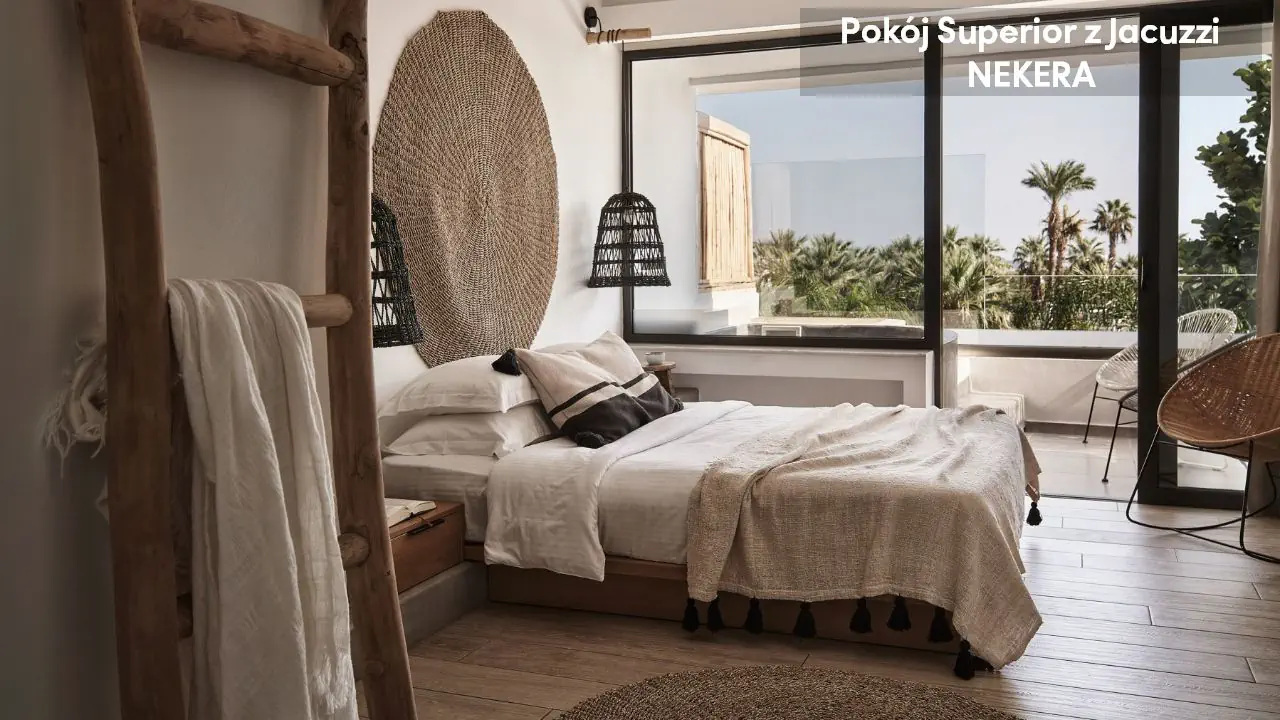 Pokój dwuosobowy Classic z widokiem na ogród - powierzchnia 20 m² - max 2-os. - łóżko podwójne lub dwa pojedyncze - klimatyzacja - bezpłatne Wi-Fi - telewizor z płaskim ekranem - telefon - mini lodówka - zestaw do parzenia kawy/herbaty - sejf - łazienka z prysznicem lub wanną - suszarka do włosów - zestaw mini kosmetyków - balkon lub taras Pokój Superior z Jacuzzi - powierzchnia 22 m² - max 2-os. - łóżko podwójne lub dwa pojedyncze - klimatyzacja - bezpłatne Wi-Fi - telewizor z płaskim ekranem - telefon - mini lodówka - zestaw do parzenia kawy/herbaty - sejf - łazienka z prysznicem lub wanną - suszarka do włosów - zestaw mini kosmetyków - taras z podgrzewanym Jacuzzi Pokój Superior z prywatnym basenem - powierzchnia 26 m² - max 2-os. - łóżko podwójne lub dwa pojedyncze - klimatyzacja - bezpłatne Wi-Fi - telewizor z płaskim ekranem - telefon - mini lodówka - zestaw do parzenia kawy/herbaty - sejf - łazienka z prysznicem lub wanną - suszarka do włosów - zestaw mini kosmetyków - taras z prywatnym basenem
