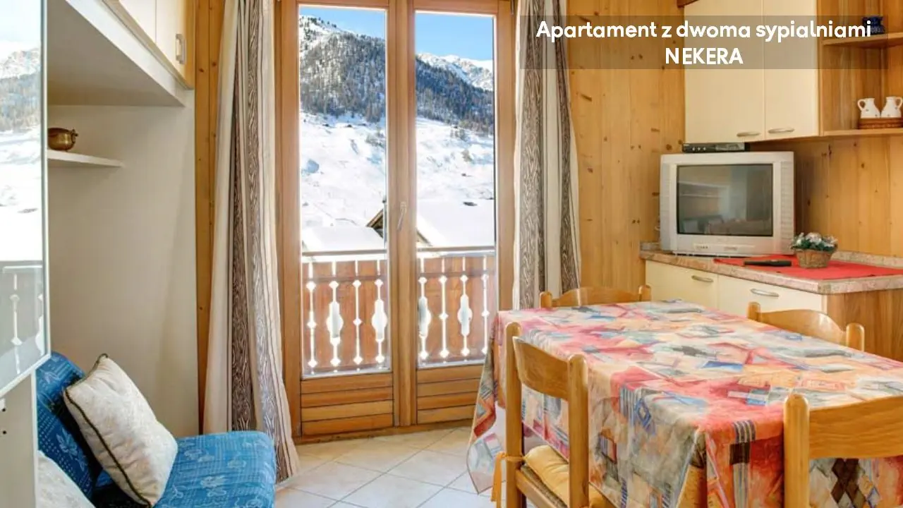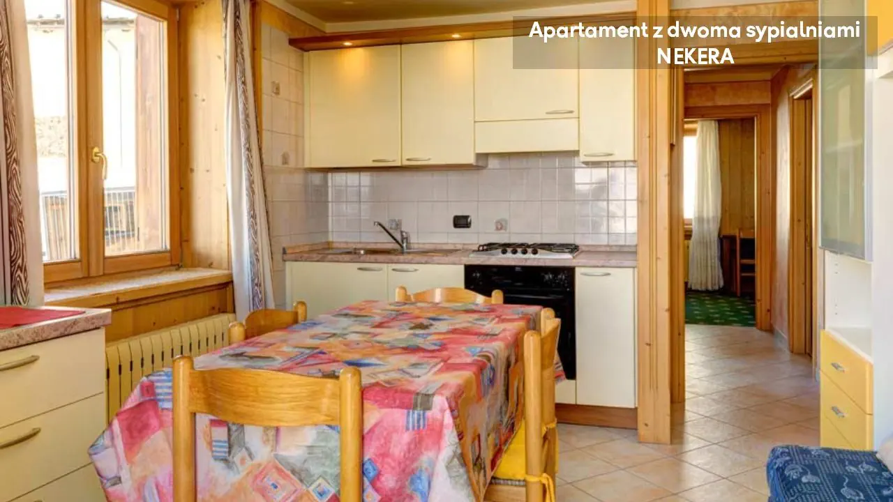 Apartament z jedną sypialnią: ok. 45 m2, mogący zakwaterować do czterech osób; sypialnia z łóżkiem podwójnym i pokój dzienny z dwoma rozkładanymi sofami pojedynczymi, TV, aneks kuchenny, kuchenka, czajnik, mikrofalówka, przybory kuchenne, prywatna łazienka (prysznic, toaleta, umywalka, suszarka do włosów). Apartament z dwoma sypialniami: ok. 51 m2, mogący zakwaterować do piciu osób, sypialnia z łóżkiem podwójnym i rozkładaną sofą, sypialnia z łóżkiem piętrowym, część dzienna z sofą i aneksem kuchennym; poza tym wyposażony jak apartament z dwoma pokojami.