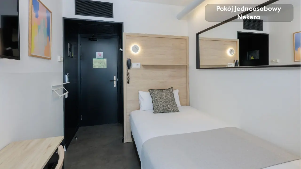 Pokój Standard - dwa łóżka pojedyncze, TV, klimatyzacja lub ogrzewanie, bezpłatne Wi-Fi, biurko, prywatna łazienka (prysznic, suszarka, przybory toaletowe). Pokój Jednoosobowy - jedno łóżko pojedyncze, poza tym wyposażony tak samo, jak pokój Standard. Pokój Trzyosobowy Standard - dla dwóch osób dorosłych i jednego dziecka, jedno łóżko podwójne i jedno mniejsze łóżko pojedyncze, poza tym wyposażony tak jak pokój Standard. Dostępne są także pokoje dwuosobowe z rozkładaną sofą o tej samej powierzchni, oraz takim samym wyposażeniu, bez wstępu do centrum fitness. Dostępny także pokój trzyosobowy wewnętrzny