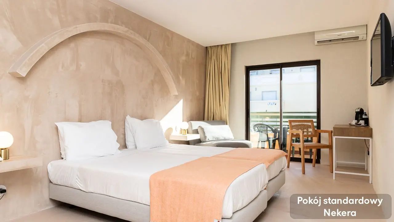 - ok. 17 m², - 1 łóżko typu queen (lub równoważne dla 2 osób), - klimatyzacja, - telewizor, - balkon / taras, - wyposażona łazienka (prysznic, suszarka do włosów), - lodówka, - sejf (za dopłatą)