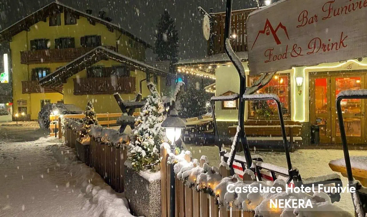 w miejscowości Pinzolo, w regionie Madonna di Campiglio, ok. 200 m. od centrum, naprzeciwko dolnej stacji kolejki Funivie Pinzolo. Poprzez systemm wyciągów i tras możliwość korzystania z blisko 150 km. tras narciarskich ośrodków Pinzolo-Madonna di iCampiglio-Marilleva-Folgarida. Przy stacji kolejki wypożyczalnia nart i przystanek bezpłatnego skibusa.