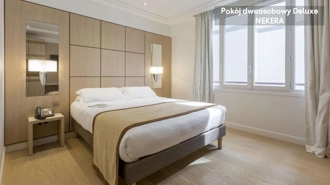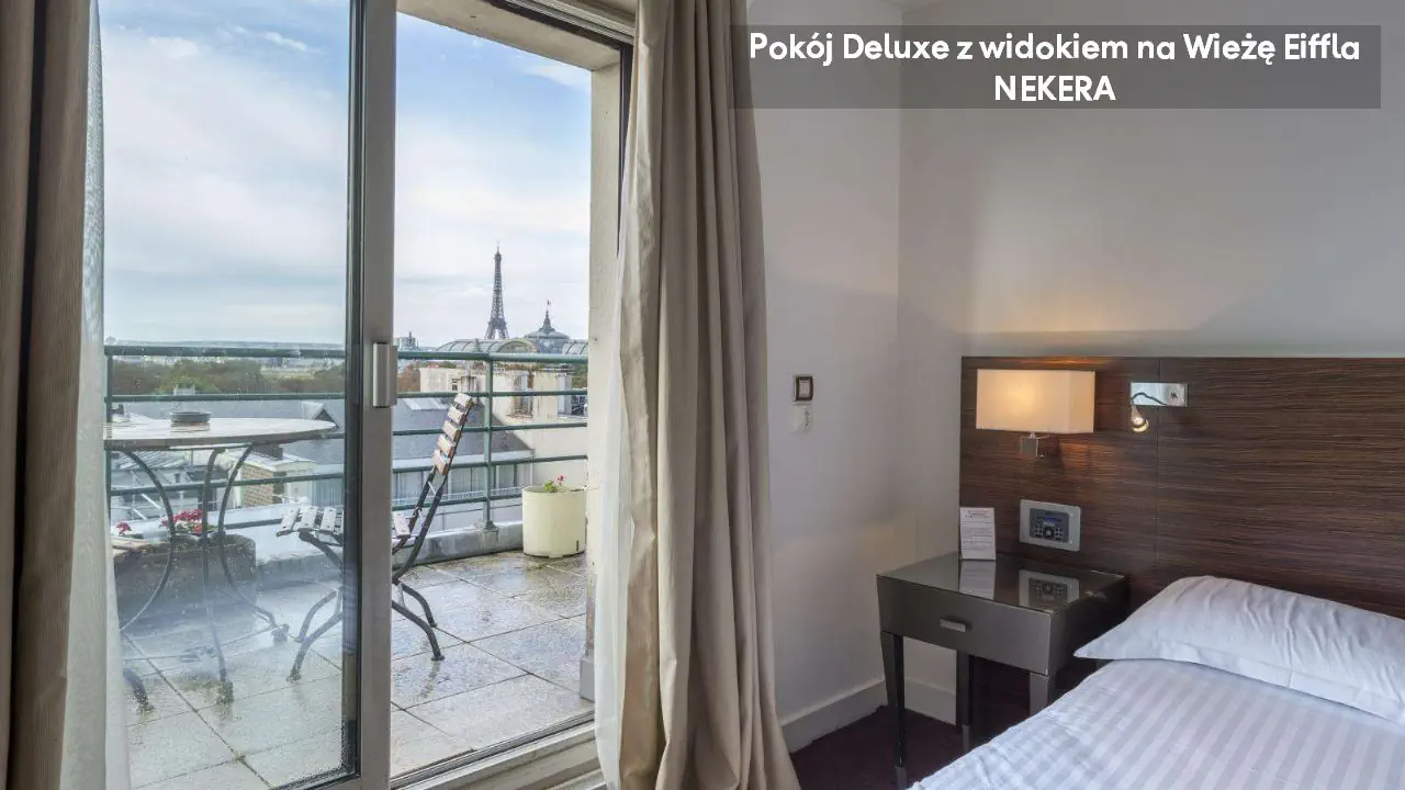 Pokój dwuosobowy Superior: ok. 18 m2, mogący zakwaterować do dwóch osób, jedno łóżko podwójne lub dwa łóżka pojedyncze, TV, Wi-Fi, sejf, klimatyzacja, zestaw do parzenia kawy i herbaty, prywatna łazienka (prysznic, toaleta, umywalka, suszarka do włosów). Pokój dwuosobowy Deluxe: ok. 20 m2, mogący zakwaterować do dwóch osób, jedno łóżko podwójne lub dwa łóżka pojedyncze, pokój wyposażony w ekspres do kawy, łazienka z wanną lub prysznicem; poza tym wyposażony jak pokój dwuosobowy Superior. Pokój dwuosobowy Deluxe z widokiem na Wieżę Eiffla: ok. 25 m2, mogący zakwaterować do dwóch osób, jedno łóżko podwójne lub dwa łóżka pojedyncze, pokój wyposażony w ekspres do kawy, łazienka z wanną lub prysznicem; pokój znajduje się na 7 piętrze i oferuje balkon lub taras z widokiem na Wieżę Eiffla.