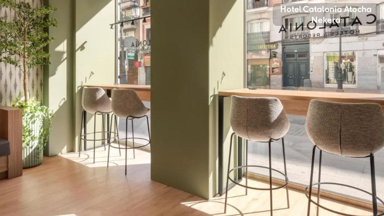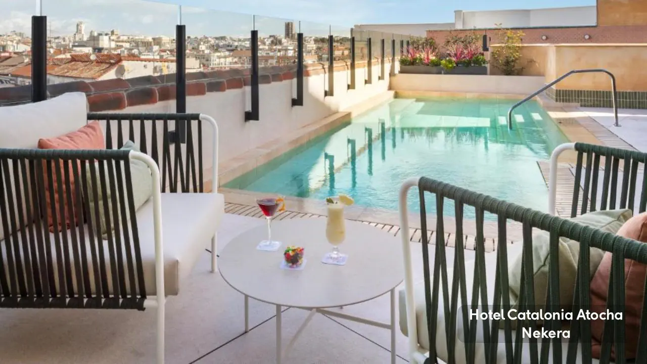 Hotel Catalonia Atocha to czterogwiazdkowy obiekt zlokalizowany w samym sercu Madrytu, przy jednej z głównych ulic miasta. Hotel mieści się w zabytkowej kamienicy z początku XX wieku, której fasada zachowała oryginalny, secesyjny charakter, podczas gdy wnętrza urządzono w nowoczesnym, eleganckim stylu. Do dyspozycji gości dostępna jest całodobowa recepcja, punkt informacji turystycznej, obsługa pokoju (room service), a także przechowalnia bagażu, czy usługi pralnicze. Dodatkowym atutem obiektu jest taras na dachu z sezonowym jacuzzi oraz panoramicznym widokiem na centrum Madrytu.