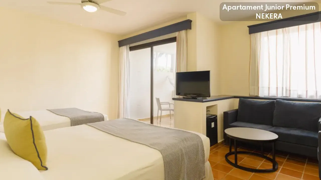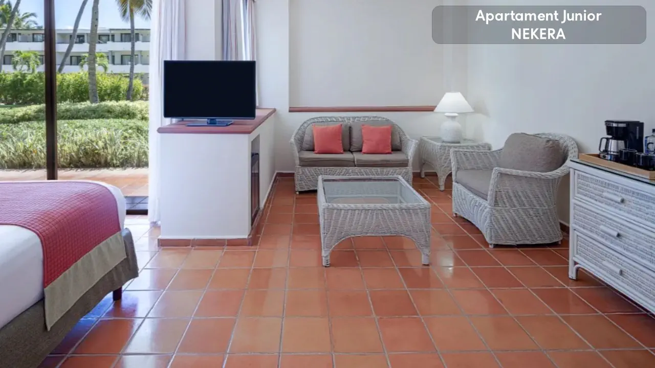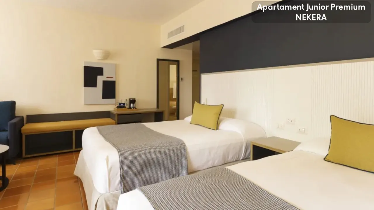 Apartament Junior - ok. 46m2 - jedno łóżko podwójne lub dwa łóżka pojedyncze (w zależności od dostępności) - taras lub balkon - salon - lodówka - łazienka z osobnym prysznicem i wanną - sejf - klimatyzacja - ekspres do kawy - minibar za dodatkową opłatą - TV - bezpłatne WiFi Apartament Junior Premium - ok. 46m2 - jedno łóżko podwójne lub dwa łóżka podwójne (w zależności od dostępności) - łazienka z prysznicem lub wanną - suszarka do włosów - taras lub balkon - salon - lodówka - łazienka z osobnym prysznicem i wanną - sejf - klimatyzacja - ekspres do kawy - minibar za dodatkową opłatą - TV - bezpłatne WiFi