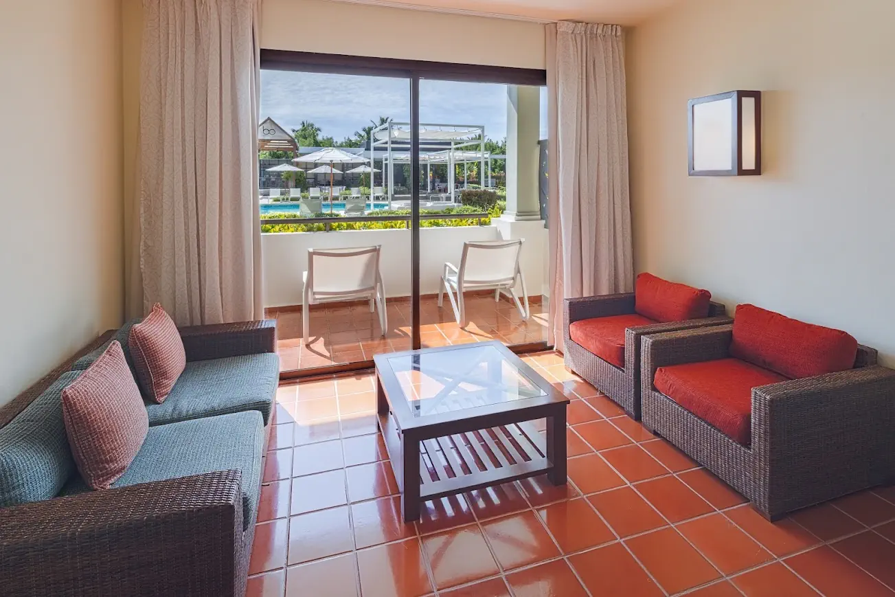 Dla max. 3 osób, Przestrzeń zewnętrzna: Taras, Kanały telewizji: Angielski, Telefon w pokoju, prysznic, jacuzzi, Powierzchnia pokoju: ok. 116 m2, Dostawka: sofa, Rodzaj podłogi: płytki, Sprzątanie codziennie, Salon, część jadalniana, 1 sypialnia, Maksymalna liczba osób dorosłych: 3, Maksymalna liczba dzieci: 0, Kwiaty i owoce, Widok niesprecyzowany ,Widok na ogród,Widok na basen, Prywatny basen, Liczba łazienek: 2, Liczba toalet: 2, Zestaw do parzenia kawy i herbaty, Klimatyzacja: Klimatyzacja centralna