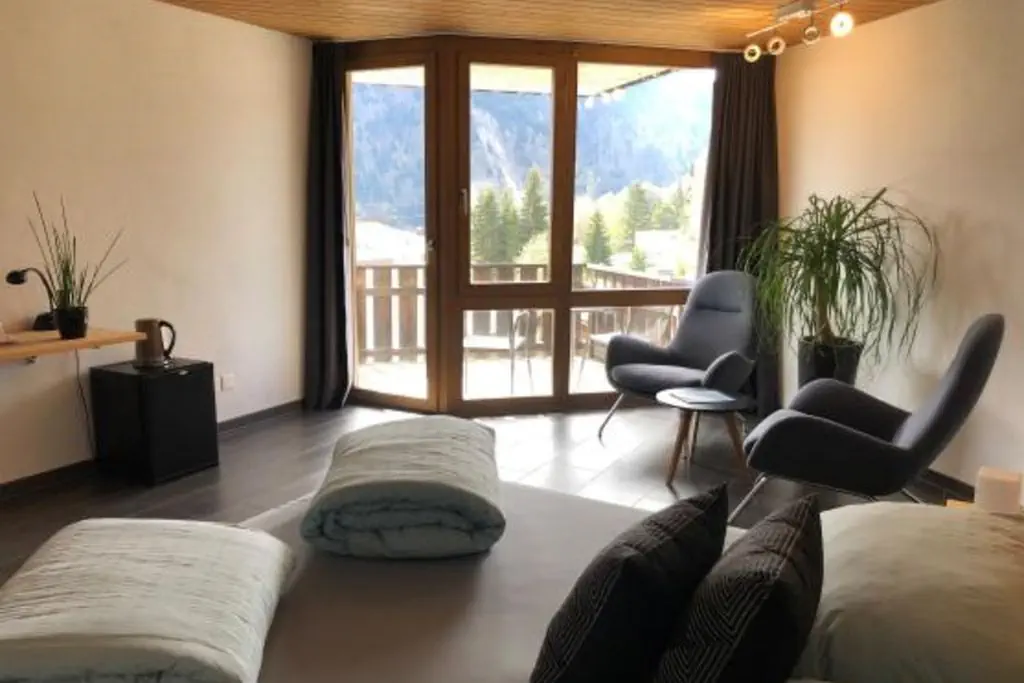 do centrum Disentis ok. 1 km, budynek boczny: 200 m, na wysokości ok. 1230 m, teren narciarski / kolejka górska Disentis ok. 50 m, skibus ok. 50 m, możlwość zjazdu na nartach do obiektu przy dobrych warunkach śniegowych.